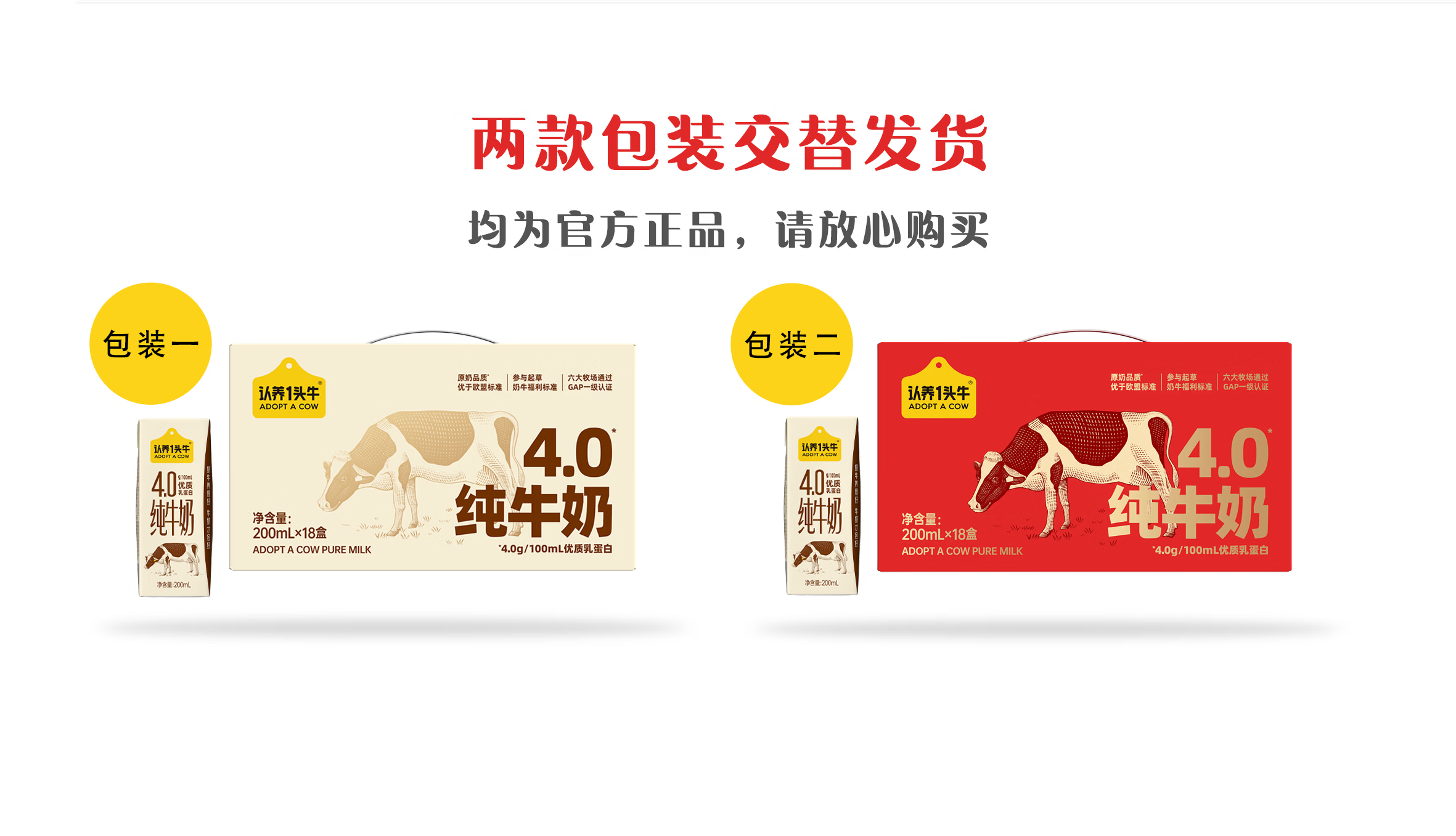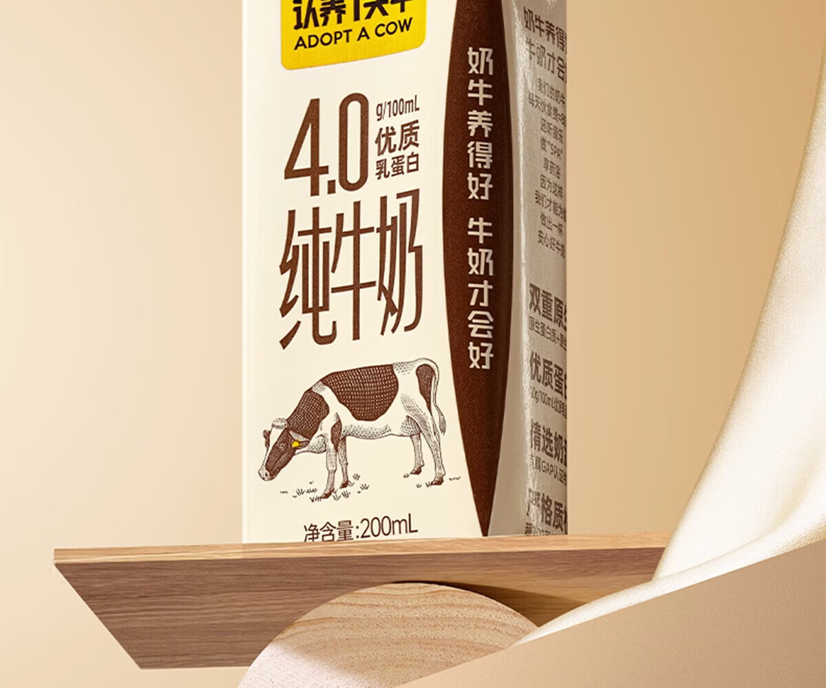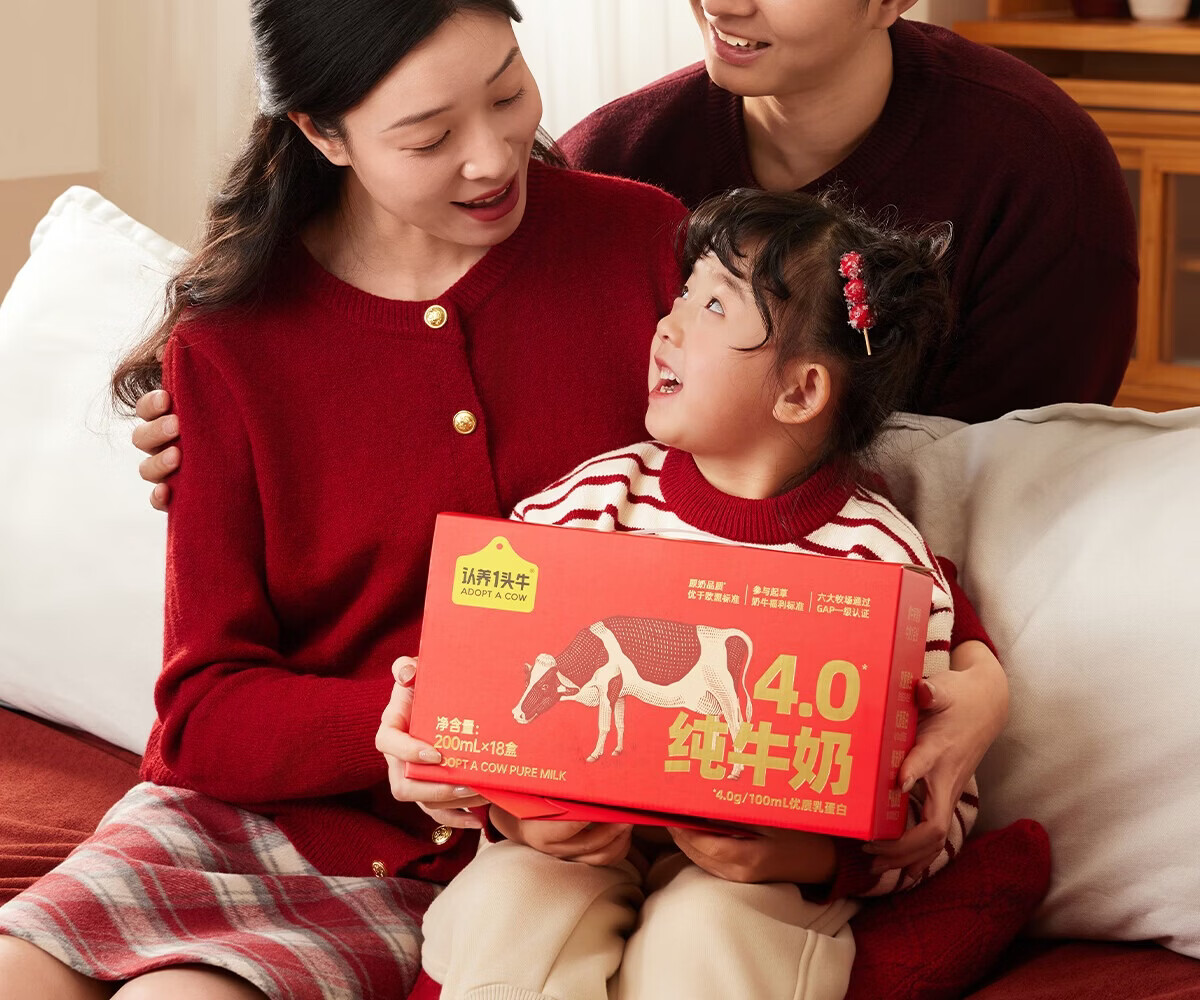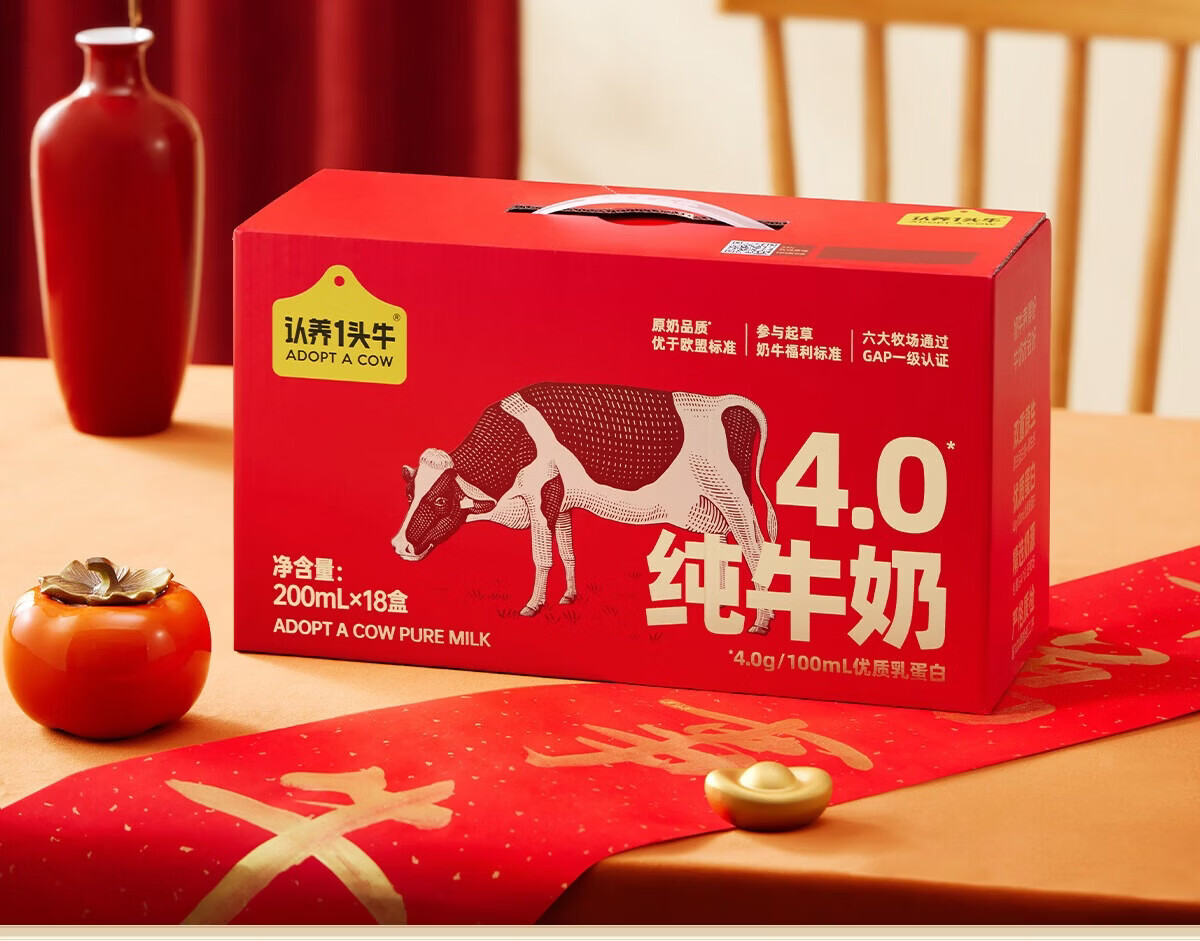 认养一头牛全脂纯牛奶200ml*18盒整箱 4.0g原生乳蛋白 儿童奶年货送礼礼盒装 1提 12月