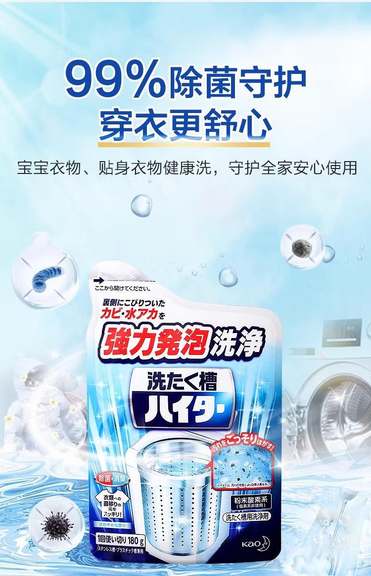 花王(KAO)洗衣机清洗剂180g 波轮滚筒深度洗衣机槽清洁剂强力除垢杀菌去污