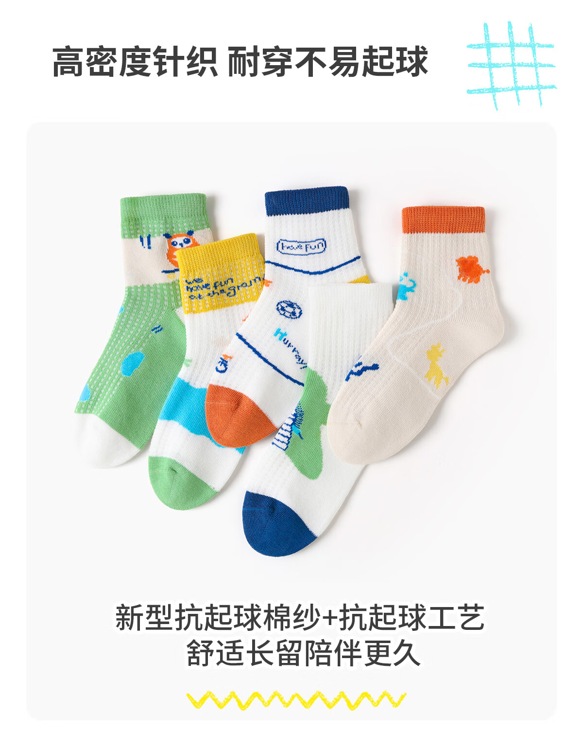 斑比男童袜子春夏款网眼透气棉袜中大童宝宝夏季无骨可爱儿童袜子 BB2601 春夏款儿童袜子 5双 6-8岁 建议脚码27-32码【18-20】