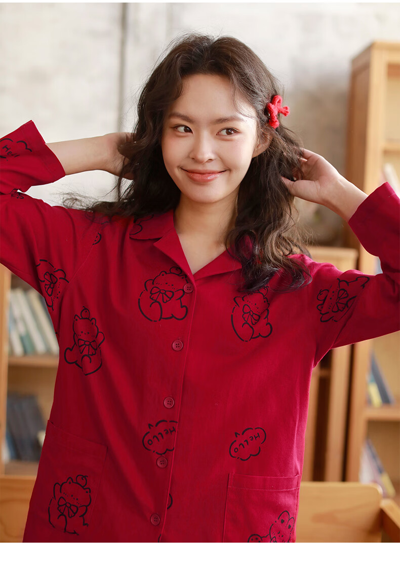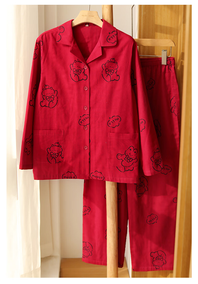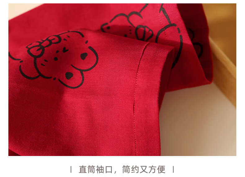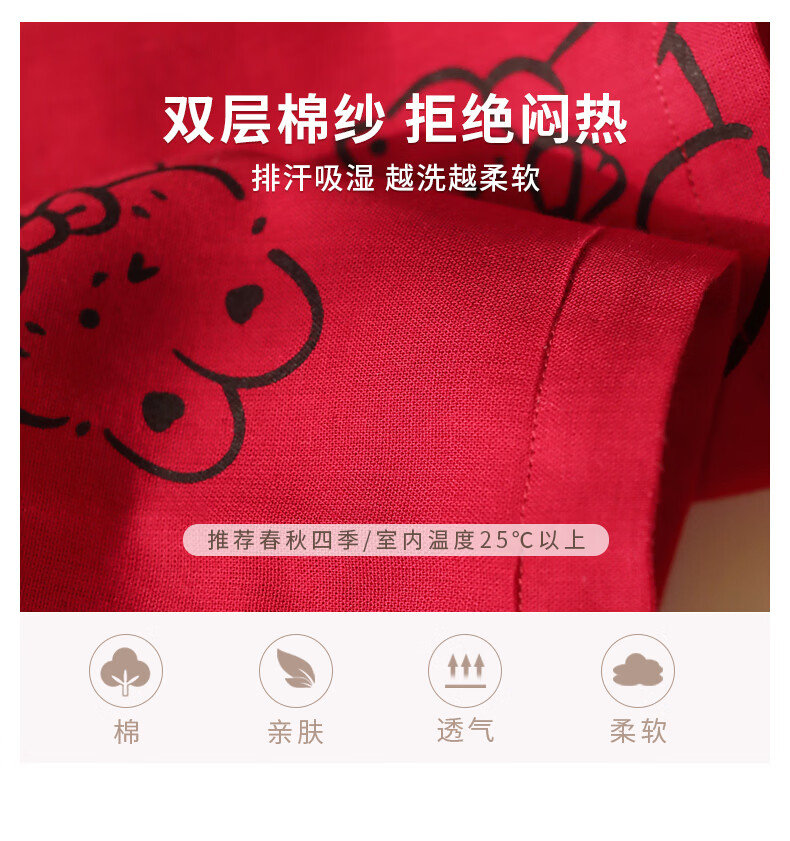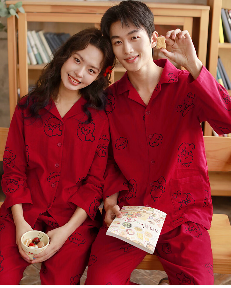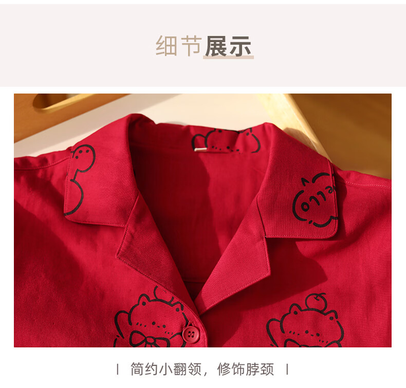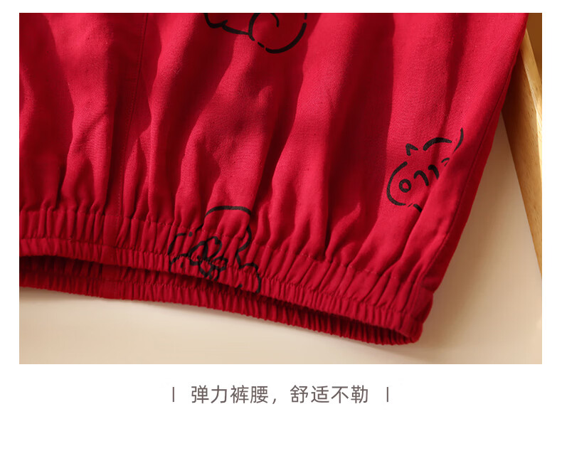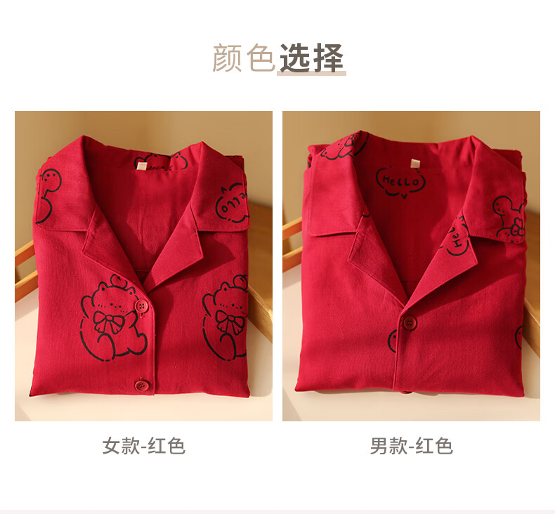 蔓秋 MEJU新年本命年红色(猫咪)情侣情人节礼物纱布长袖长裤家居服套装 红色女 M 男士140斤以内 女士110斤以内