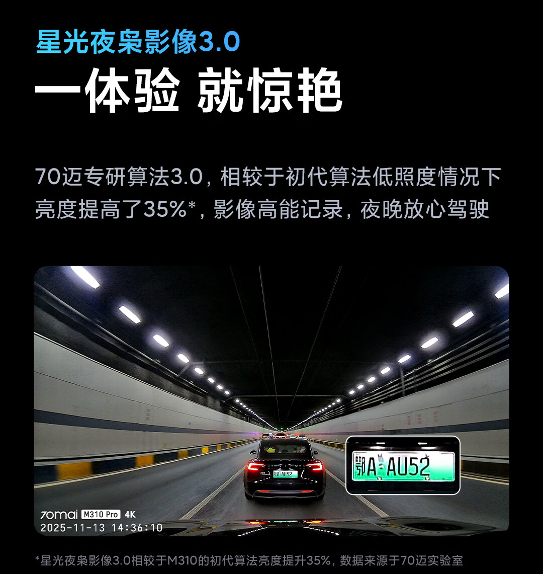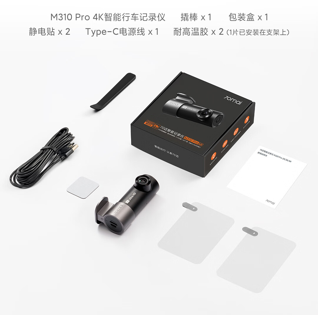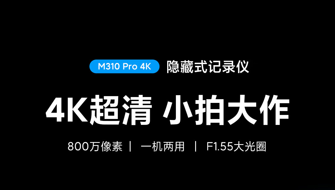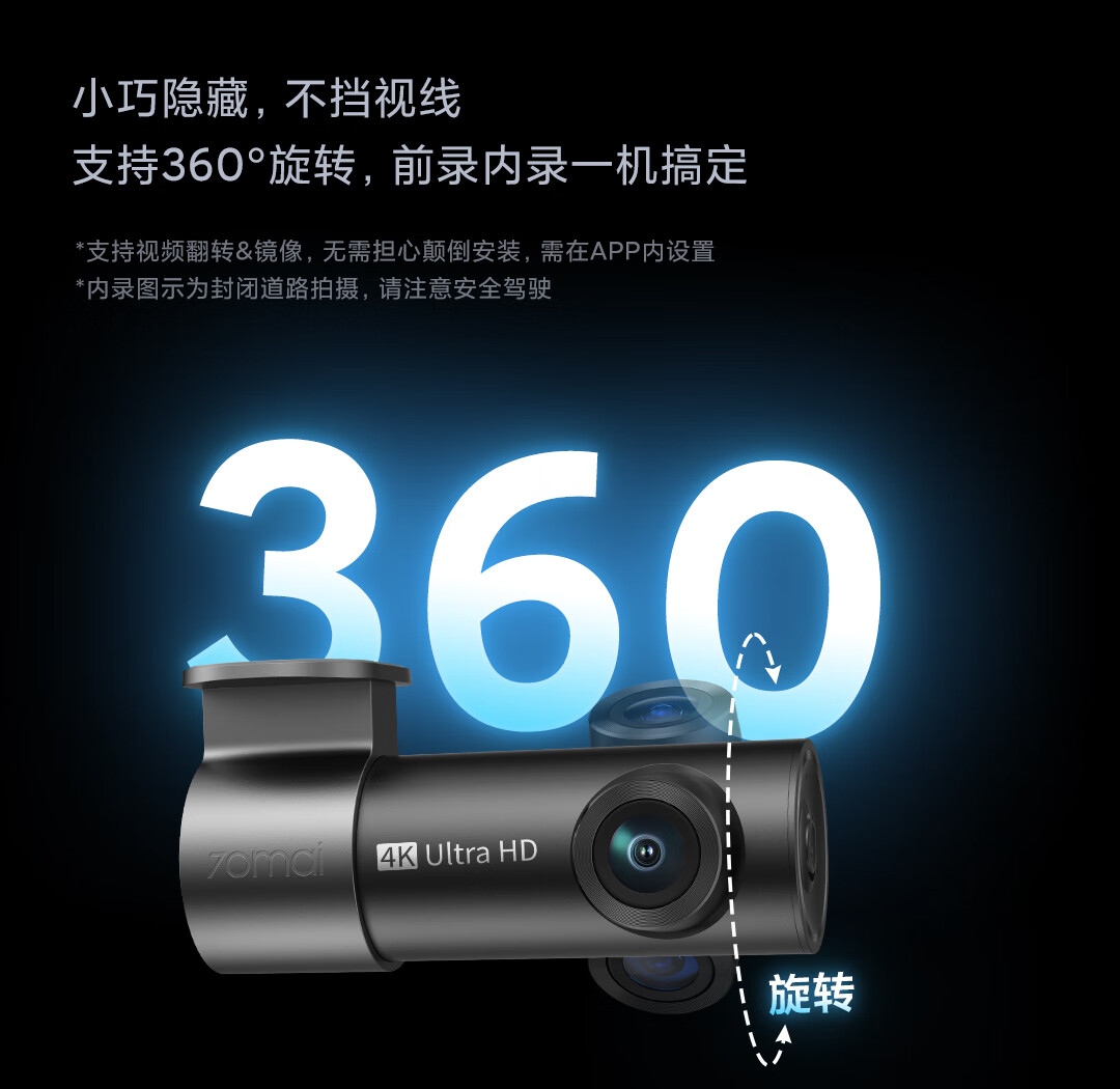 70迈 70MAI行车记录仪M310Pro 4K超清夜视F1.55大光圈 前录内录 360度旋转