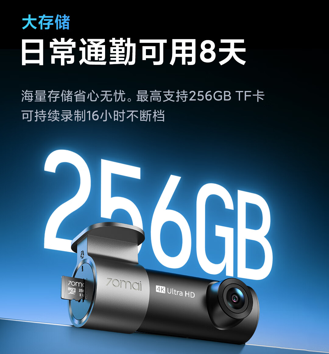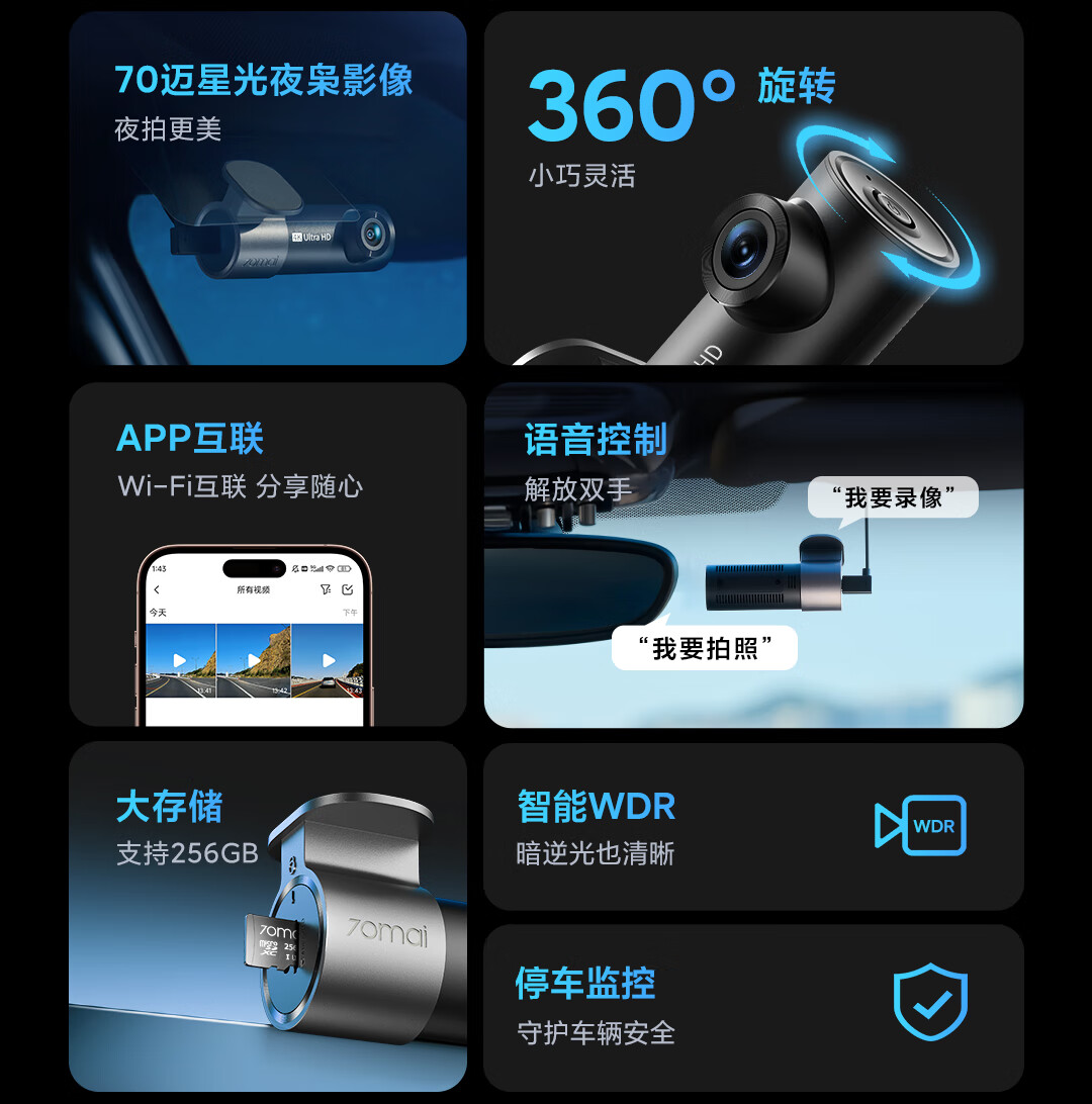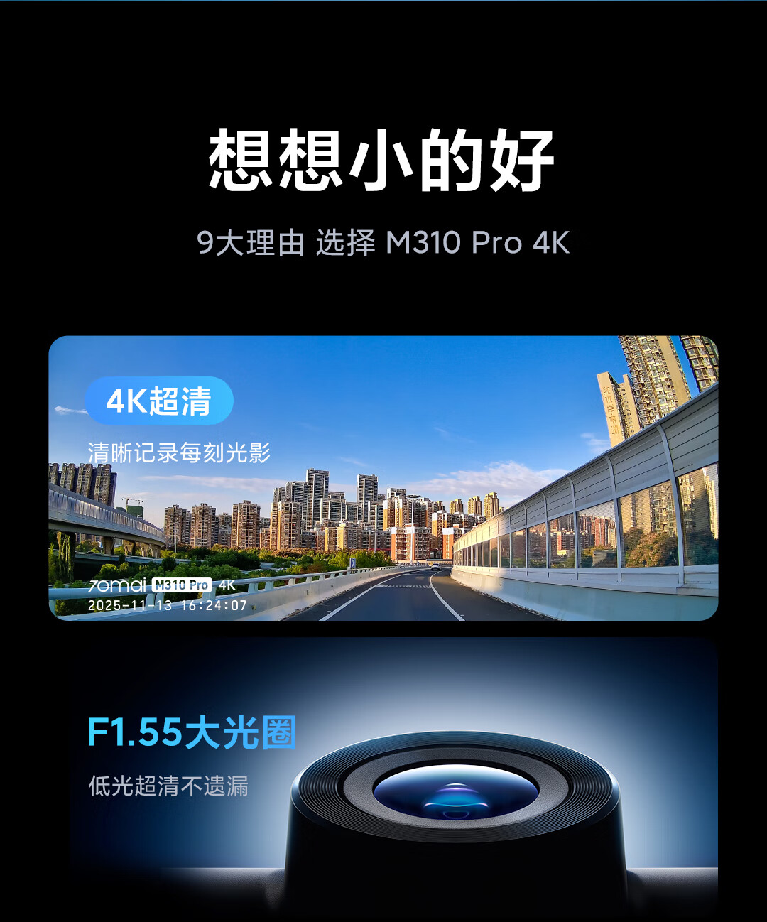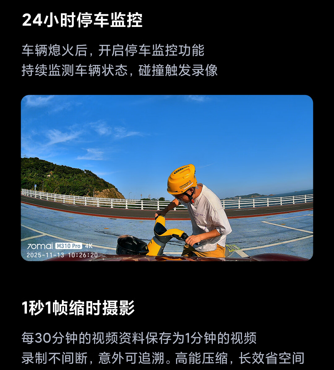 70迈 70MAI行车记录仪M310Pro 4K超清夜视F1.55大光圈 前录内录 360度旋转