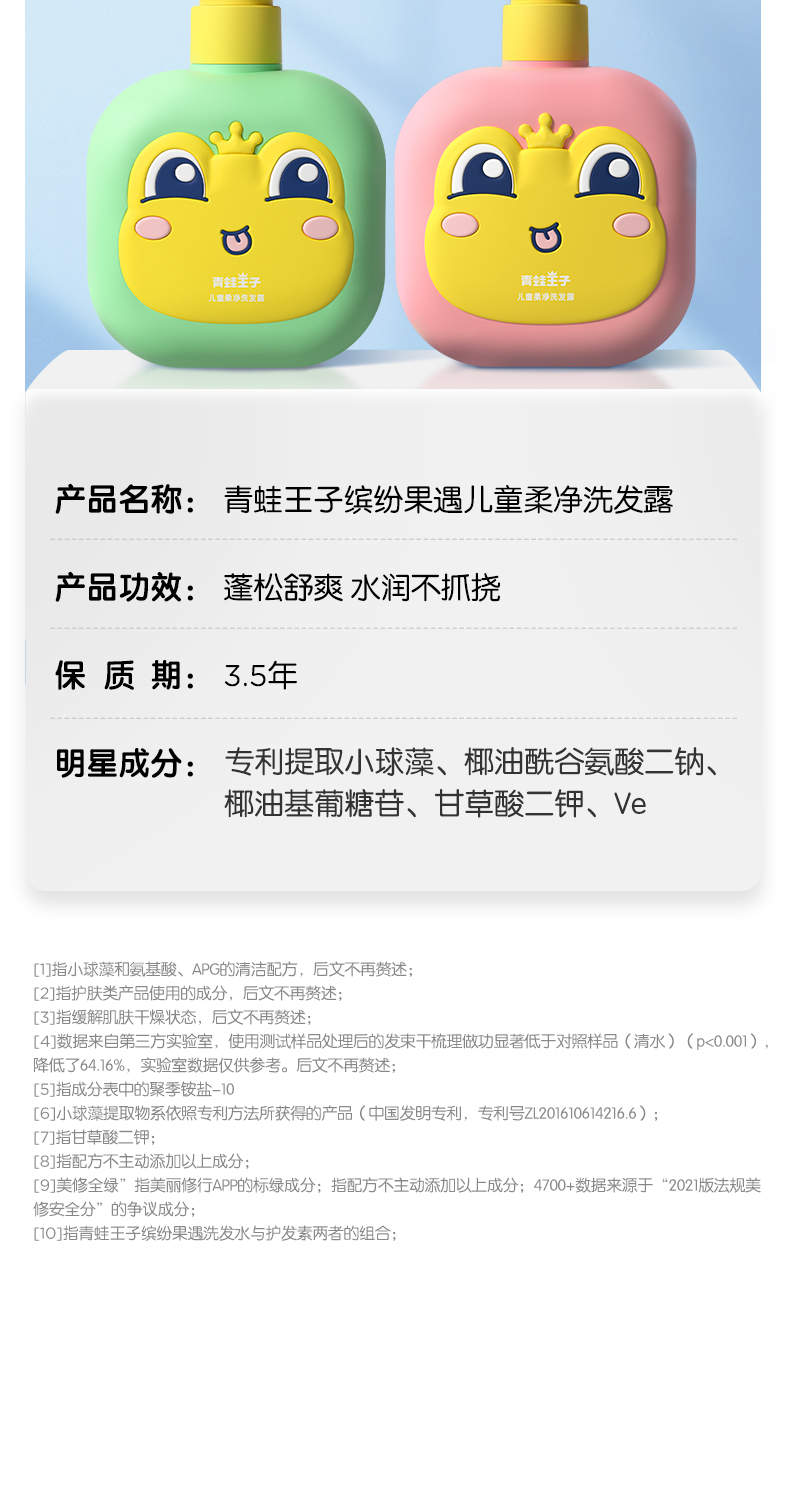 青蛙王子儿童洗发水3-6-12岁 无硅油弱酸 温和无泪 宝宝专研洗发露 500ml