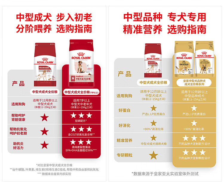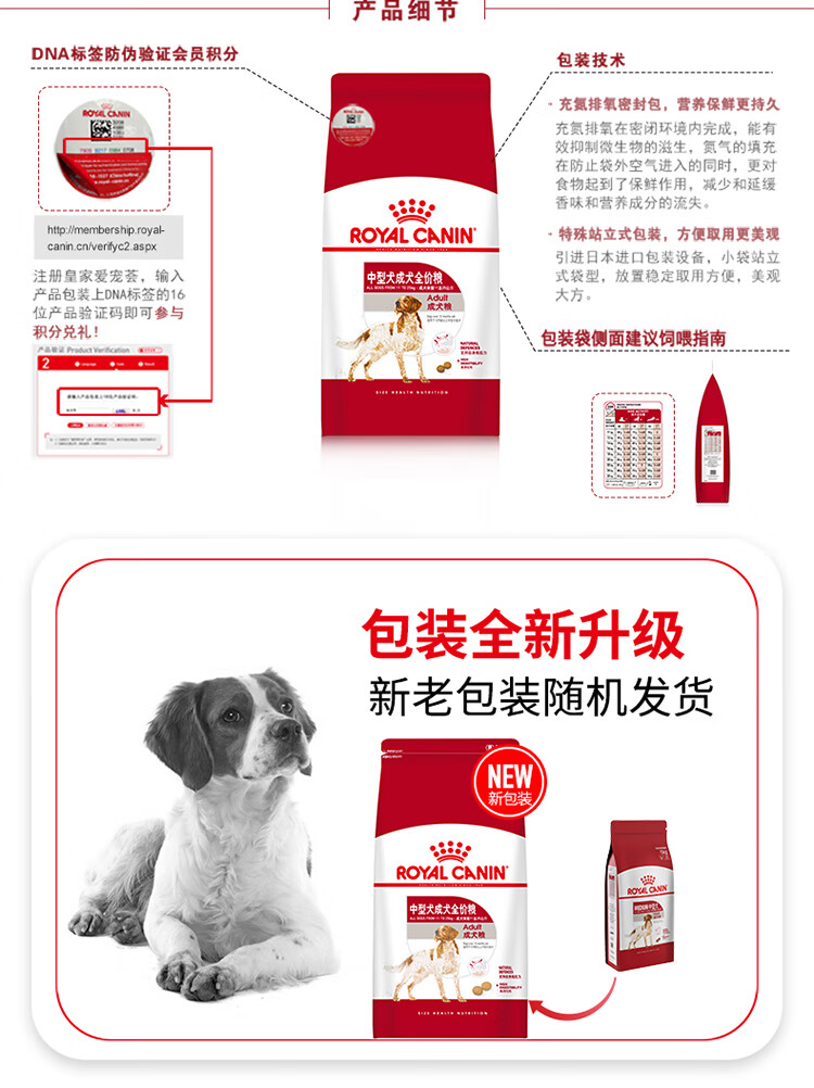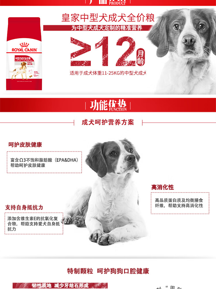 皇家狗粮 成犬狗粮 犬粮 宠物 中型犬 M25 全价犬粮 ≥12月 4KG