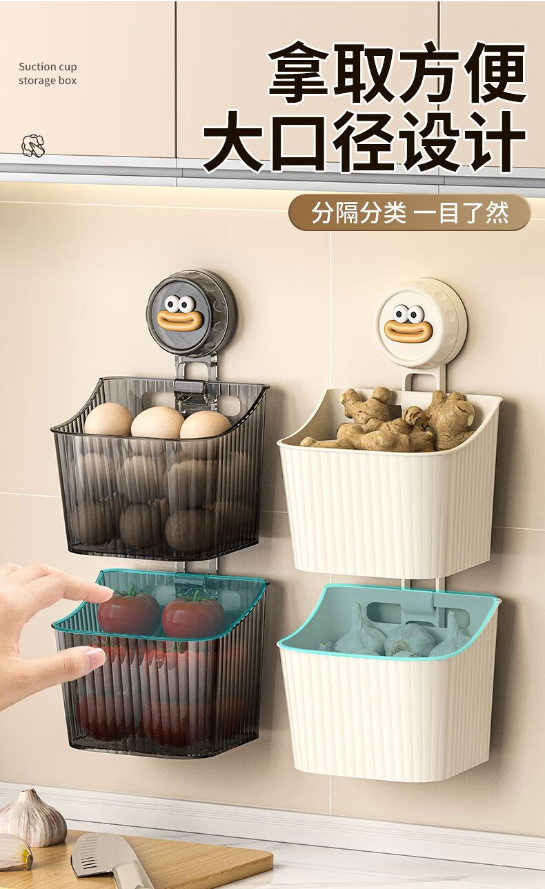 馨婺家厨房吸盘葱姜蒜收纳盒置物架壁挂生姜大蒜挂篮免打孔蒜头收纳挂篮 枪灰色-单层【沥水通风】