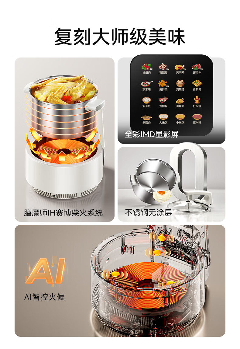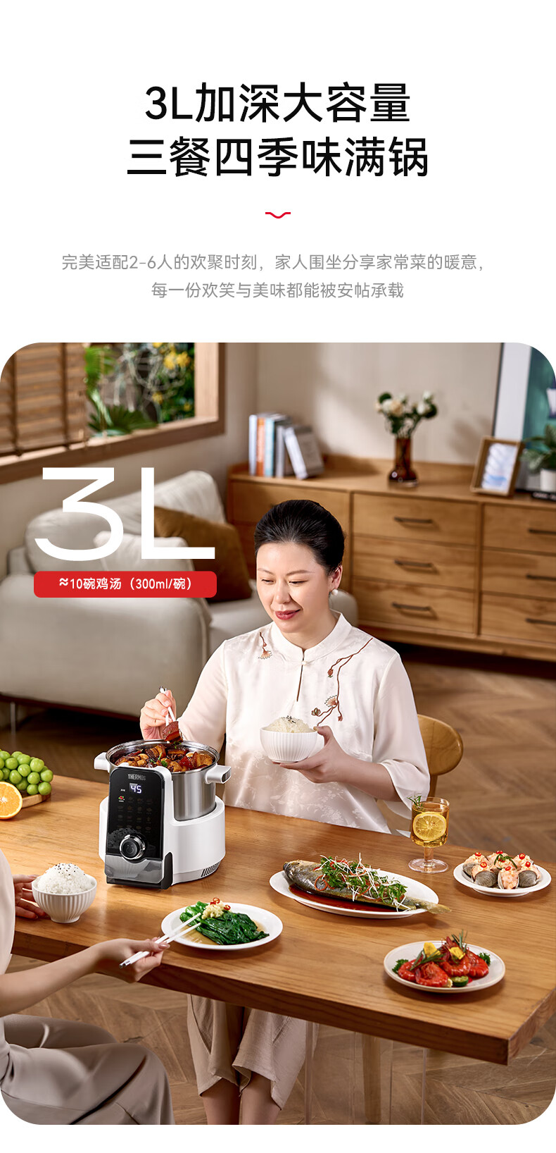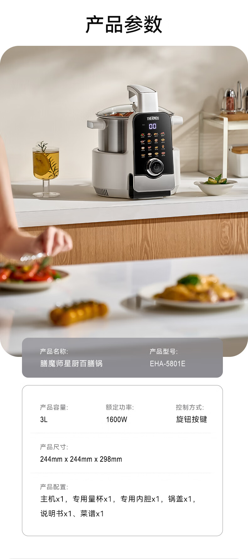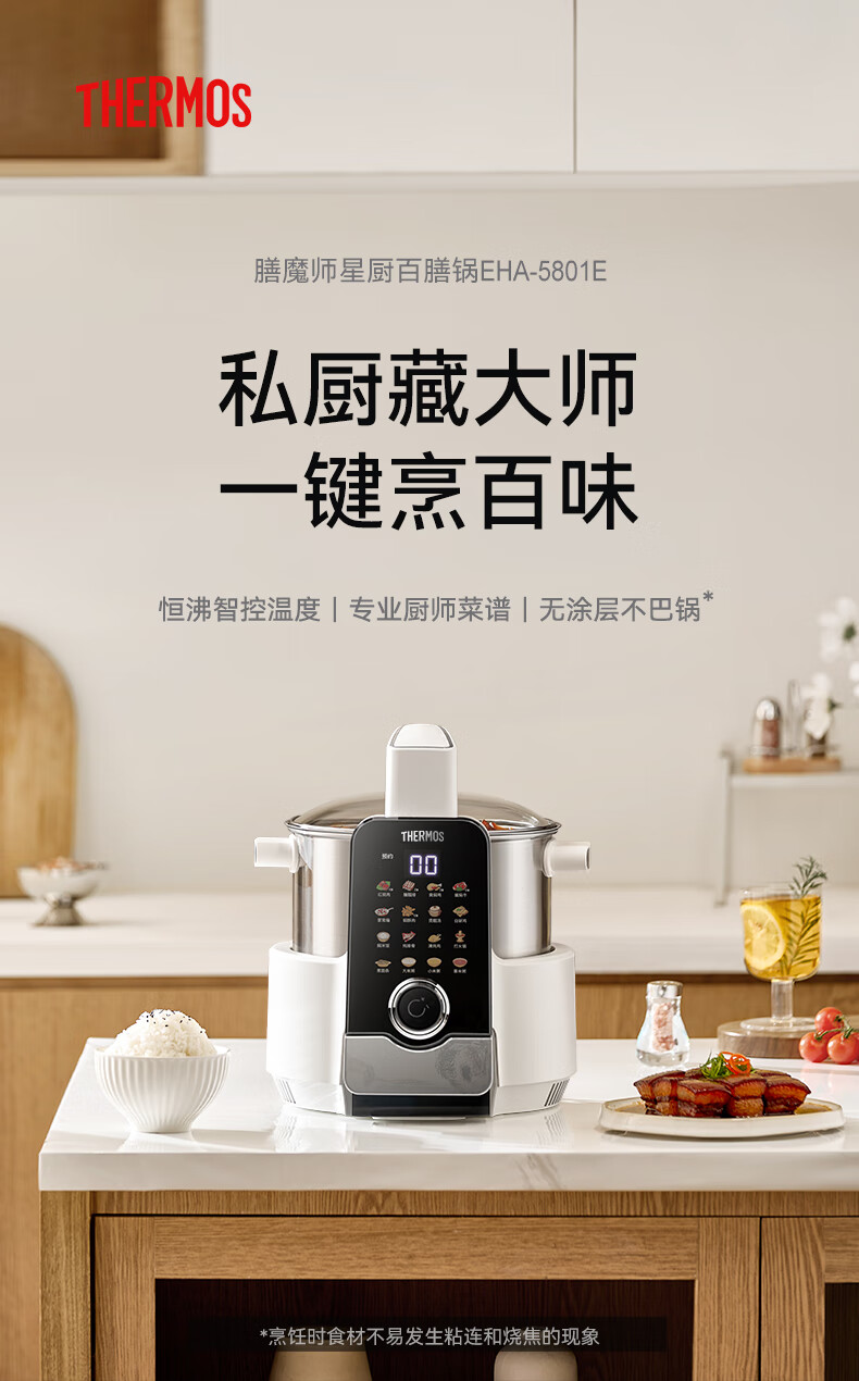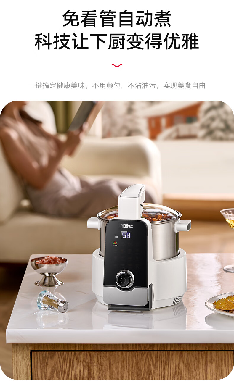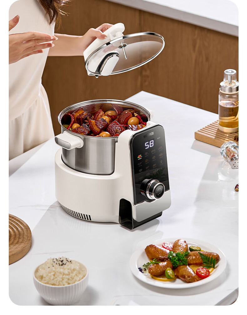 膳魔师(THERMOS)智能炒菜锅炒菜机器人家用自动炒菜机无涂层全自动烹饪智能锅精准控温不粘内胆可定时预约国家补贴