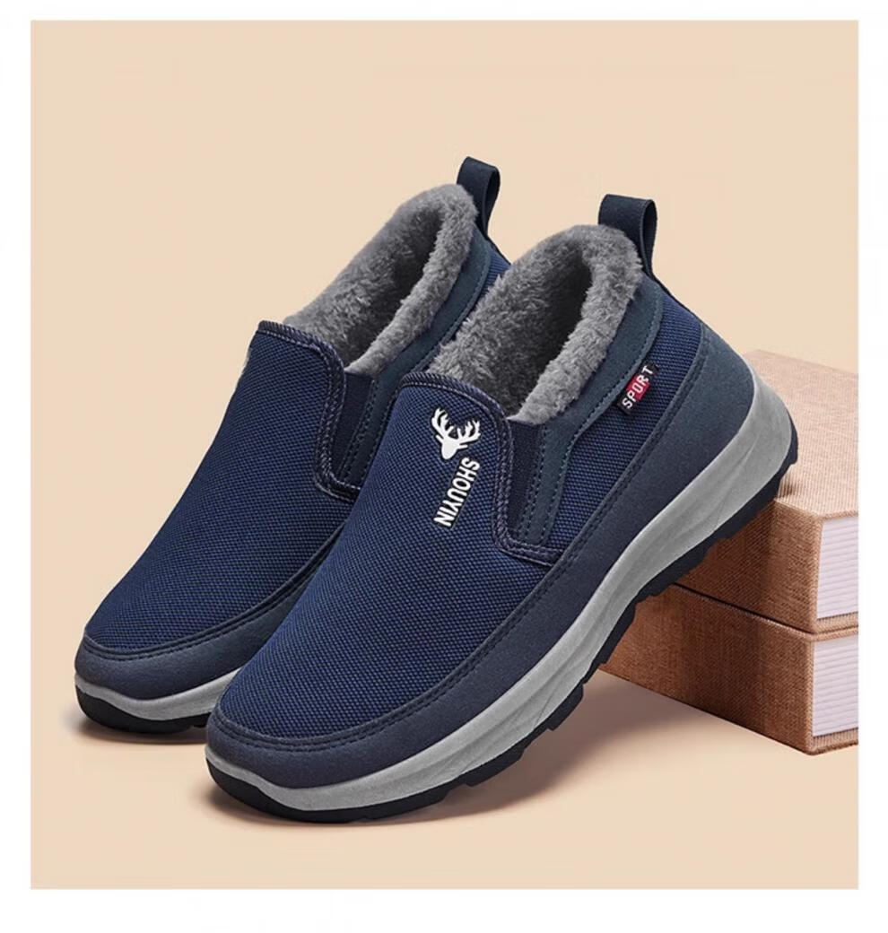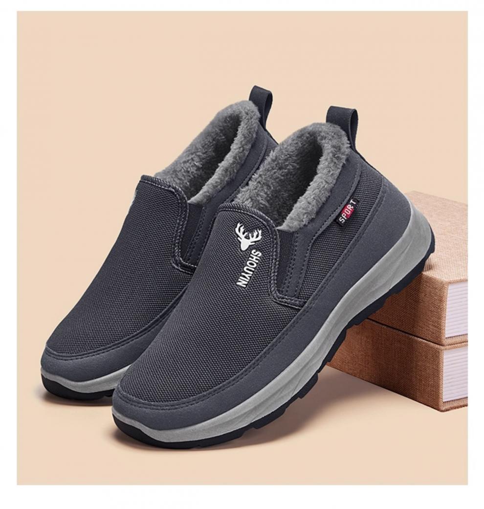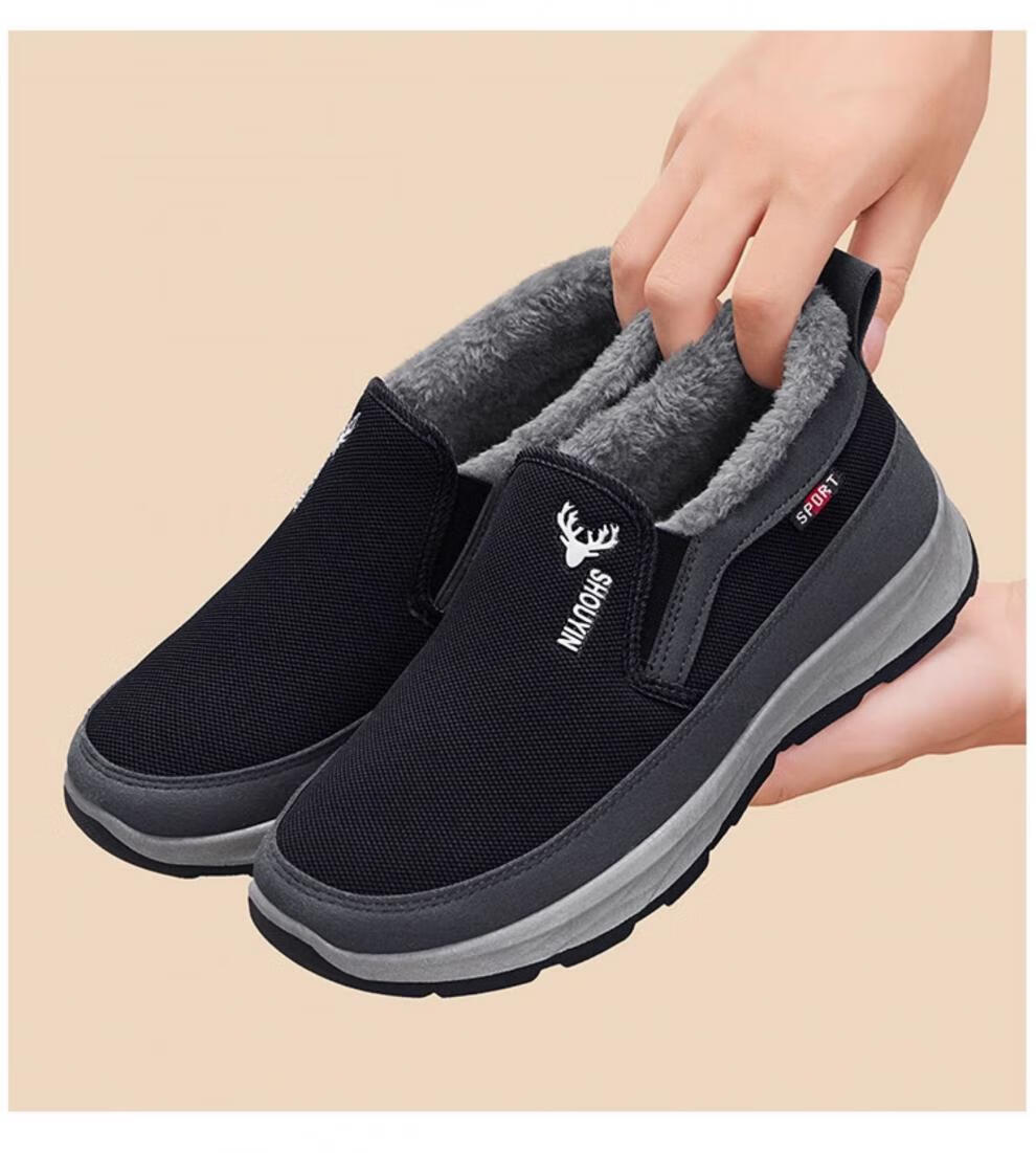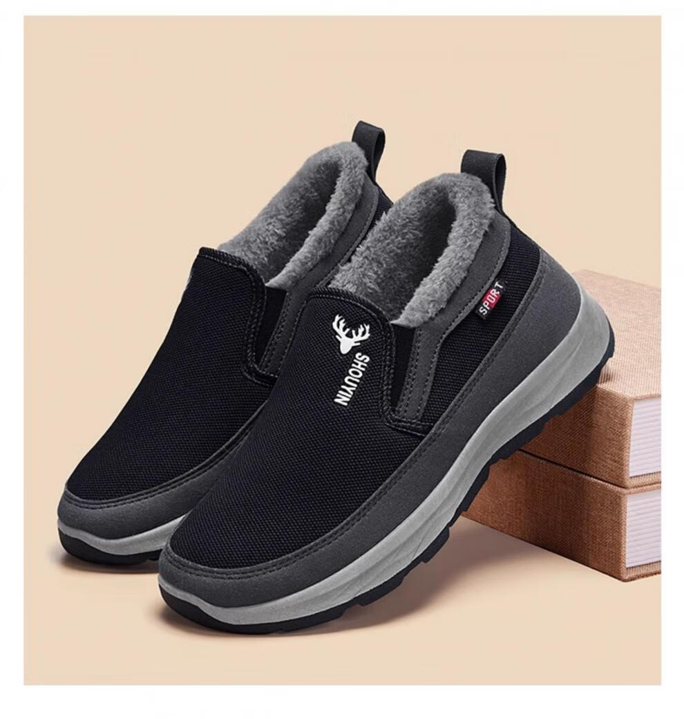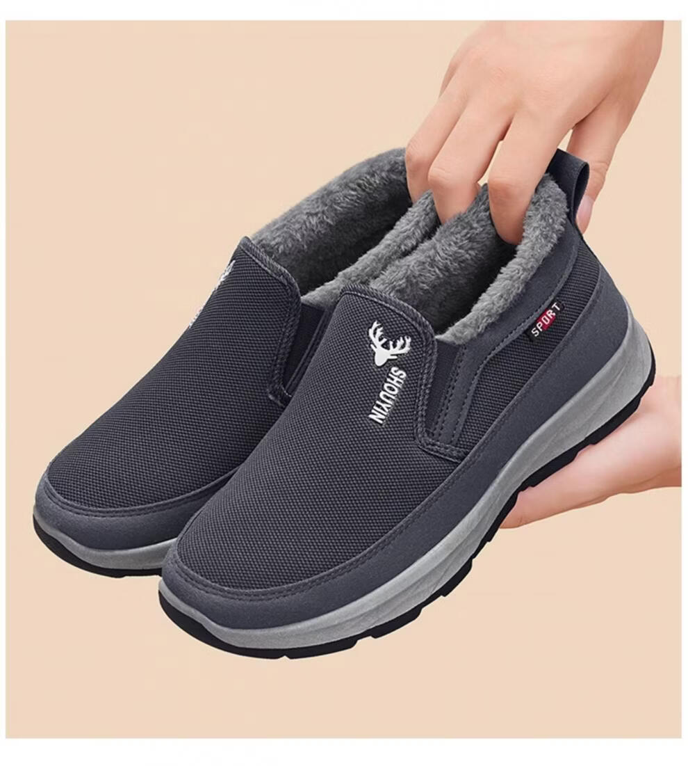 稻草人(MEXICAN)老北京布鞋男冬季防滑保暖加绒二棉鞋中老年人男士休闲爸爸棉鞋子 灰色 38