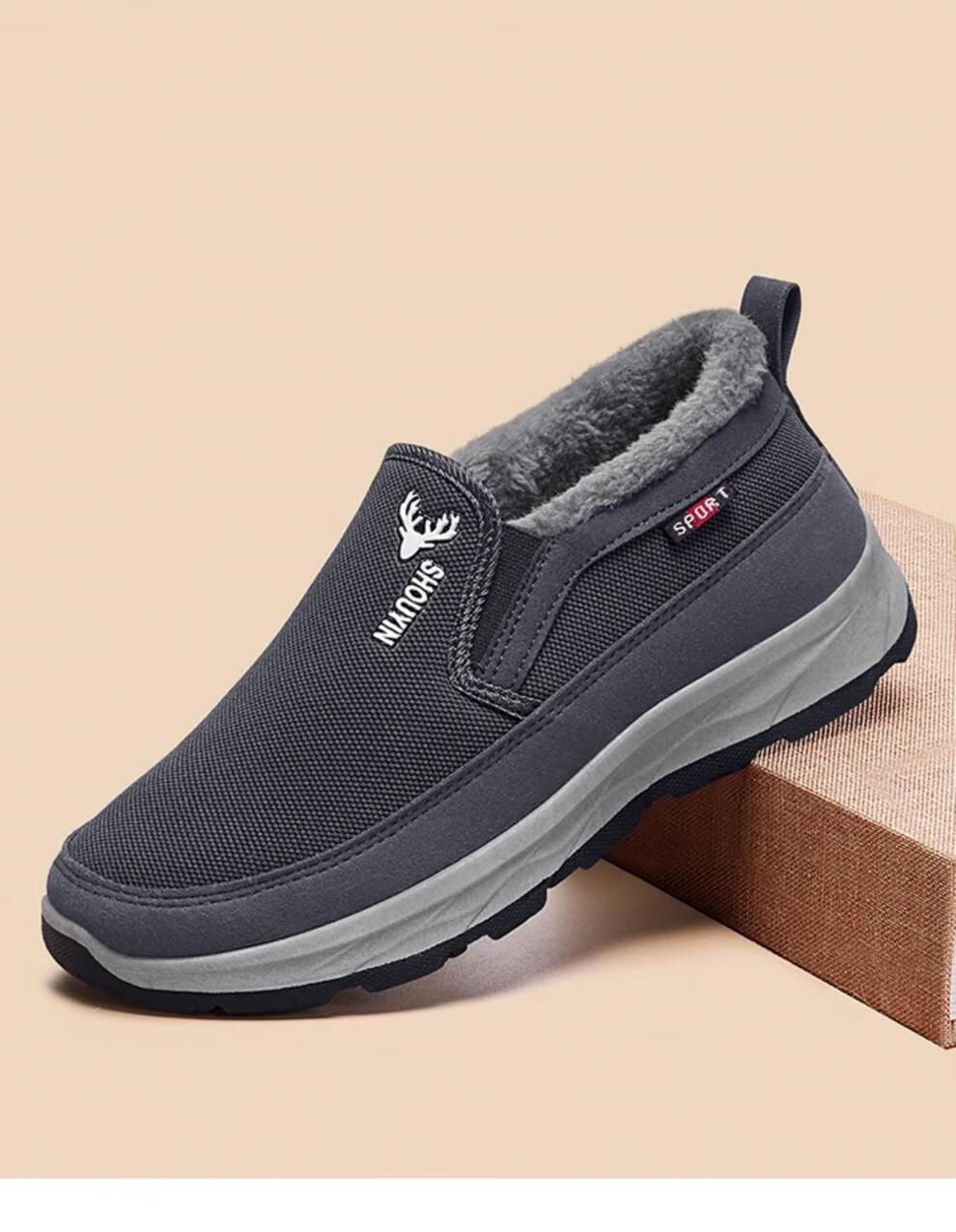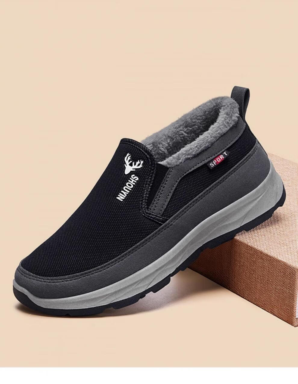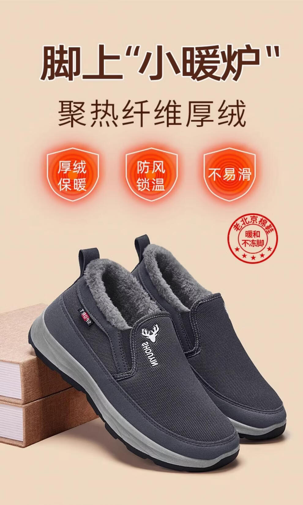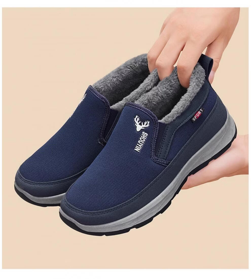 稻草人(MEXICAN)老北京布鞋男冬季防滑保暖加绒二棉鞋中老年人男士休闲爸爸棉鞋子 灰色 38