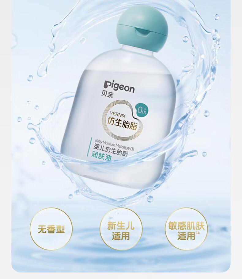 贝亲仿生胎脂 抚触油 婴儿抚触油 婴儿油 润肤油 锁水保湿 抚触油90ml