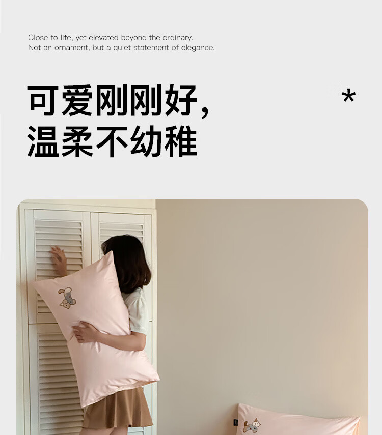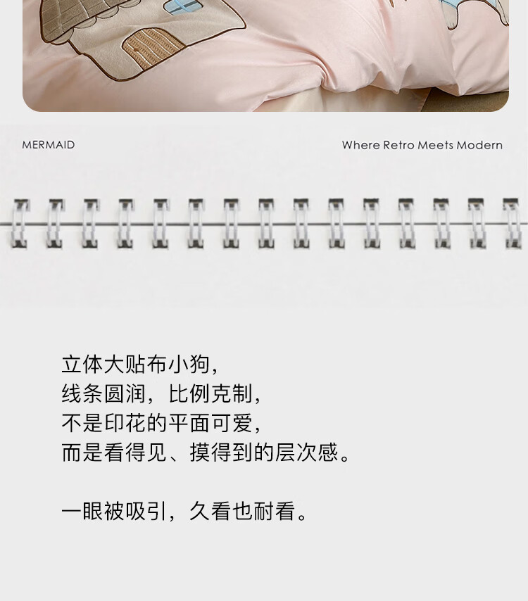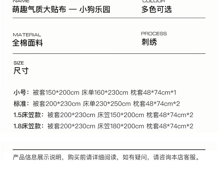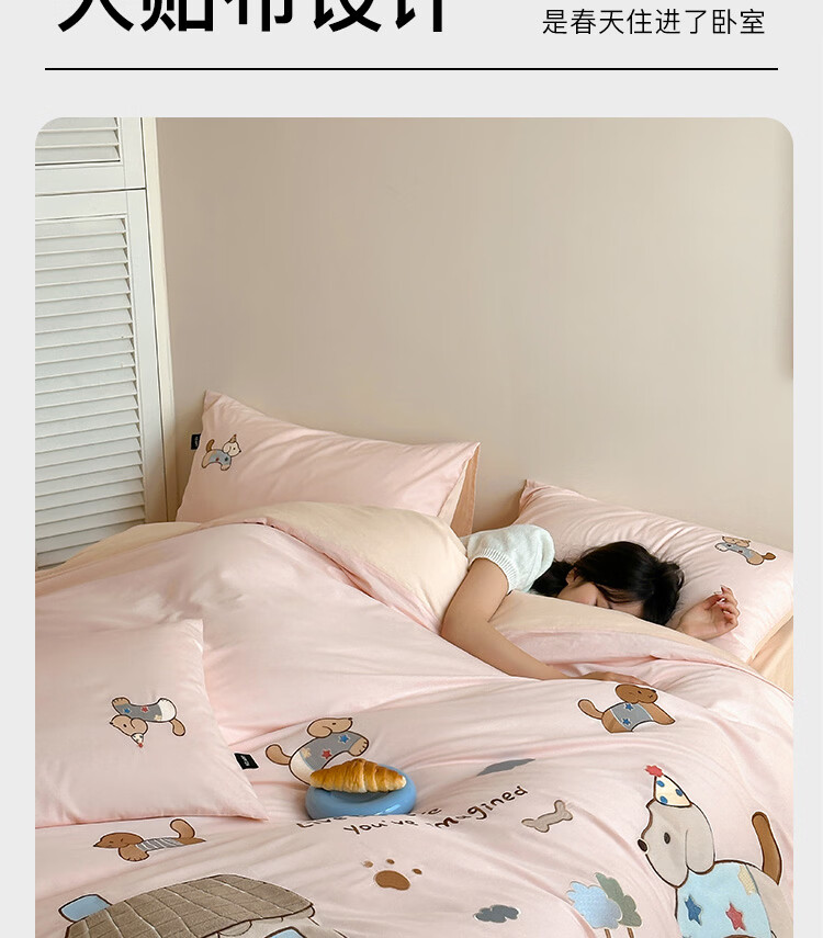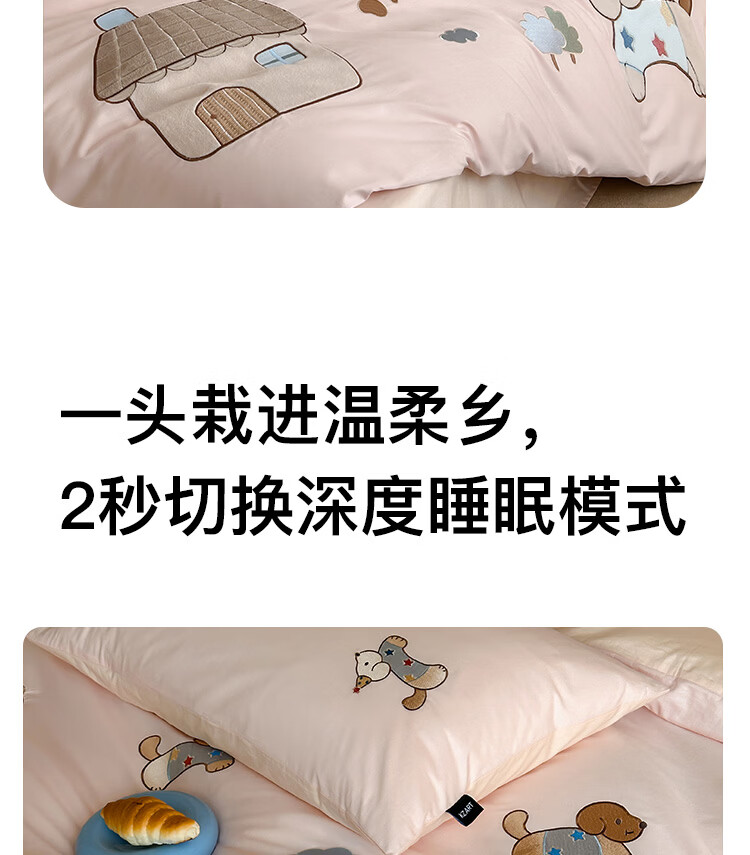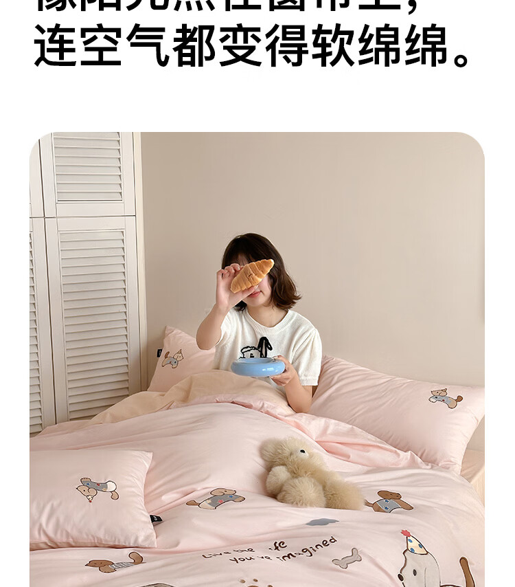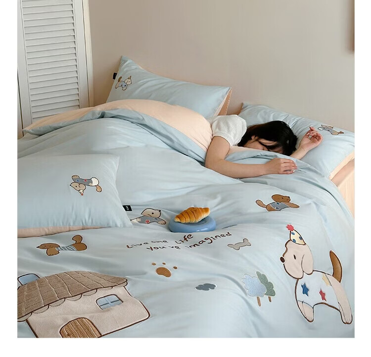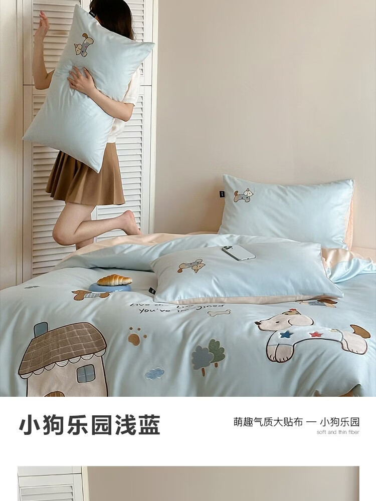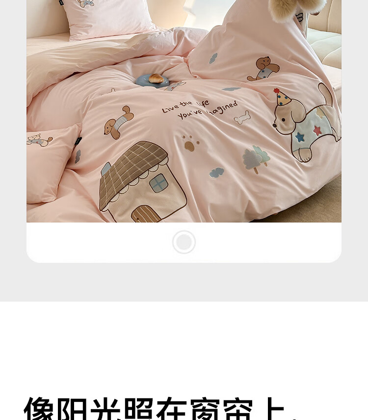 ROLAND LIVE儿童全棉卡通四件套萌趣小狗贴布绣被套床单学生宿舍三件套 KZ 全棉套件-小狗乐园粉 1.8米床 床笠款 【被套200*230cm】