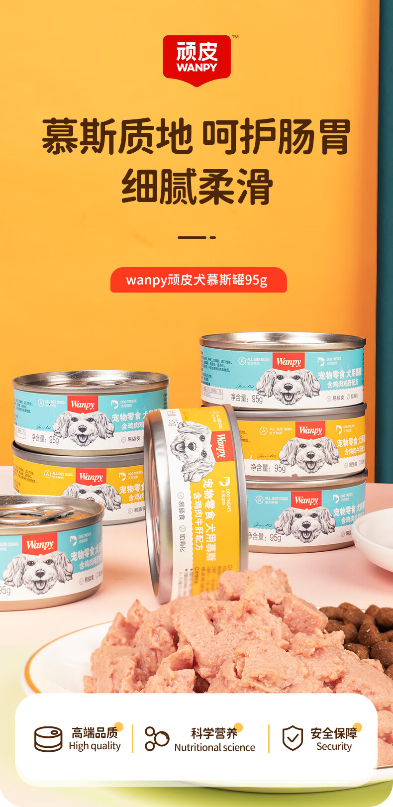 顽皮(Wanpy)狗狗罐头营养宠物零食罐头增肥慕斯狗湿粮罐头 鸡肉鸡肝95g*12罐
