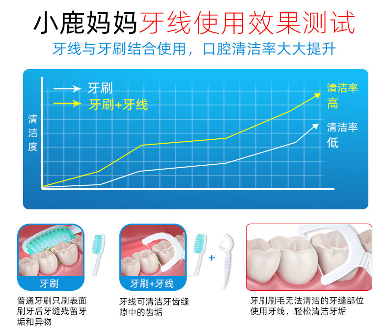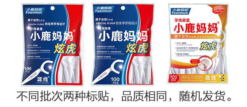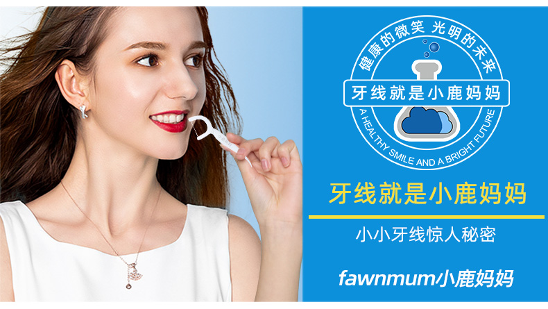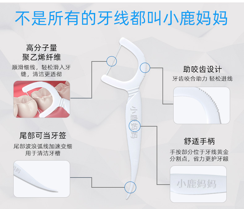 小鹿妈妈品质牙线棒圆线家庭装舒适深洁剔牙签 青年款牙线 50支 6盒 共300支