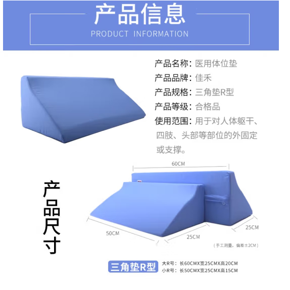 佳禾医用翻身垫海绵病人软护理三角枕头医疗侧身卧床瘫痪老人防褥疮靠背侧身翻身枕辅助器靠垫 三角垫R型大号60*25*20
