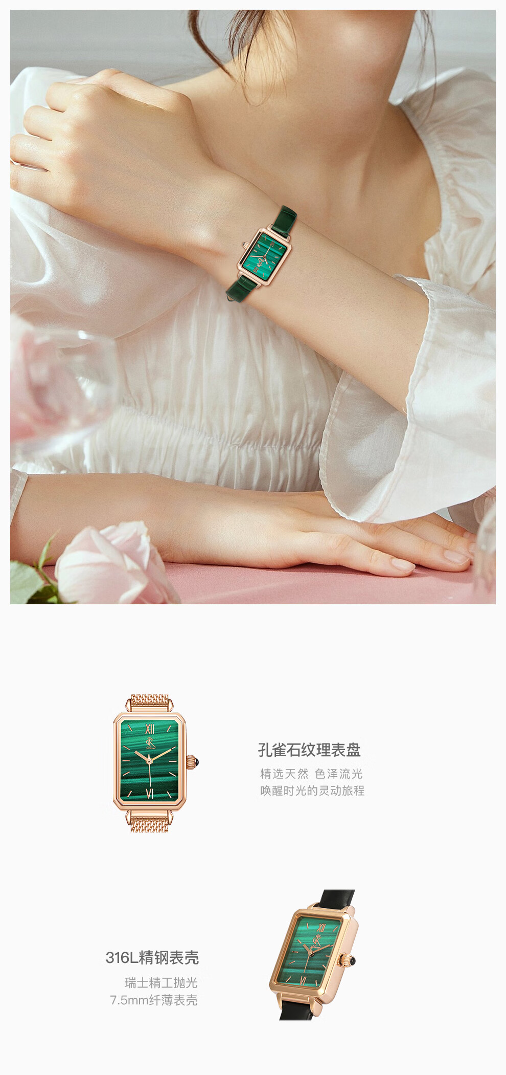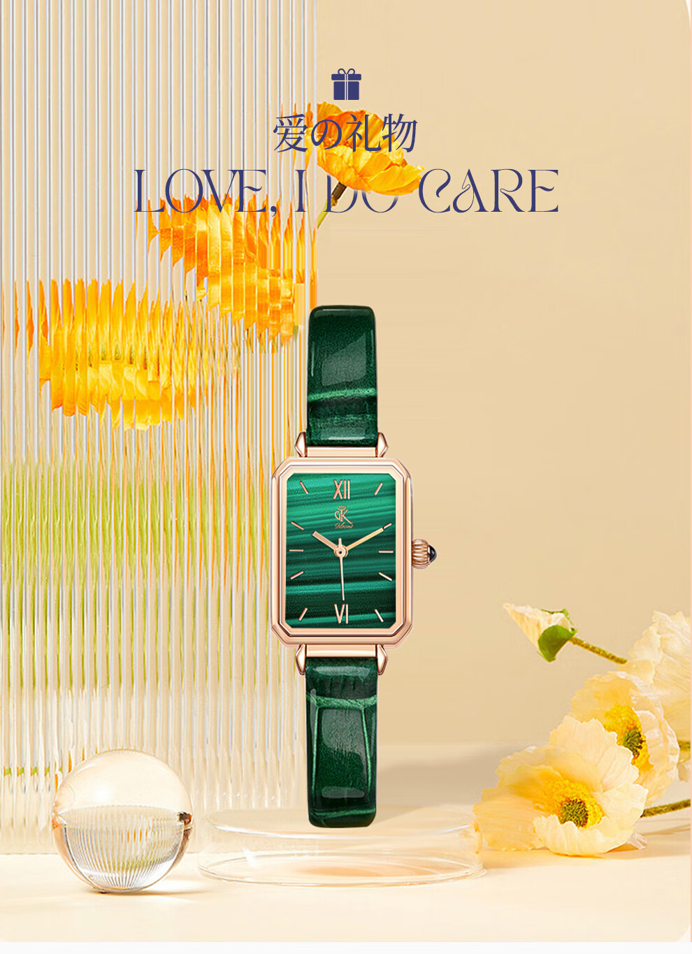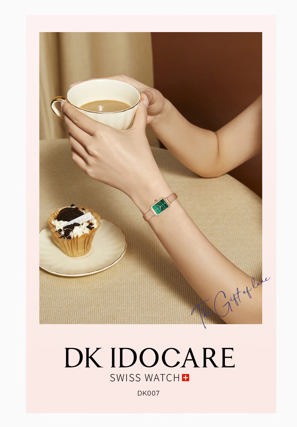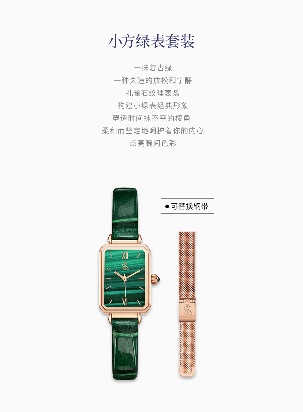 DK女士手表女石英表小方绿表七夕情人节生日新年礼物送女友送老婆 DK007-L+G(套装) 21mm