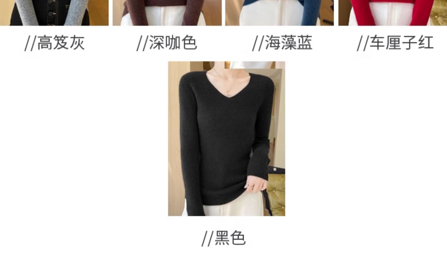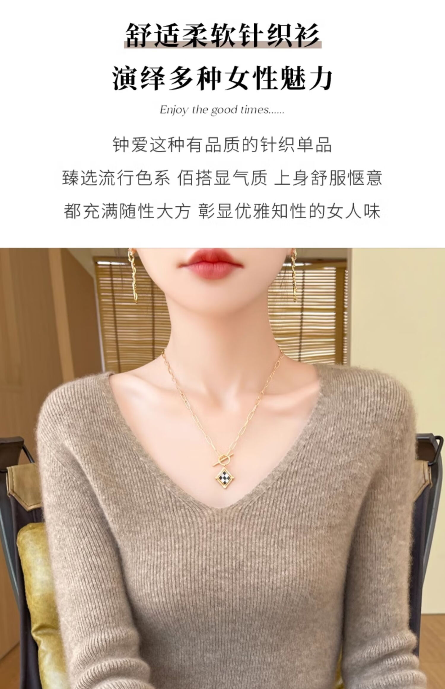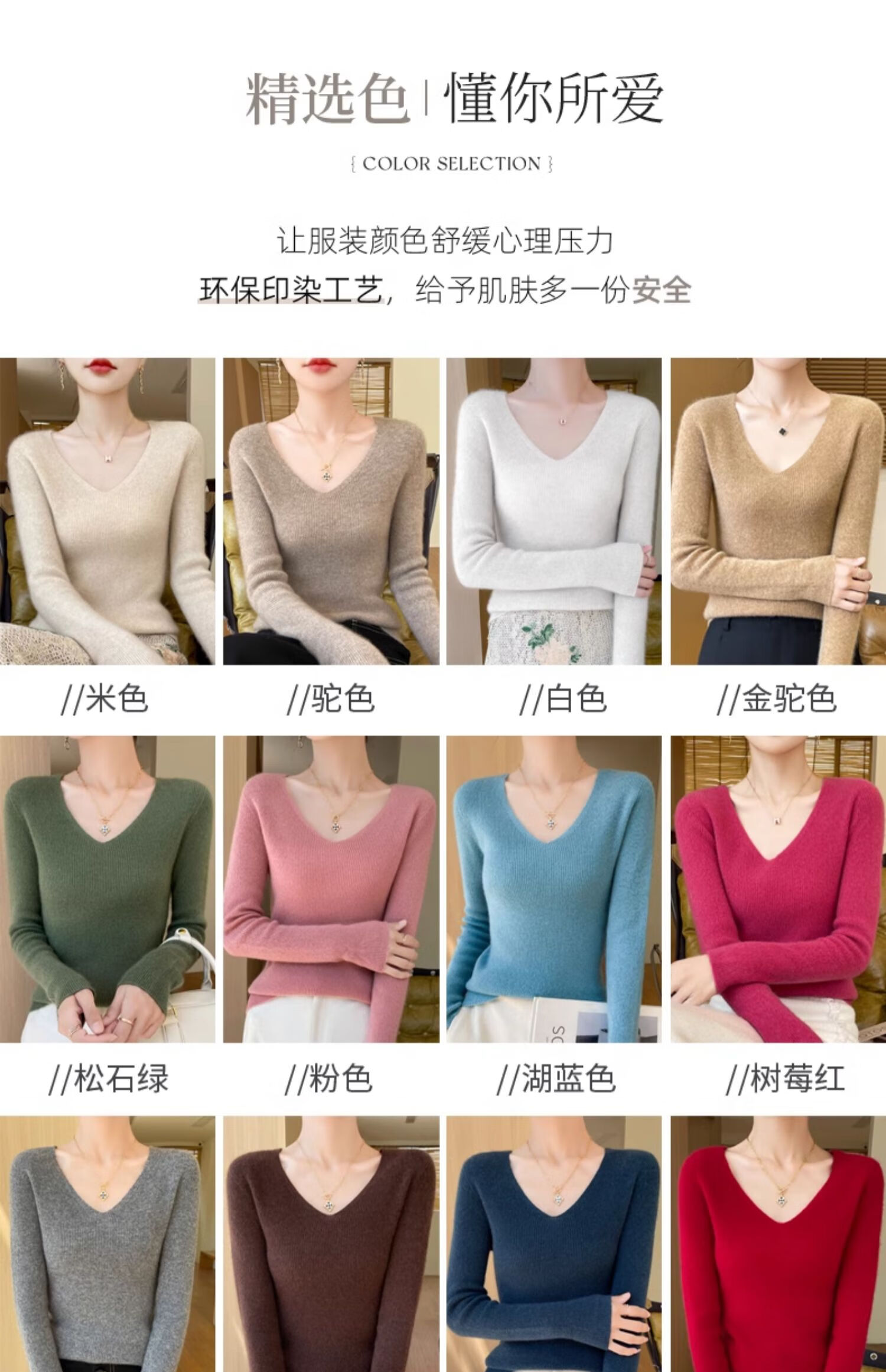 香影纯女装新款2025纯色V领针织衫女秋冬修身修身毛衣女百搭针织打底衫 米色 S (建议95斤以内)