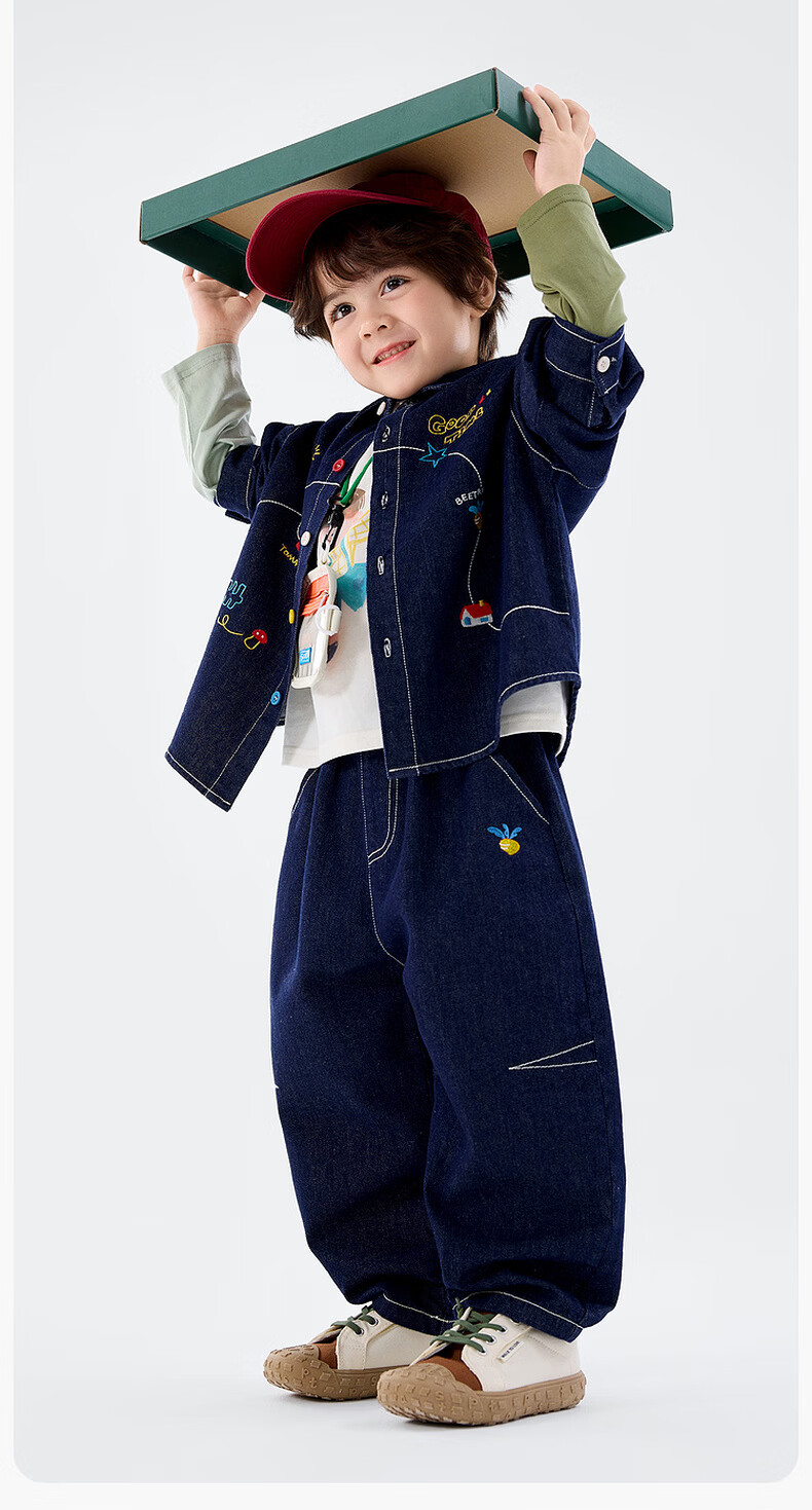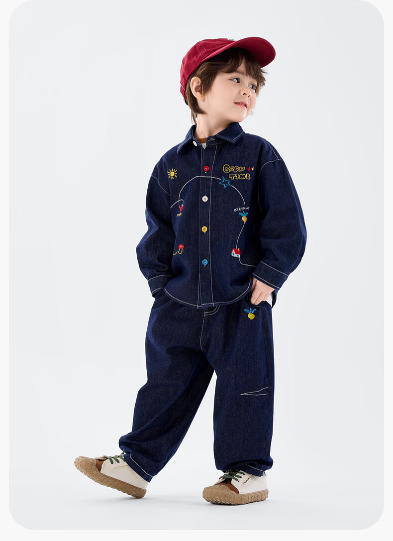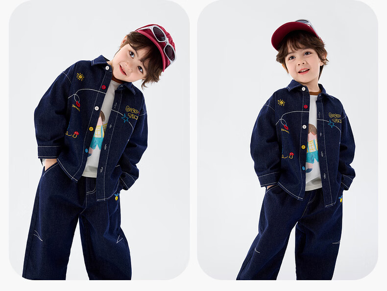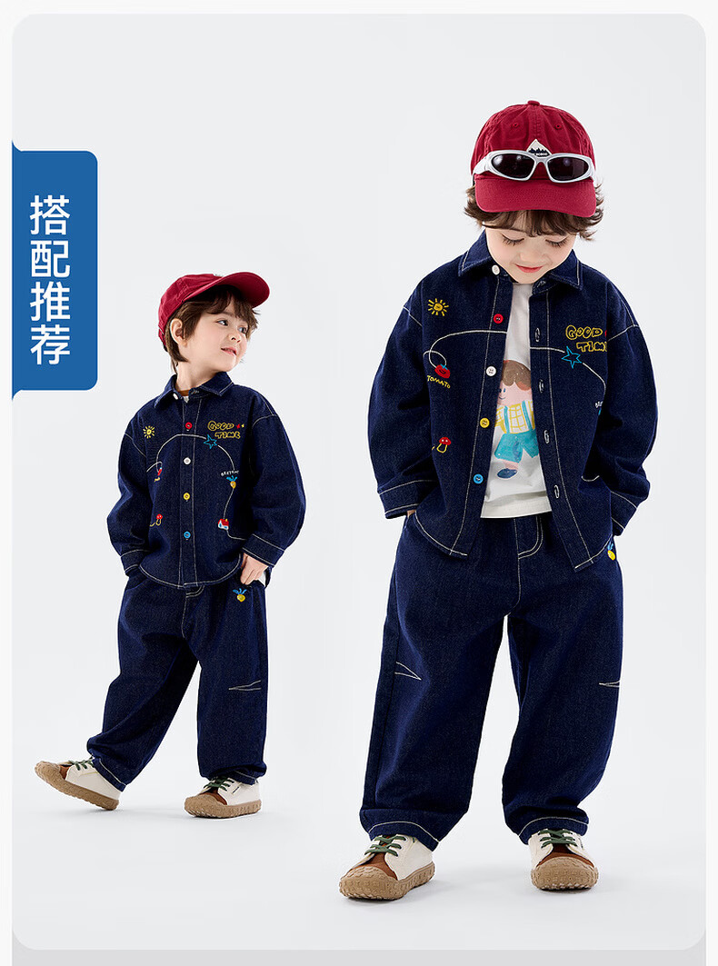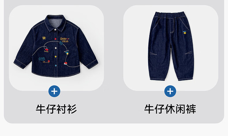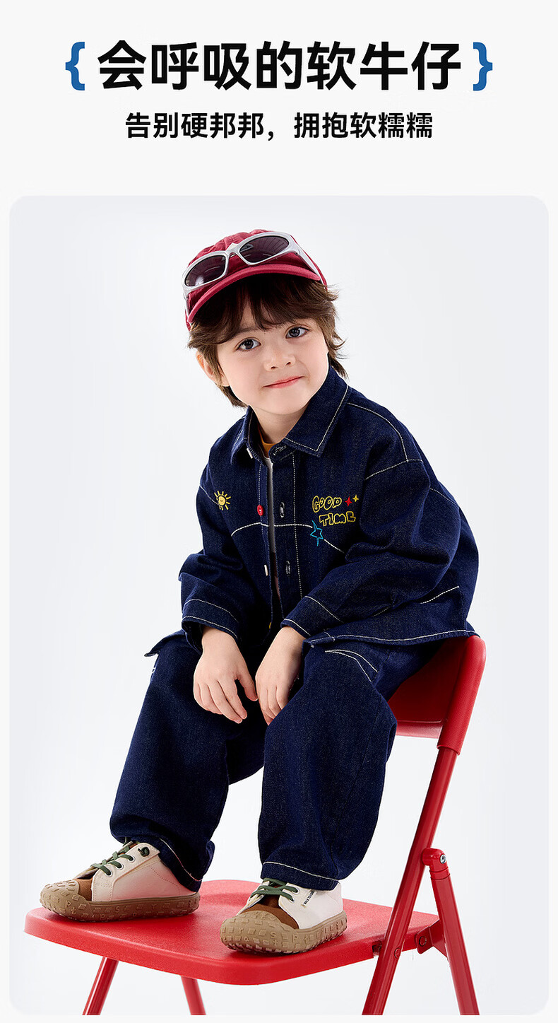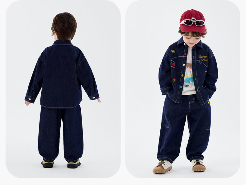 嘟嘟家【防褪色】儿童春季软牛仔套装男童休闲宽松两件套女童梭织外套潮 牛仔蓝 90 现货