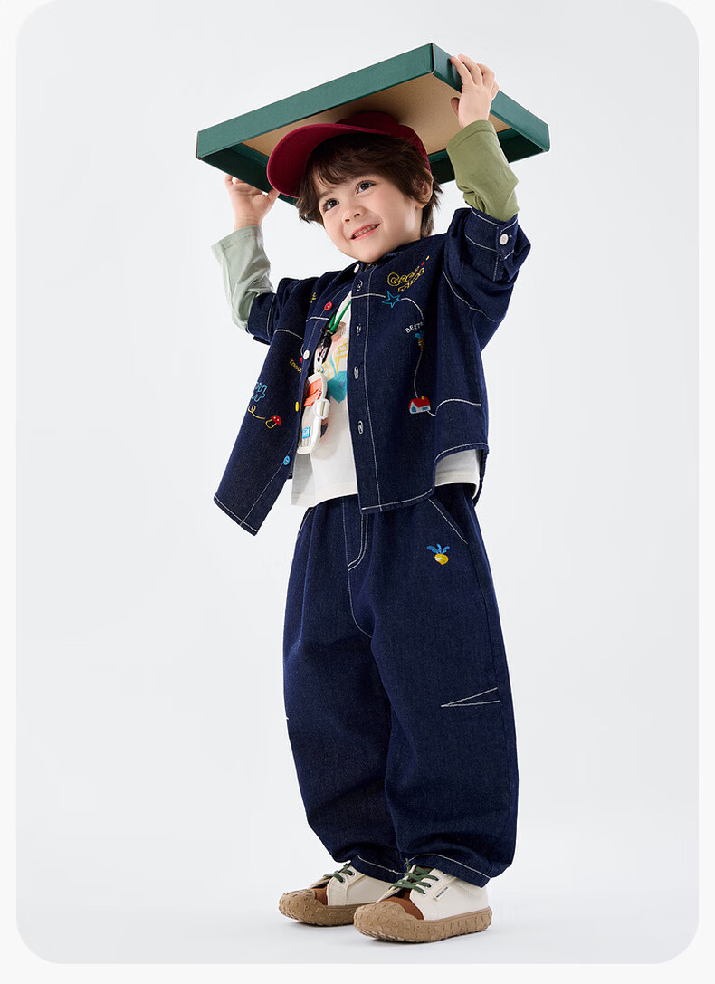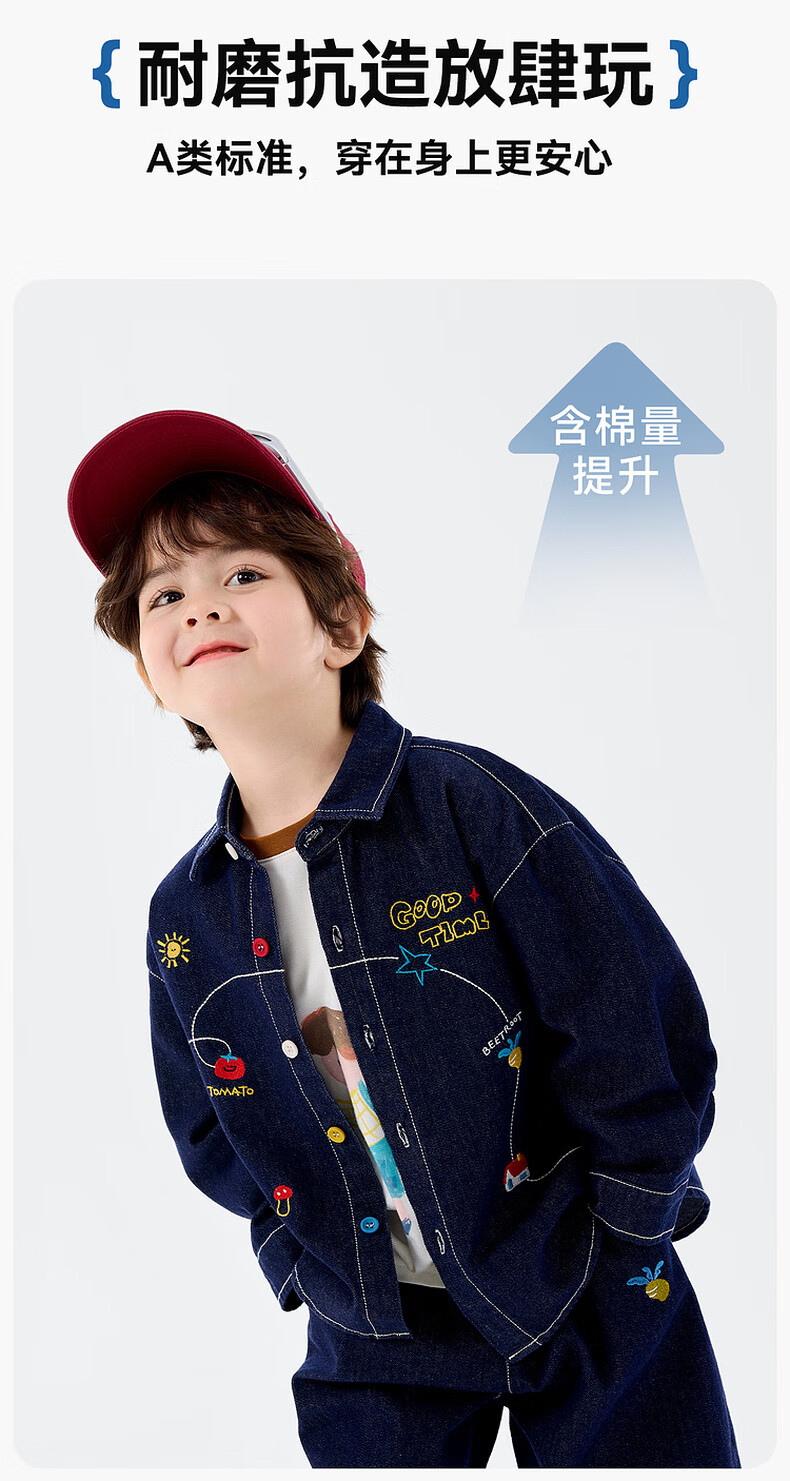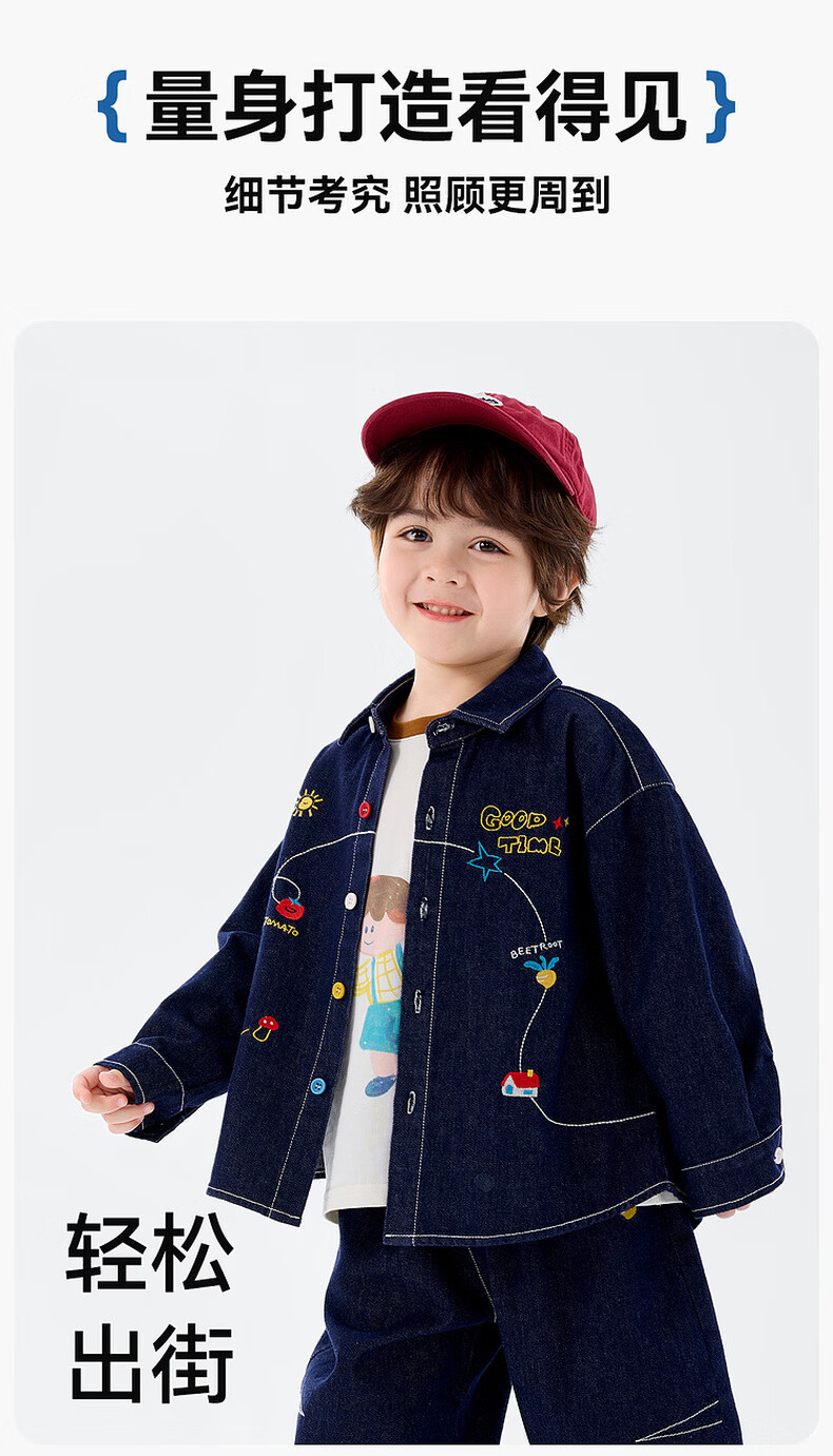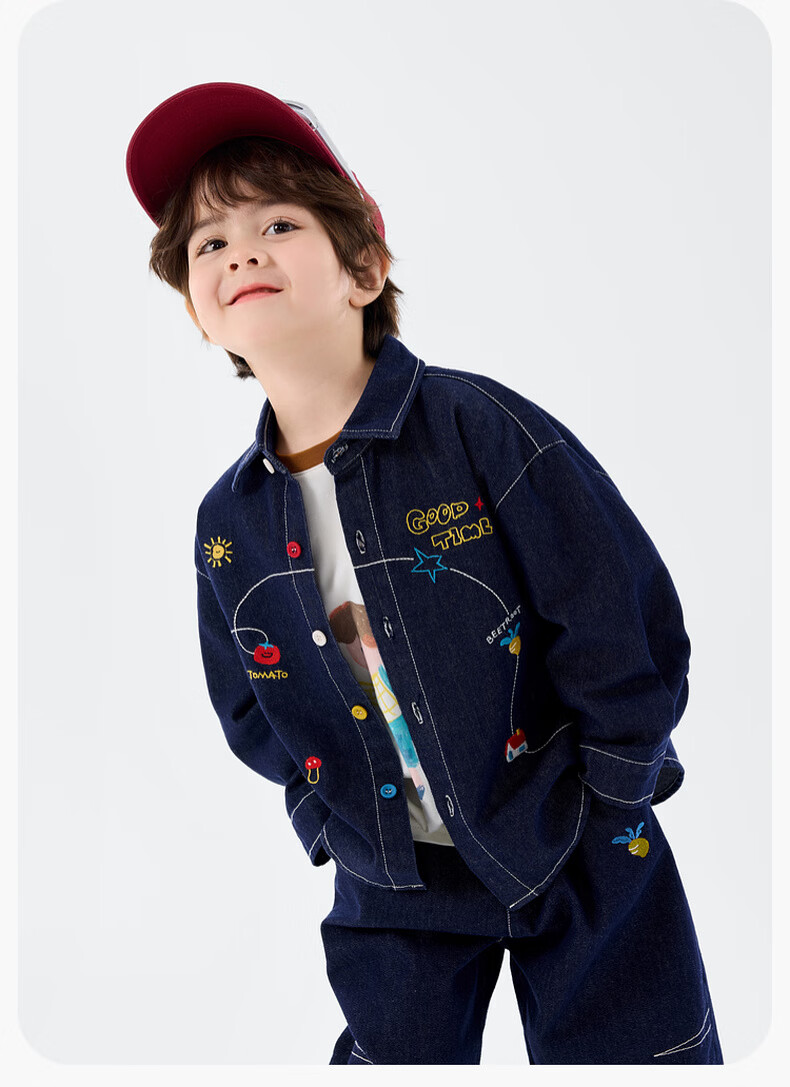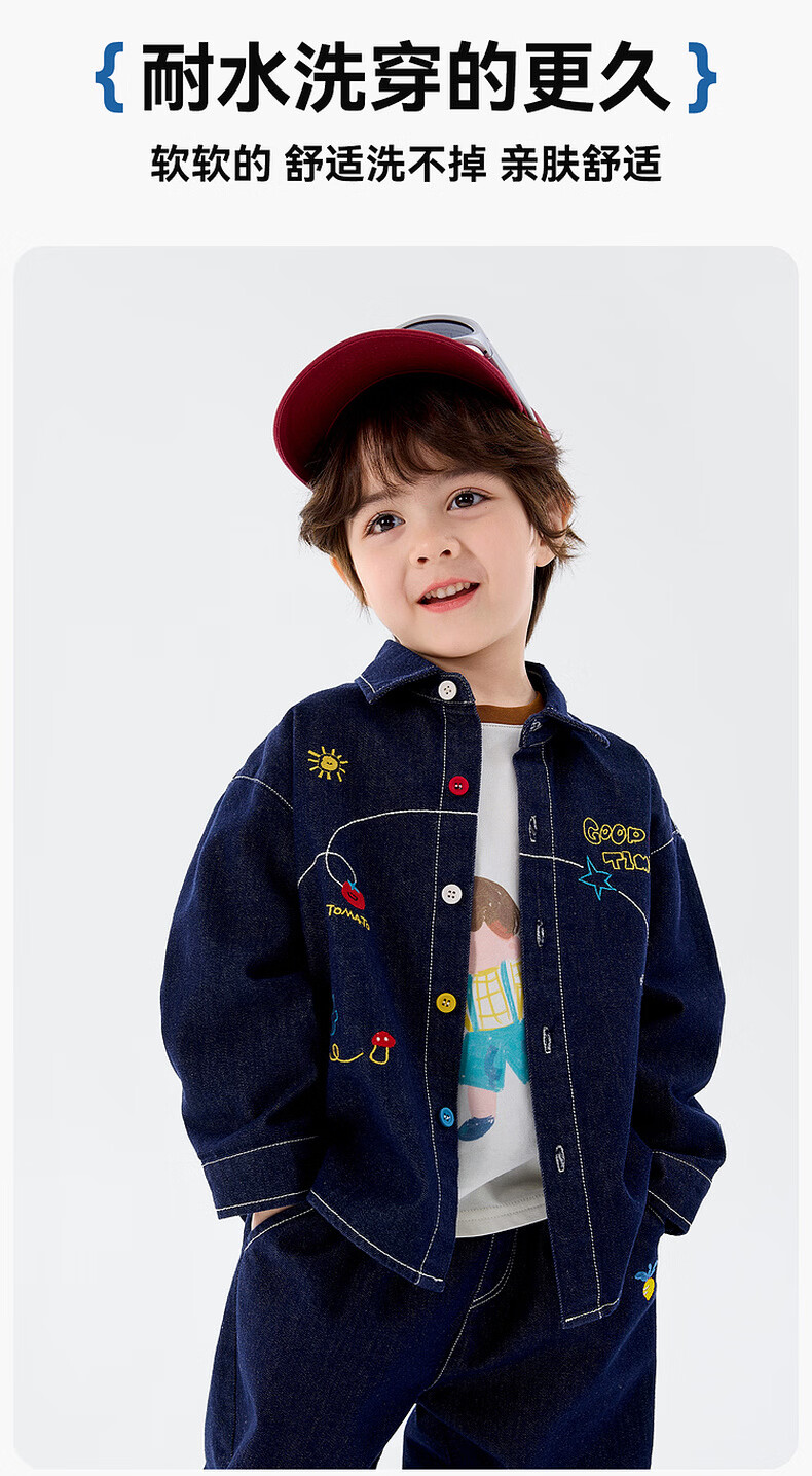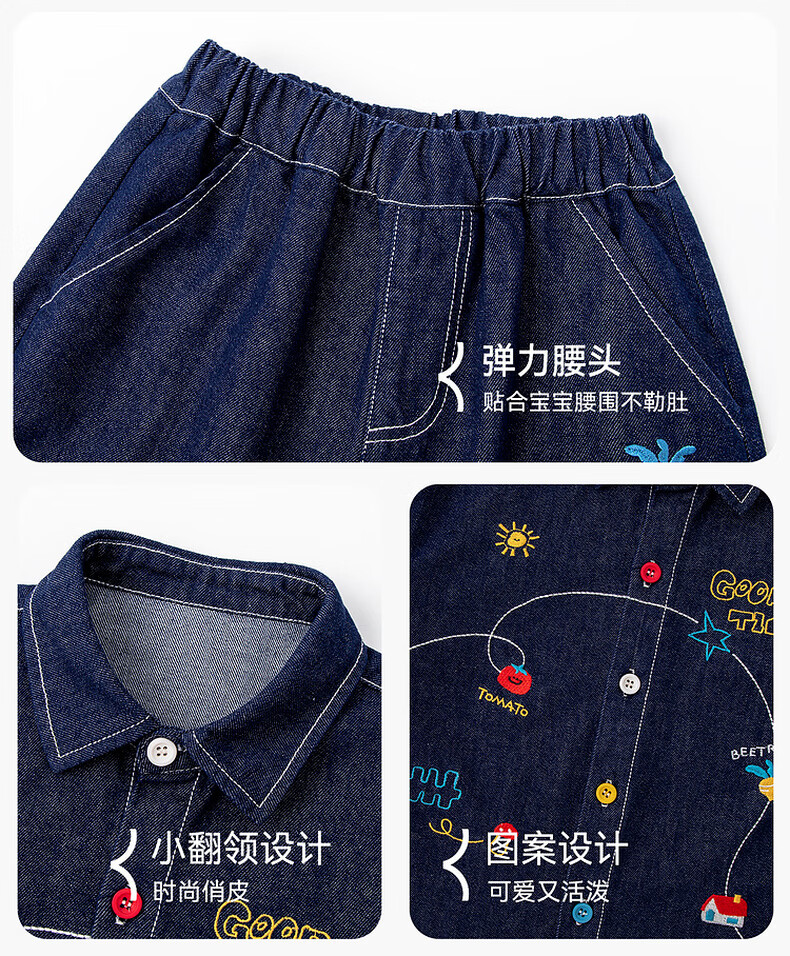 嘟嘟家【防褪色】儿童春季软牛仔套装男童休闲宽松两件套女童梭织外套潮 牛仔蓝 90 现货