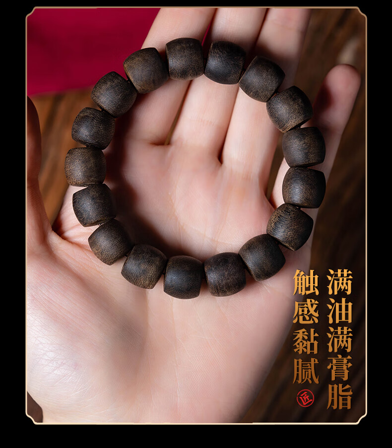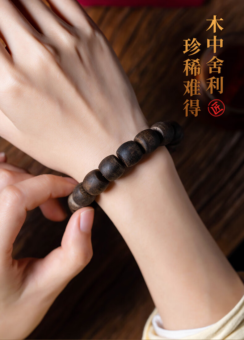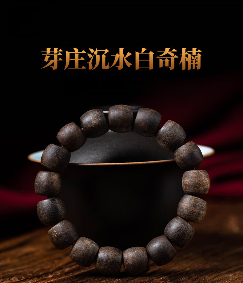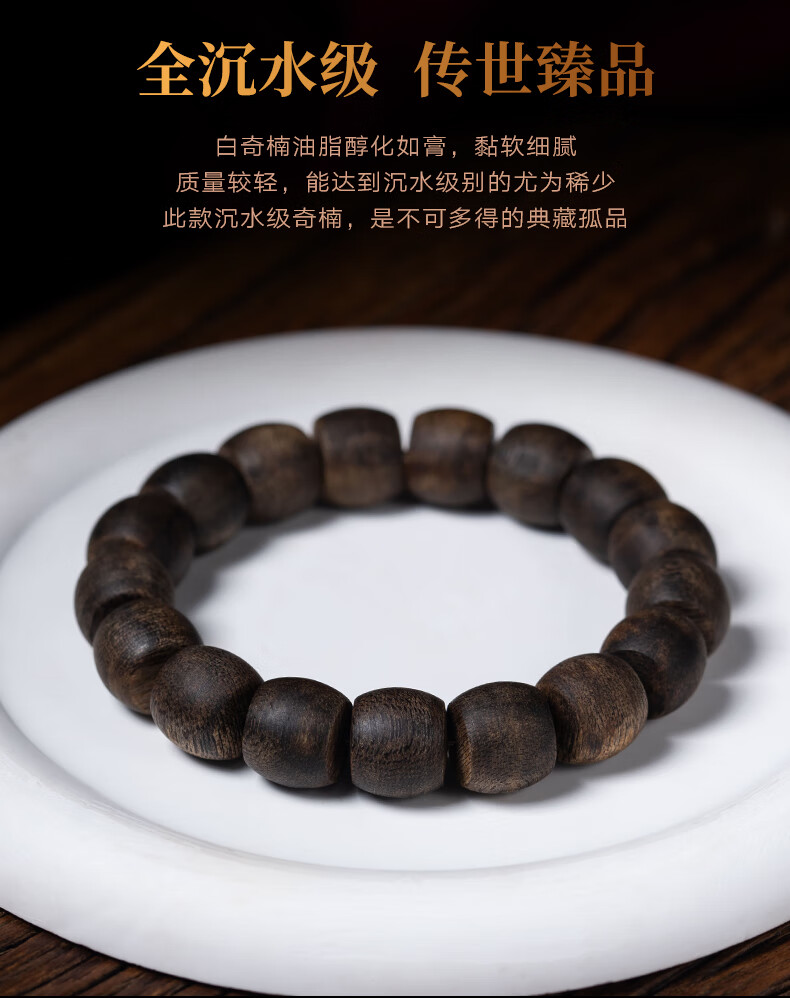 耕鸿越南芽庄白奇楠典藏级沉香桶珠佛珠全沉水级棋楠天然熟结手串收藏 沉水级桶珠沉香12mm