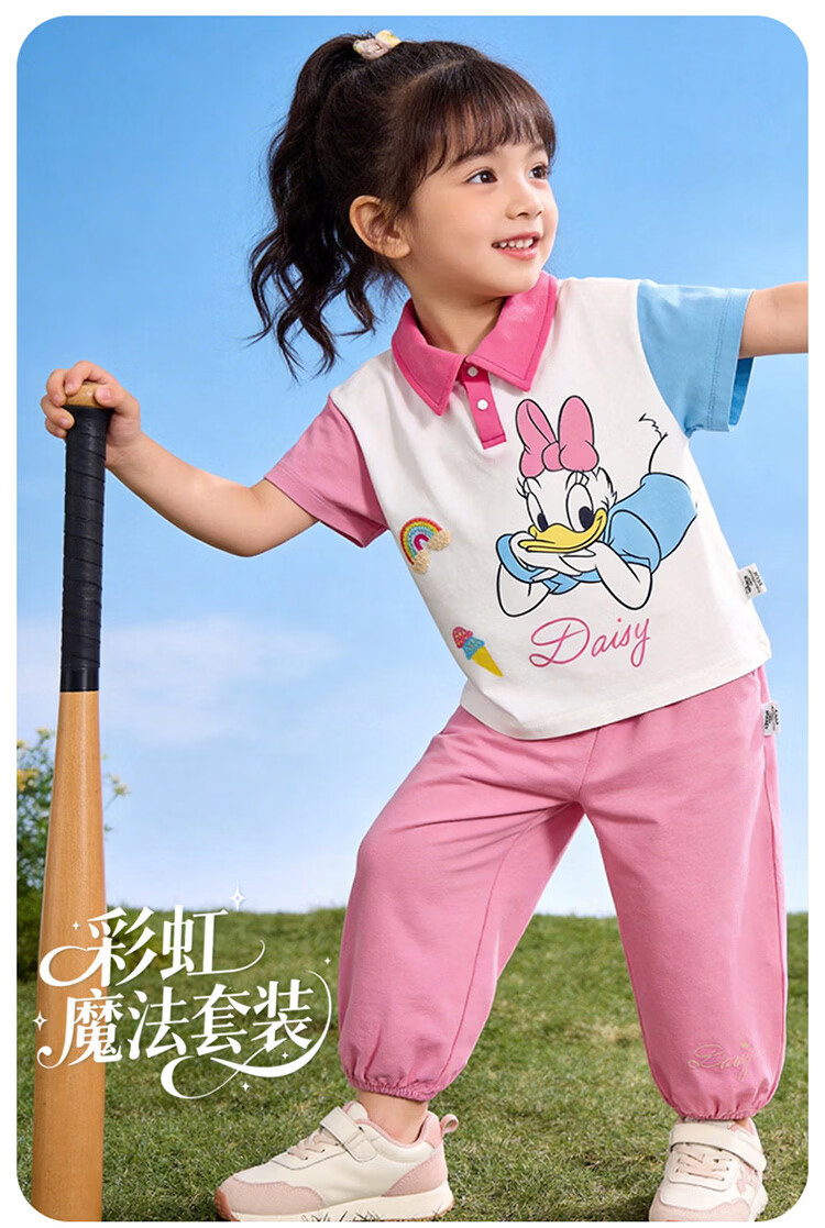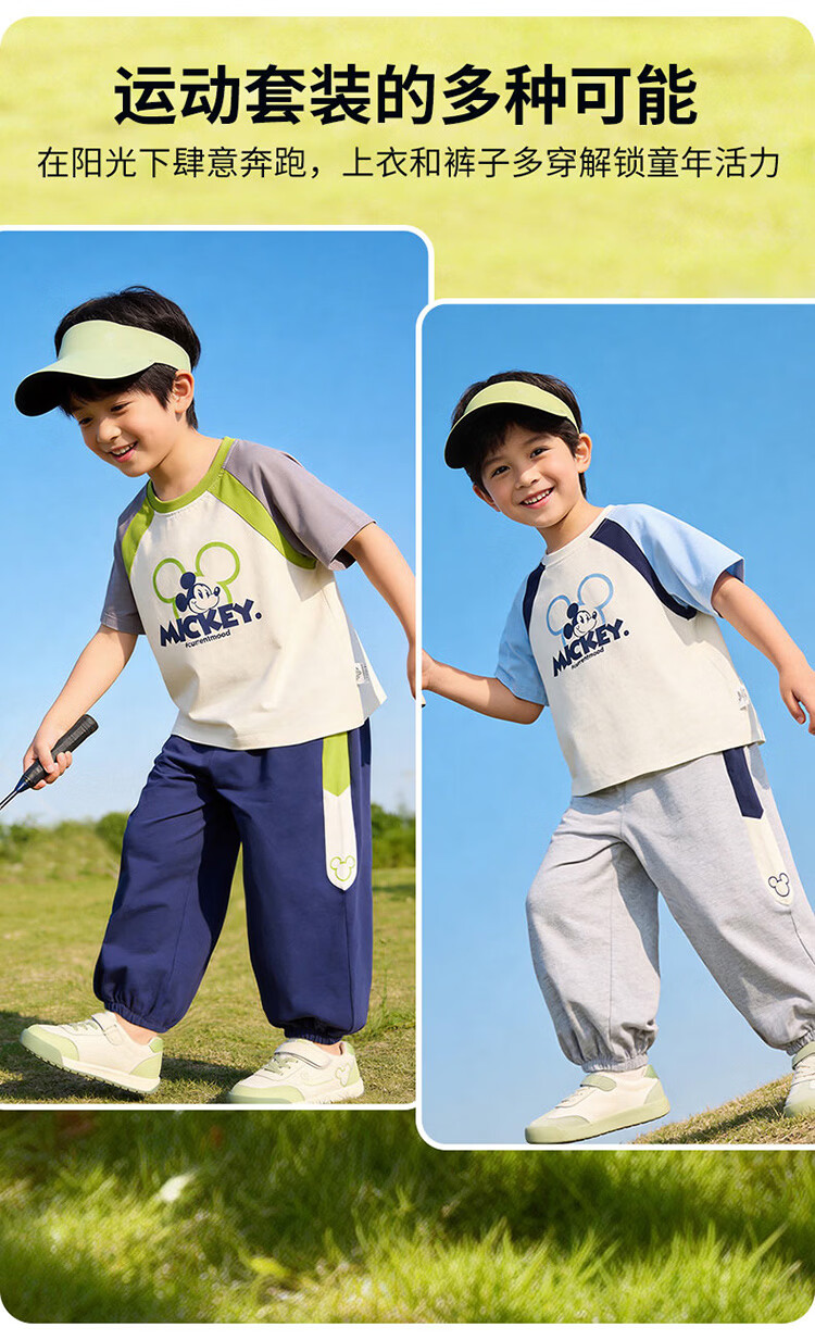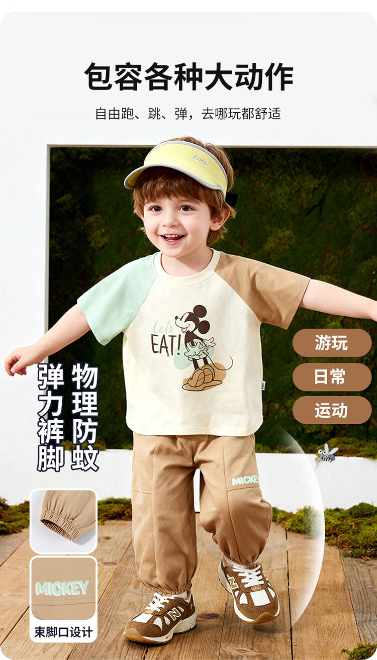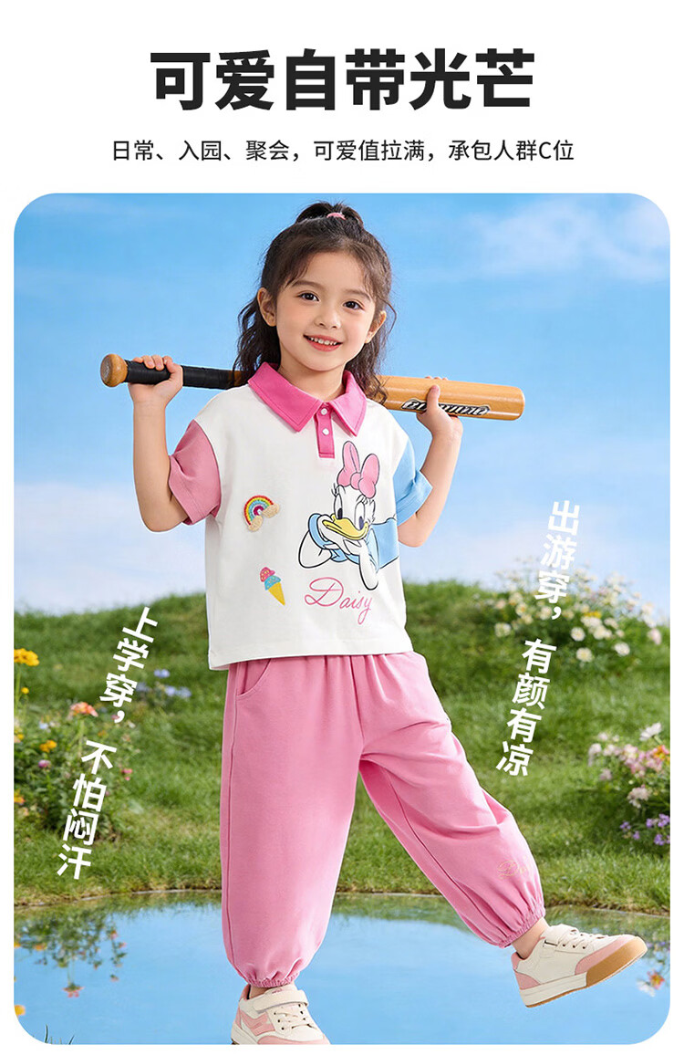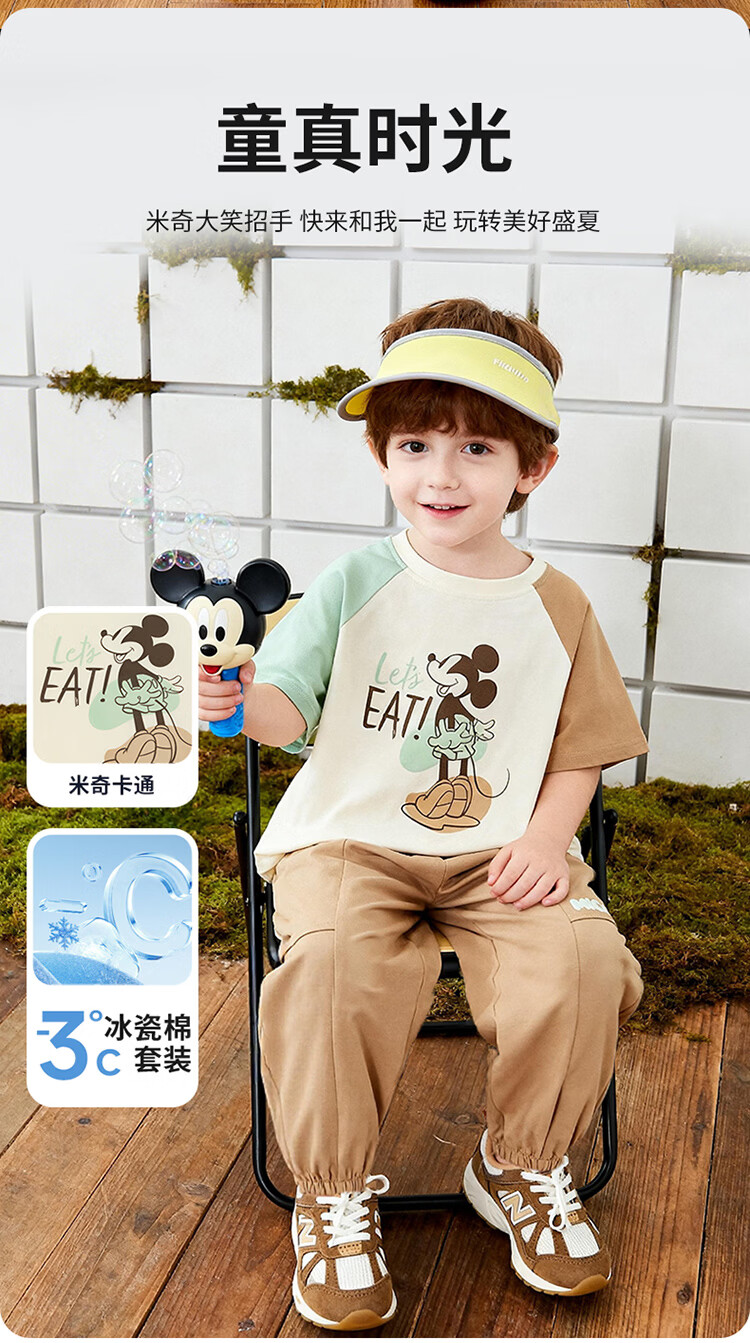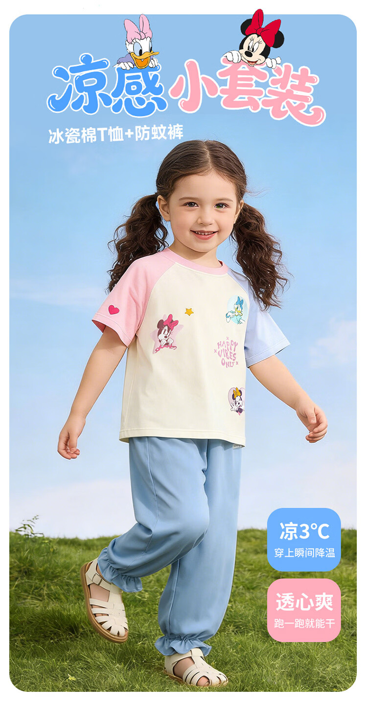 迪士尼儿童舒适凉感休闲短袖长裤套装夏季新款男女童甜美潮流运动套装 碳灰插肩袖套装 100 (建议2-3岁身高90-100cm)