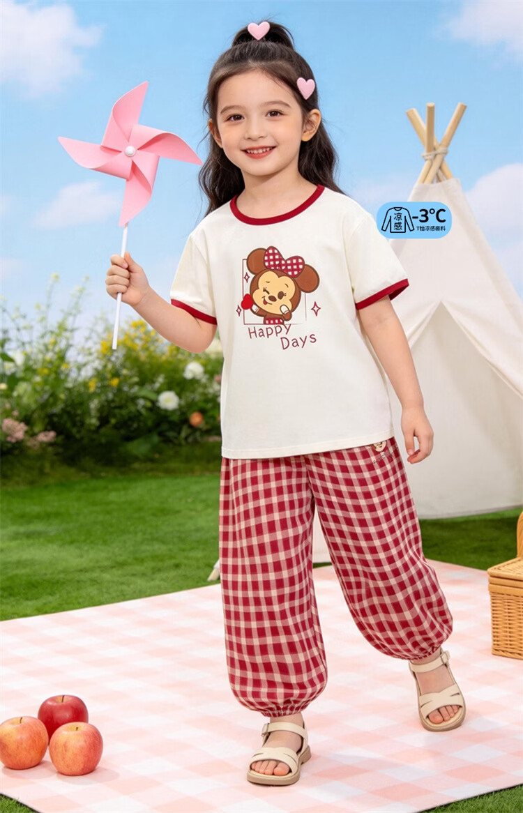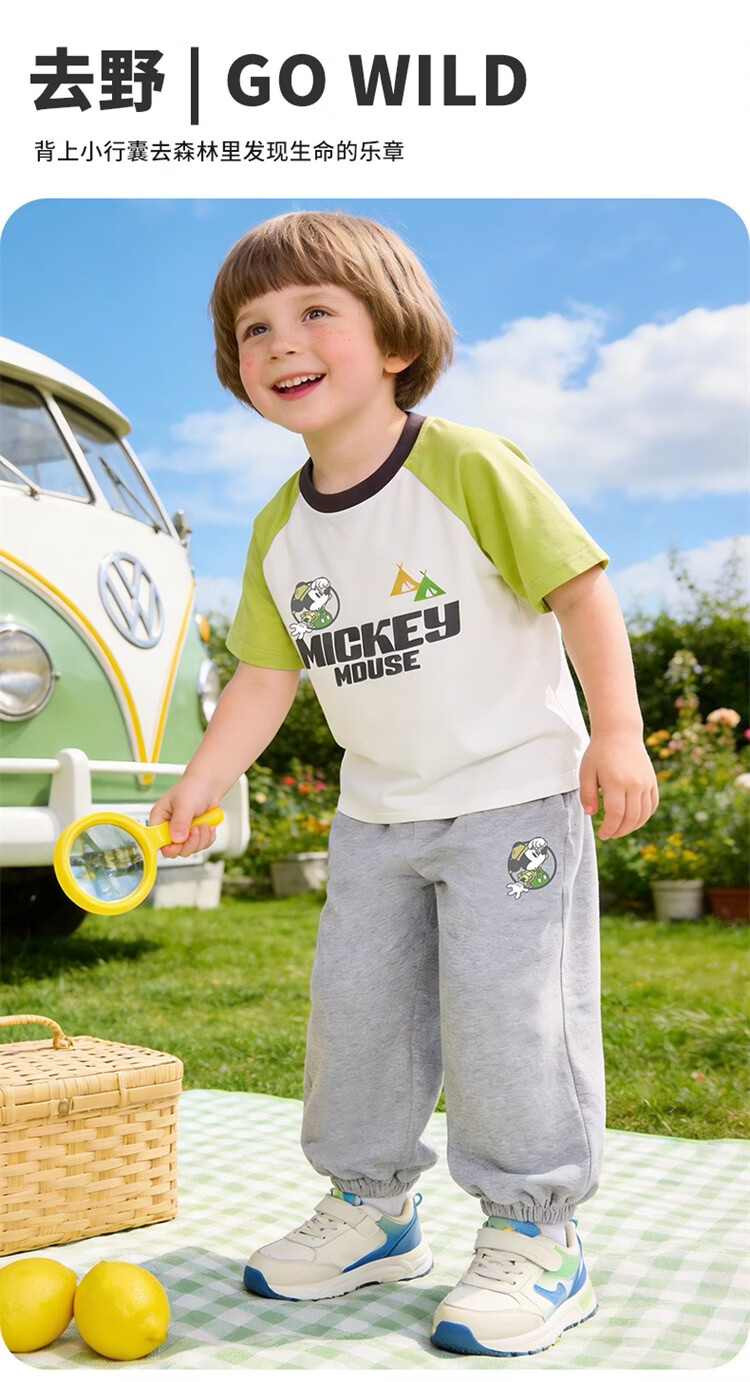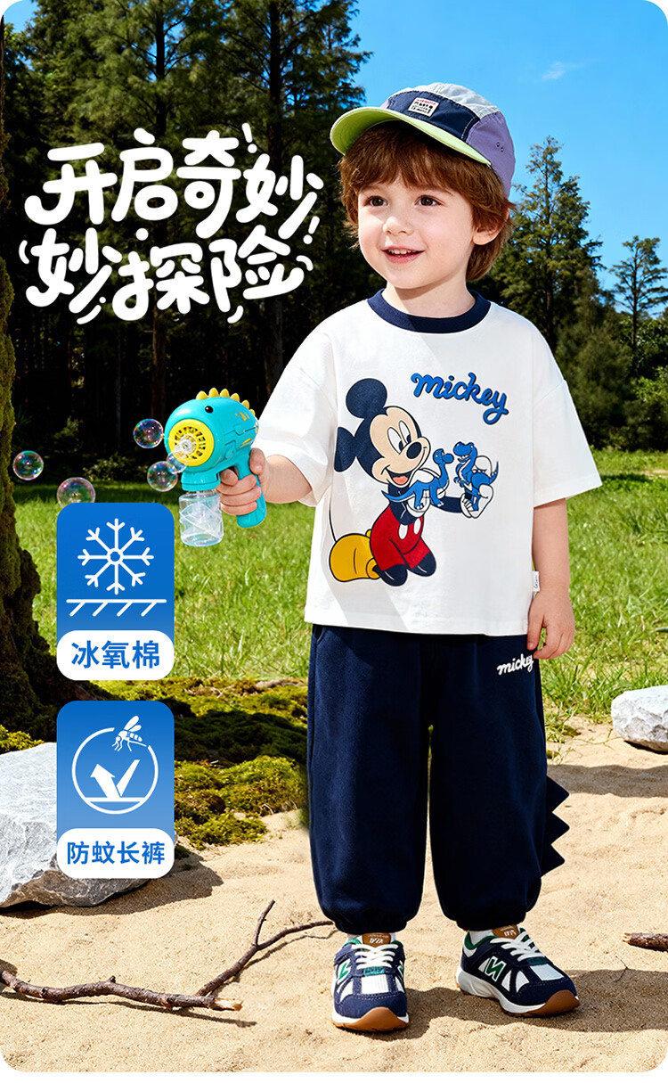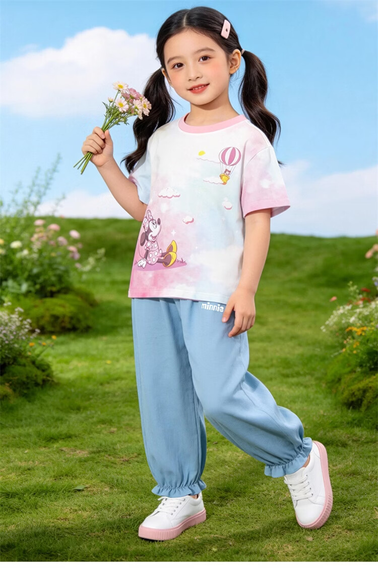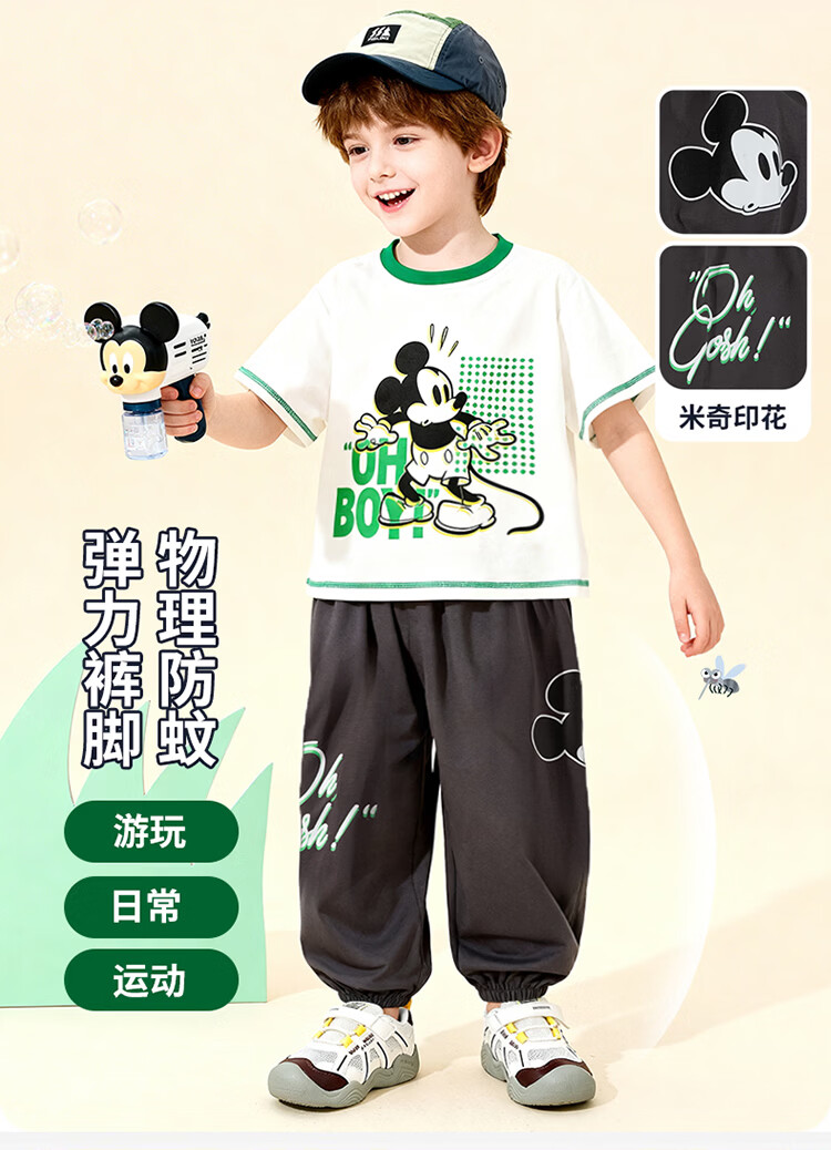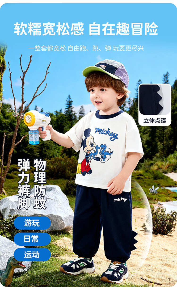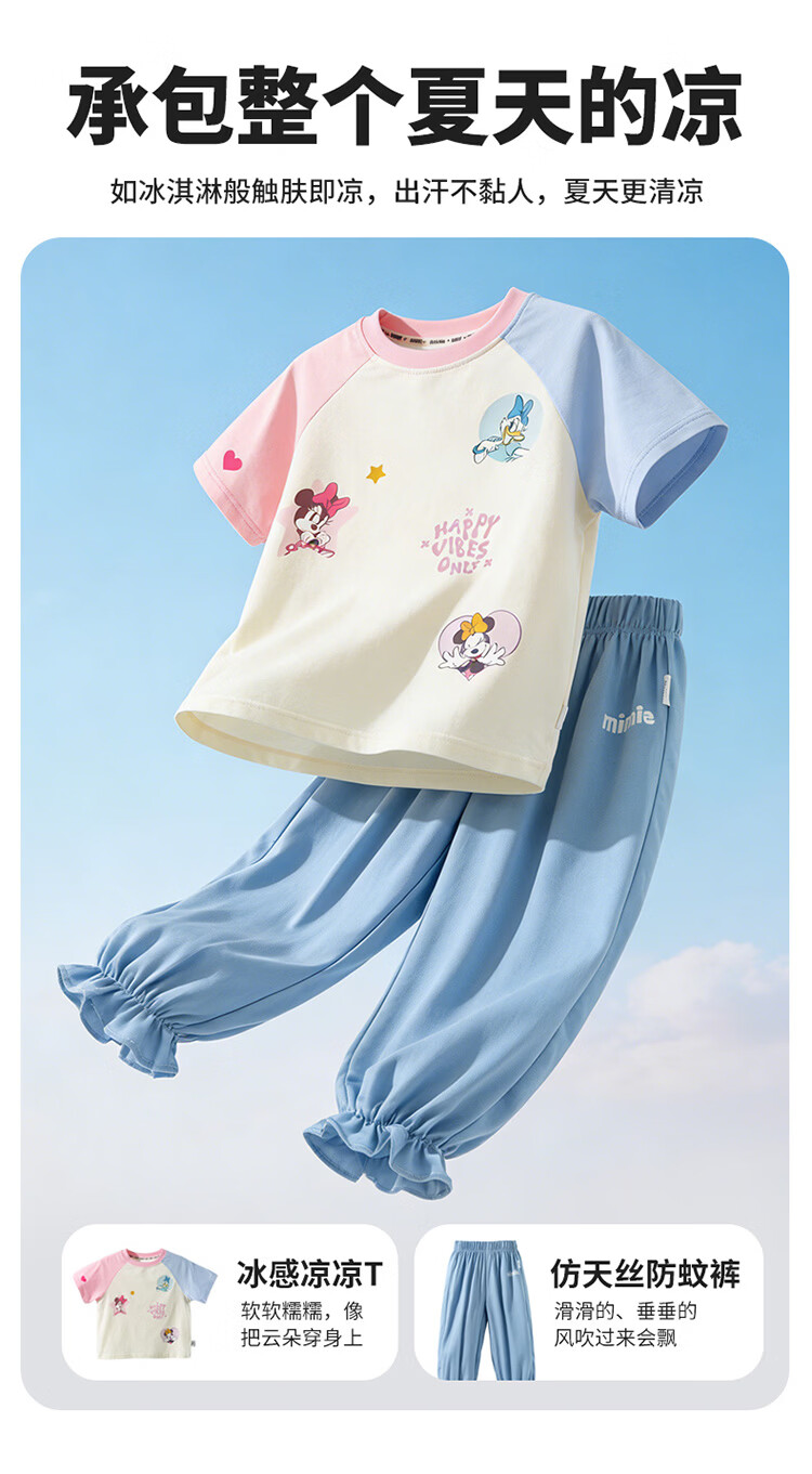 迪士尼儿童舒适凉感休闲短袖长裤套装夏季新款男女童甜美潮流运动套装 碳灰插肩袖套装 100 (建议2-3岁身高90-100cm)