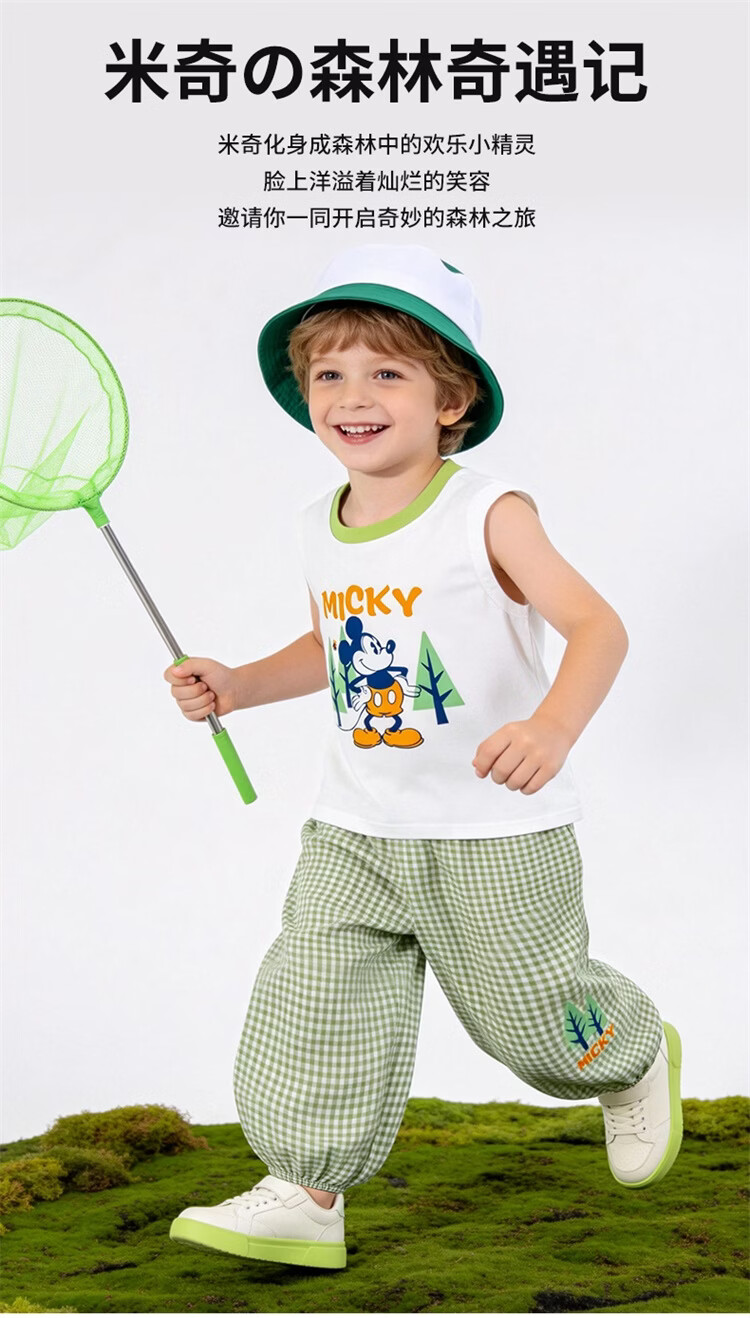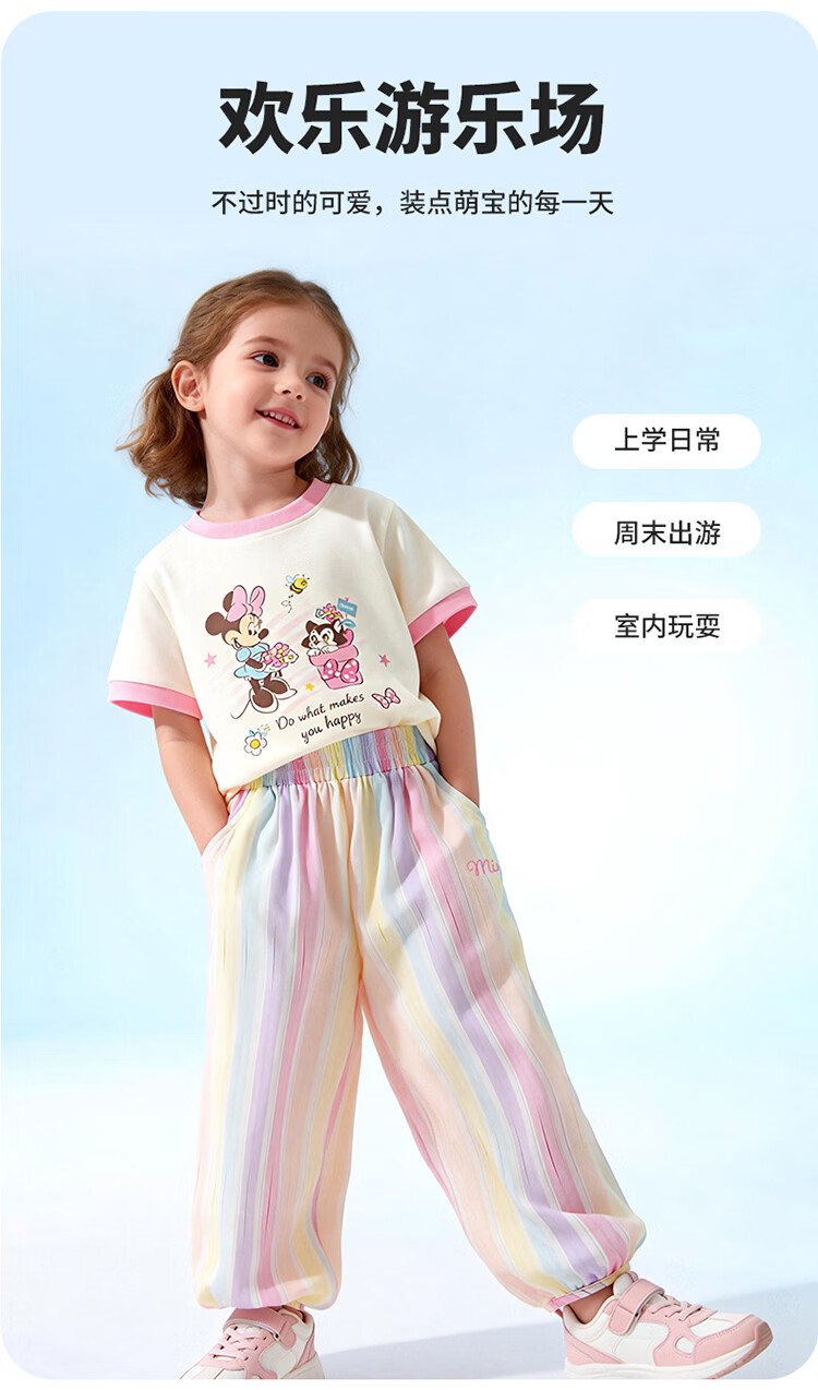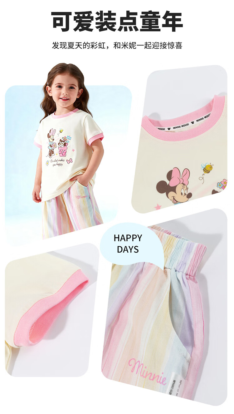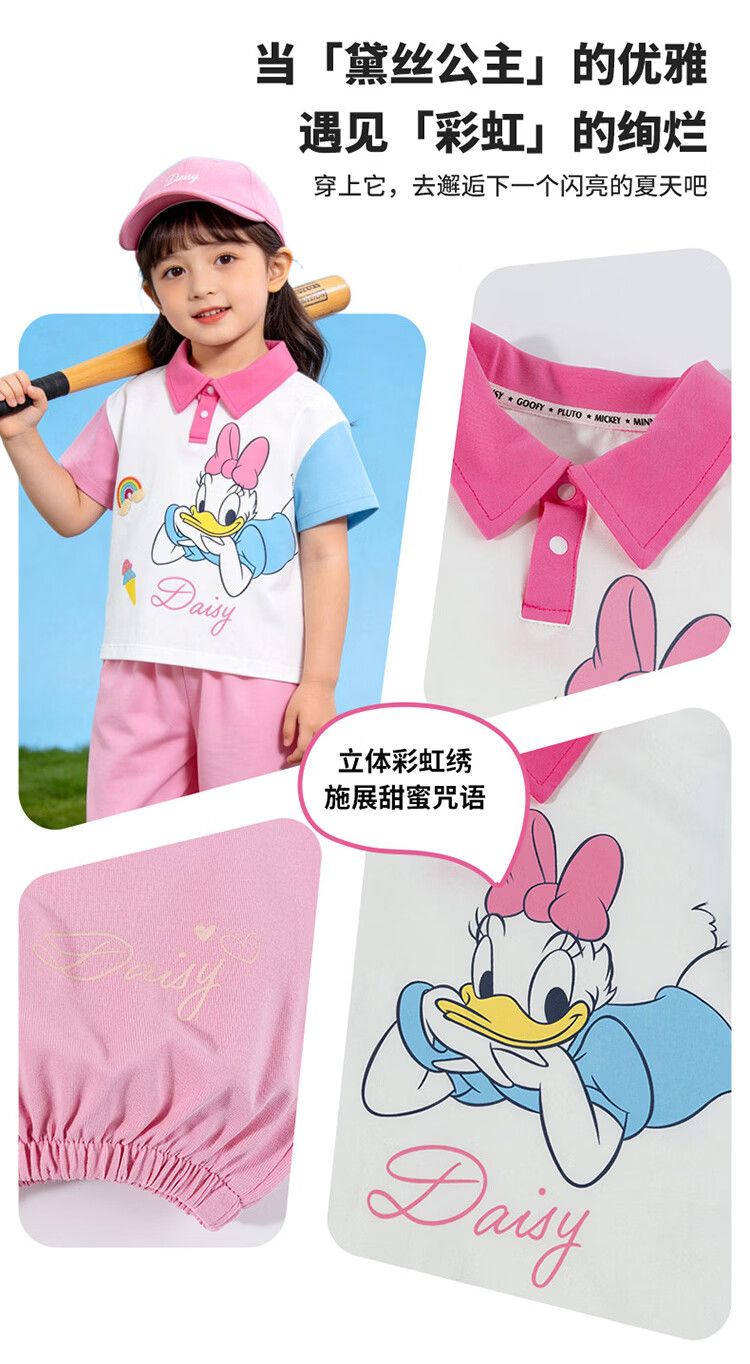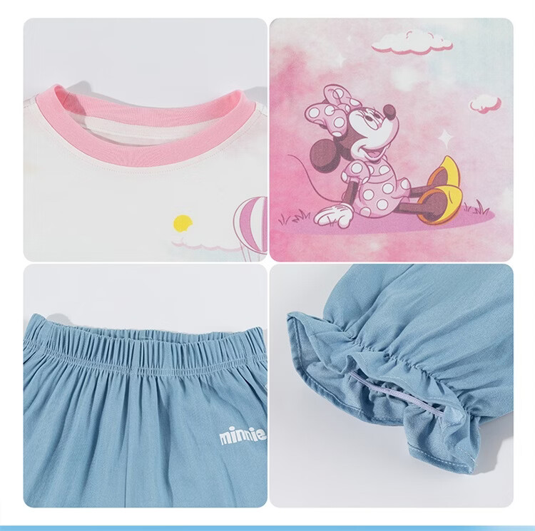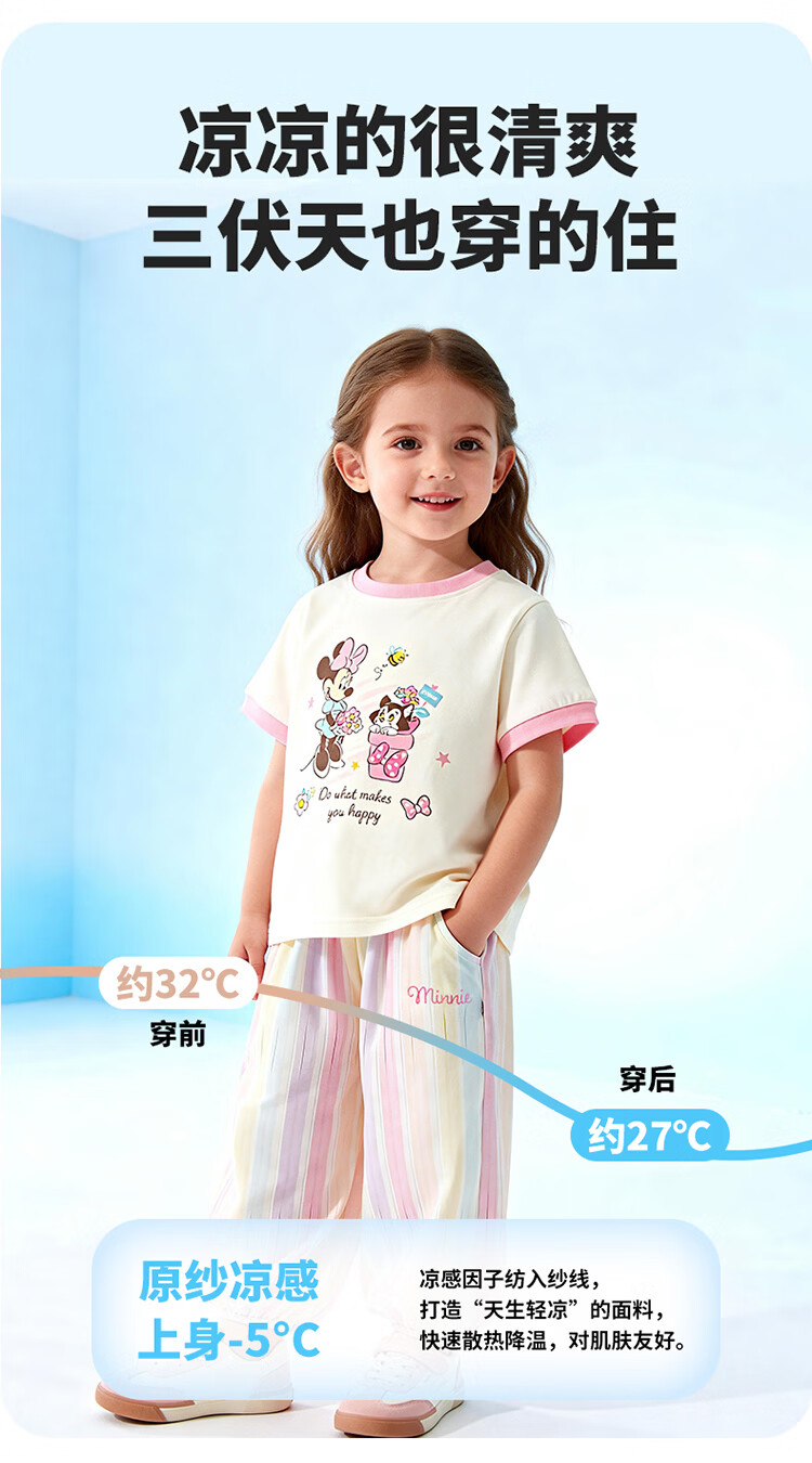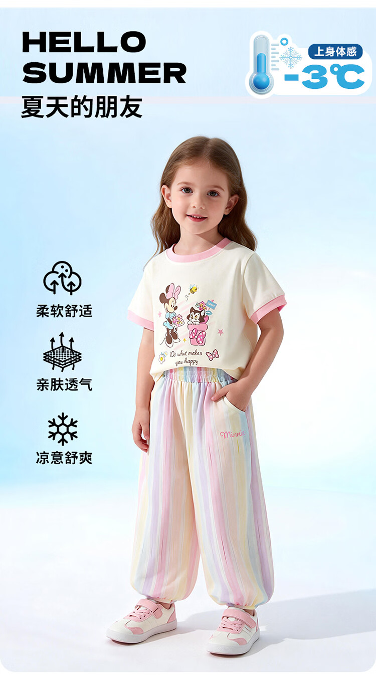 迪士尼儿童舒适凉感休闲短袖长裤套装夏季新款男女童甜美潮流运动套装 碳灰插肩袖套装 100 (建议2-3岁身高90-100cm)