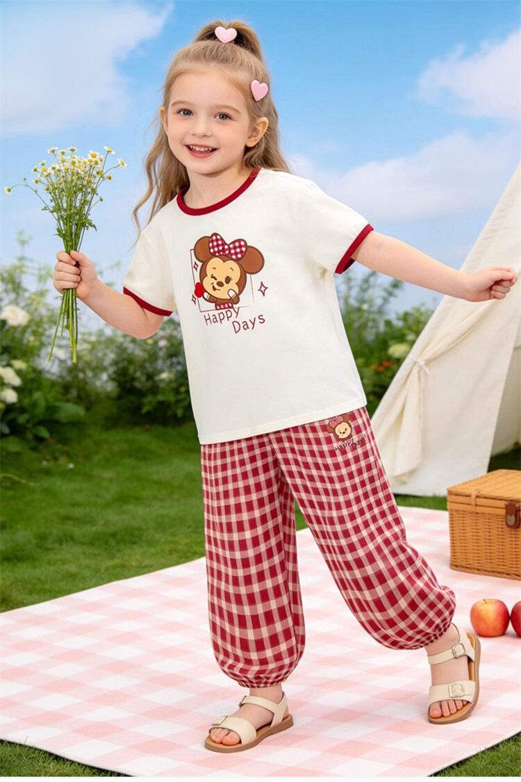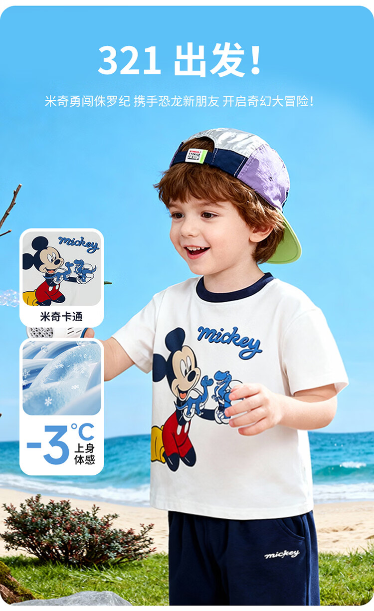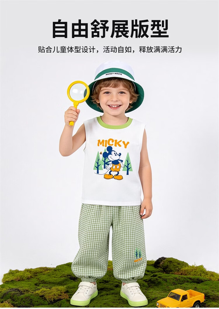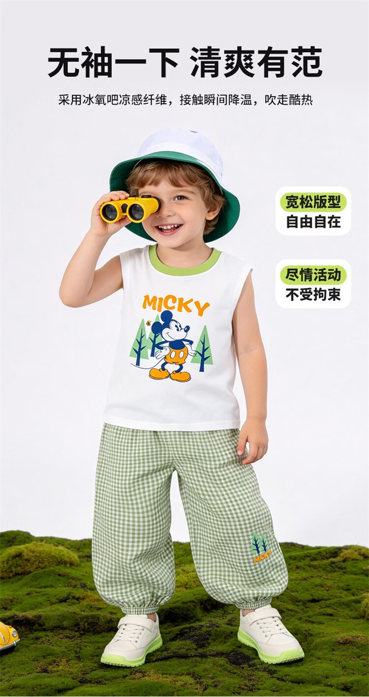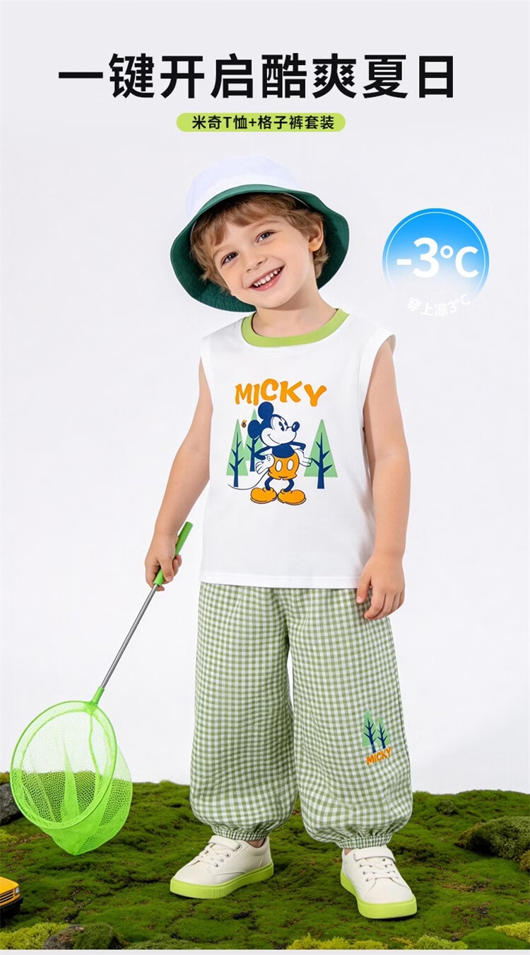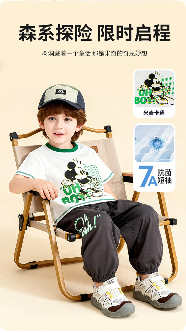 迪士尼儿童舒适凉感休闲短袖长裤套装夏季新款男女童甜美潮流运动套装 碳灰插肩袖套装 100 (建议2-3岁身高90-100cm)