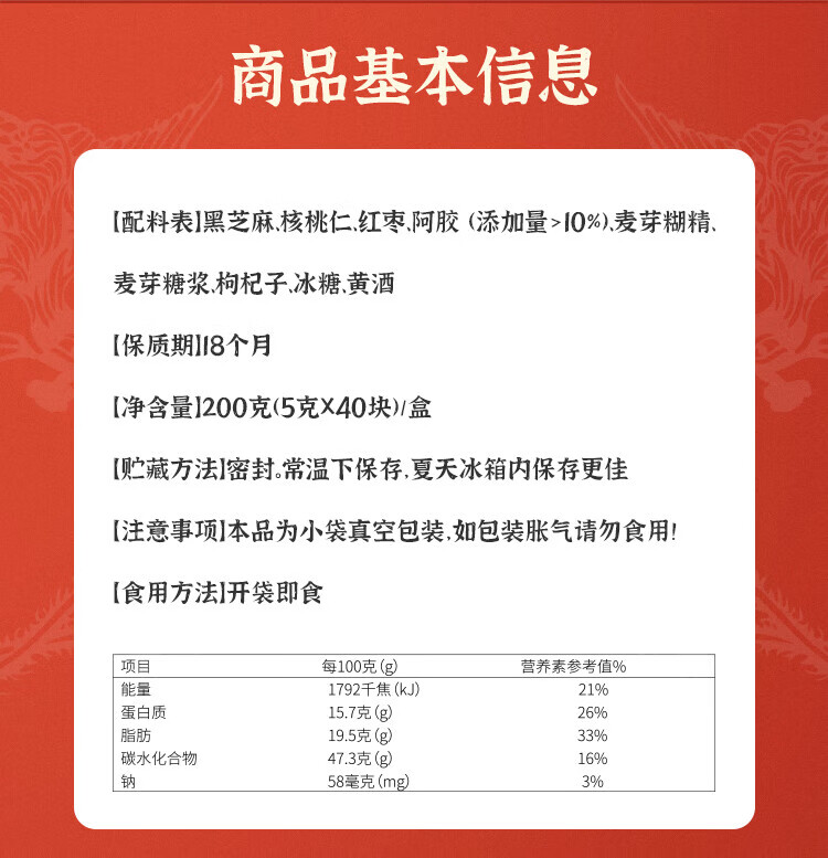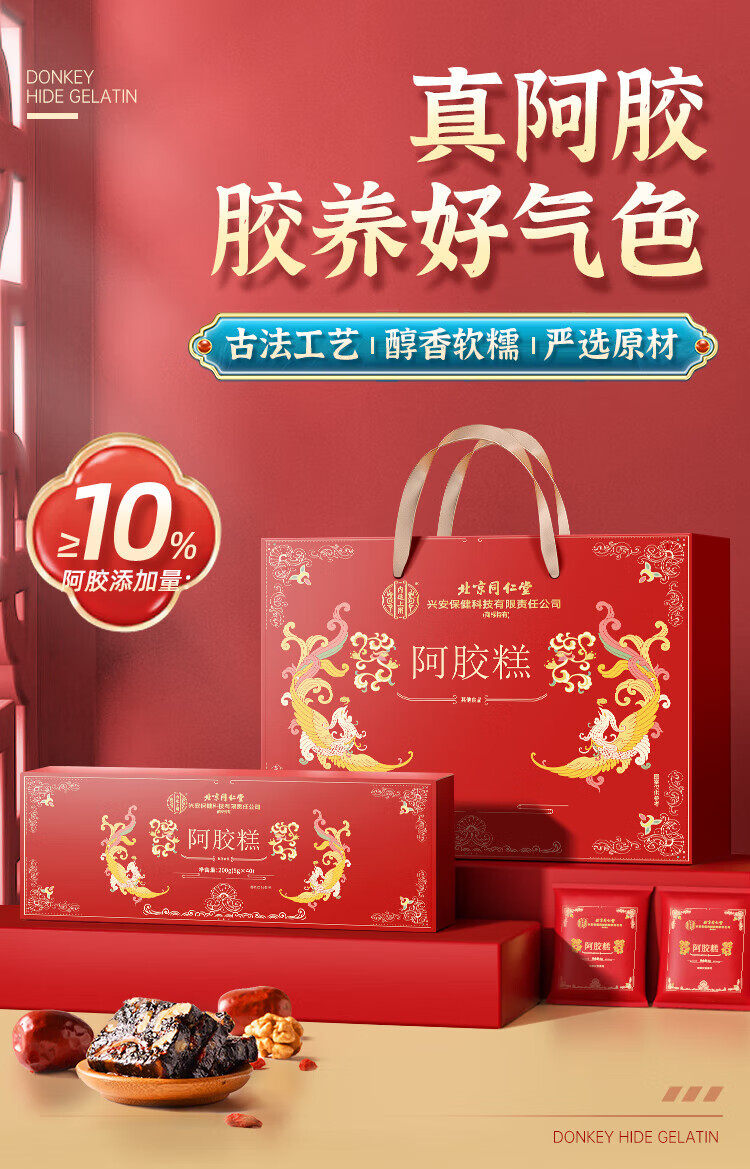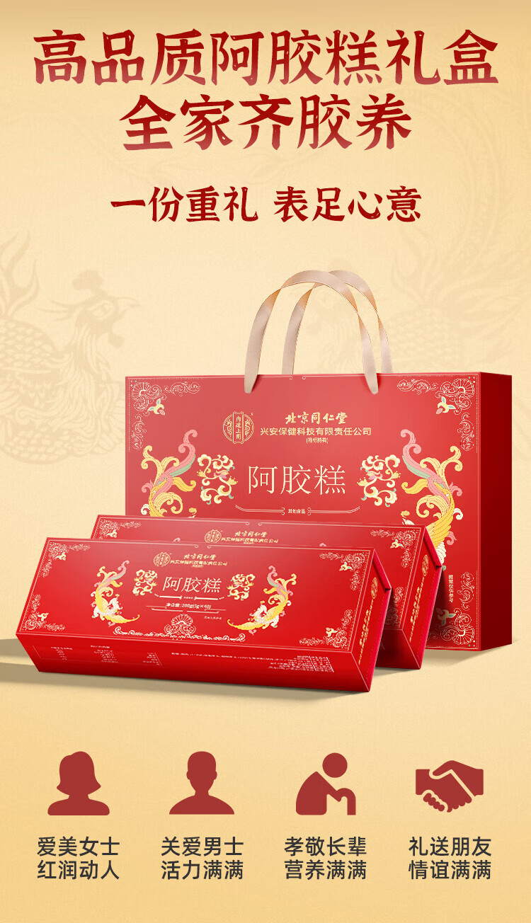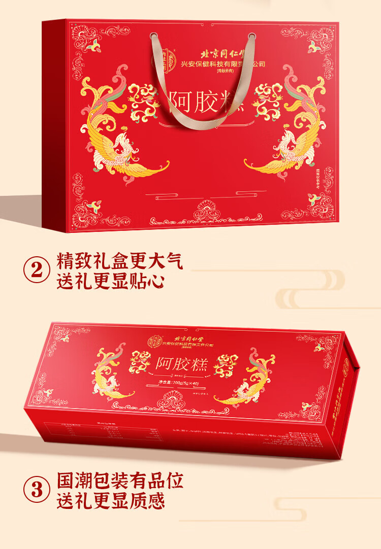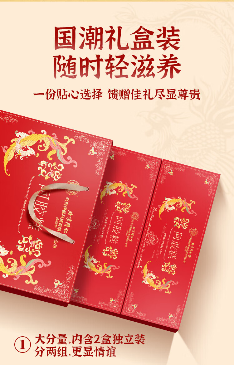 内廷上用北京同仁堂阿胶糕 阿胶礼盒 年货礼盒礼品送长辈 女性滋补营养品 【 40片*2盒 】