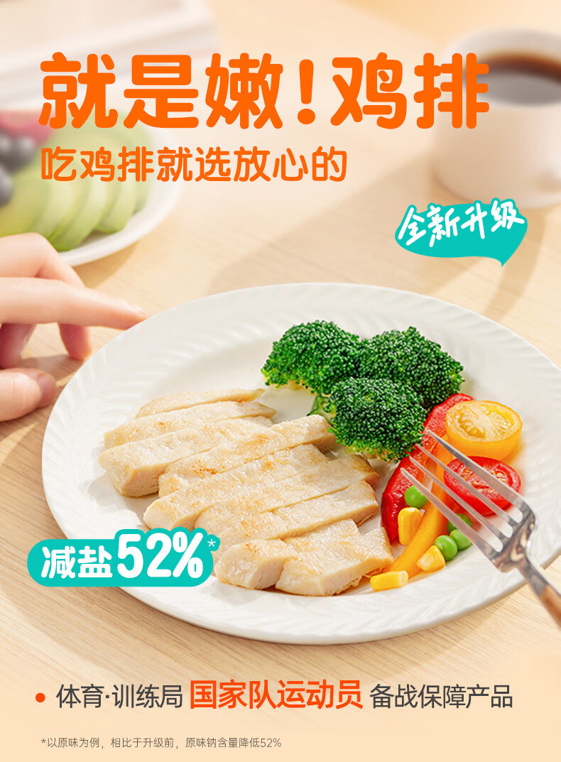 优形(ishape)【京东速发】就是嫩鸡排鸡胸肉健身低脂代餐生鲜健康轻食餐嫩鸡排 低脂橄榄油嫩鸡排原味100g*20袋