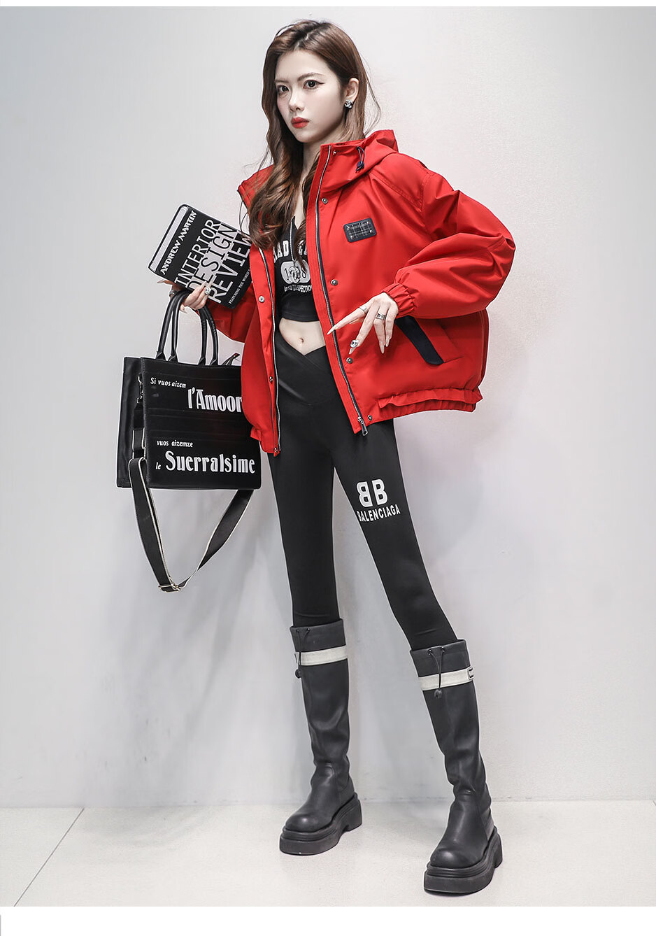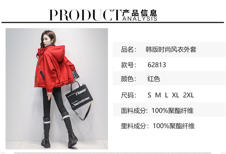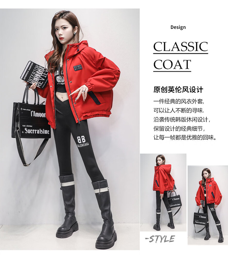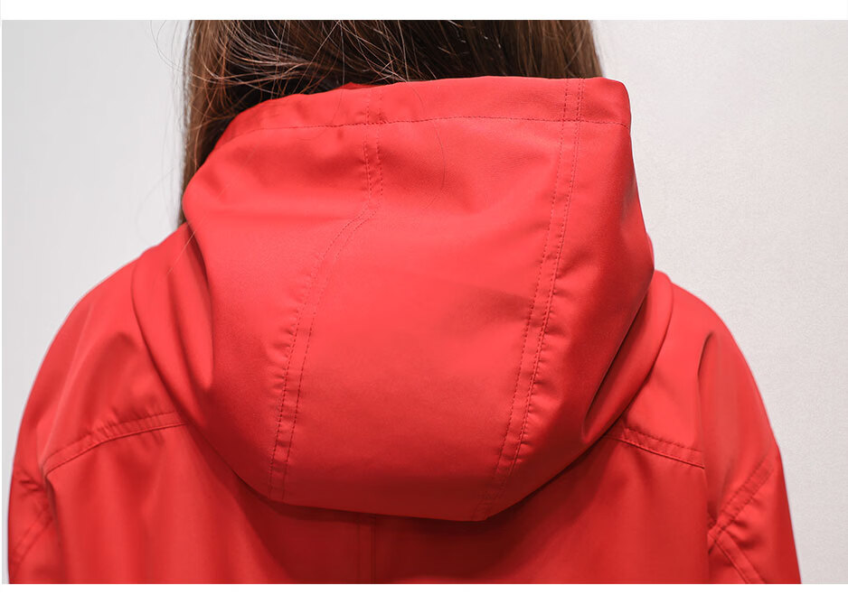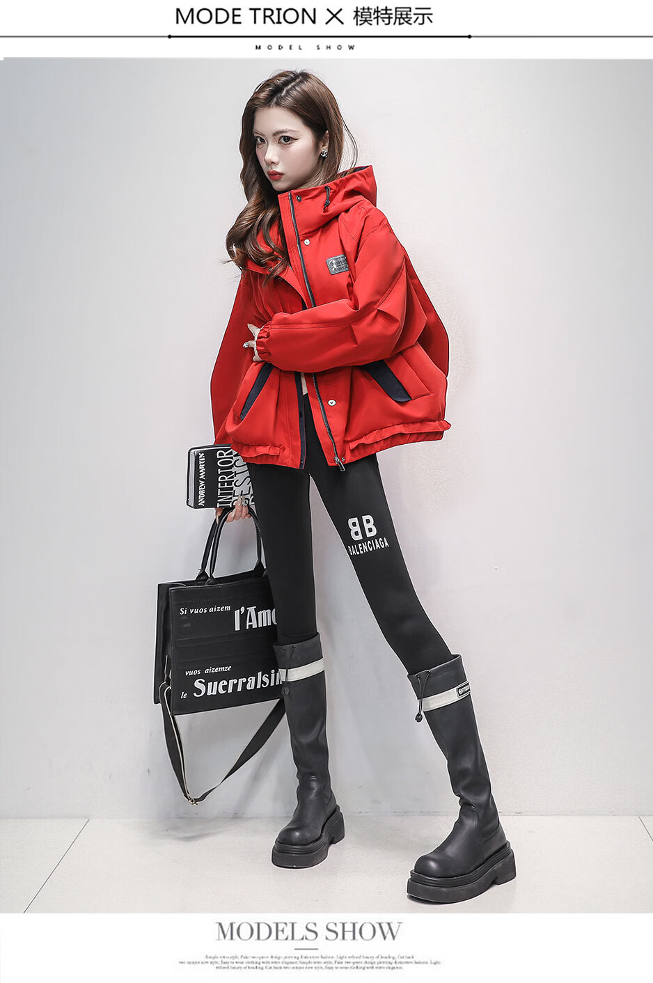 靓丽芭娜(LIANGLIBANA)2026春季新款小个子短款外套女连帽夹克韩版宽松休闲红色风衣外套 红色 薄款 L