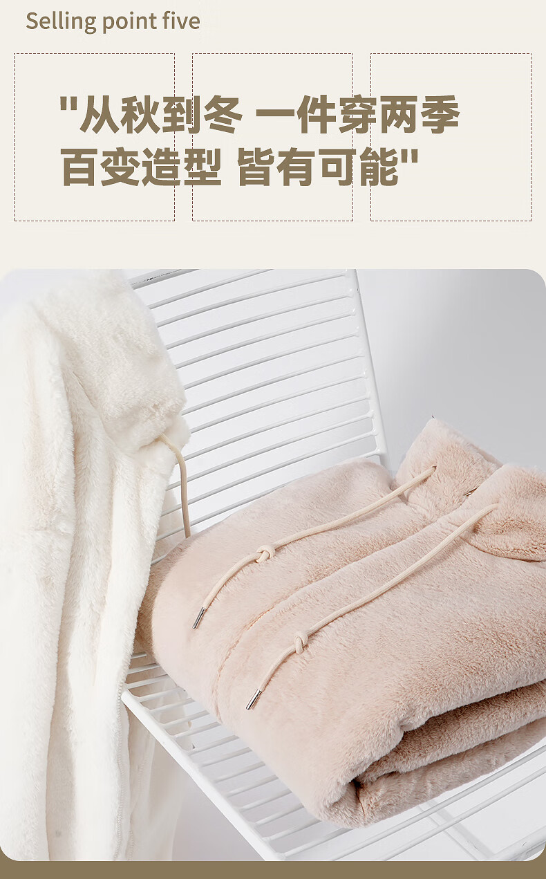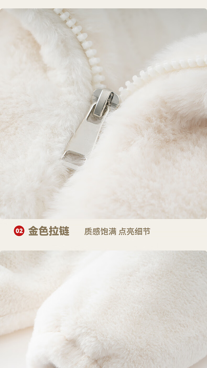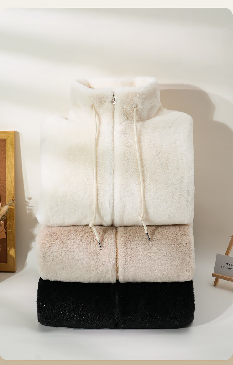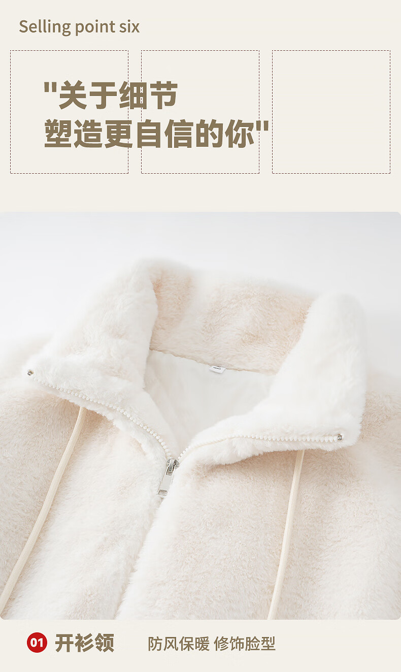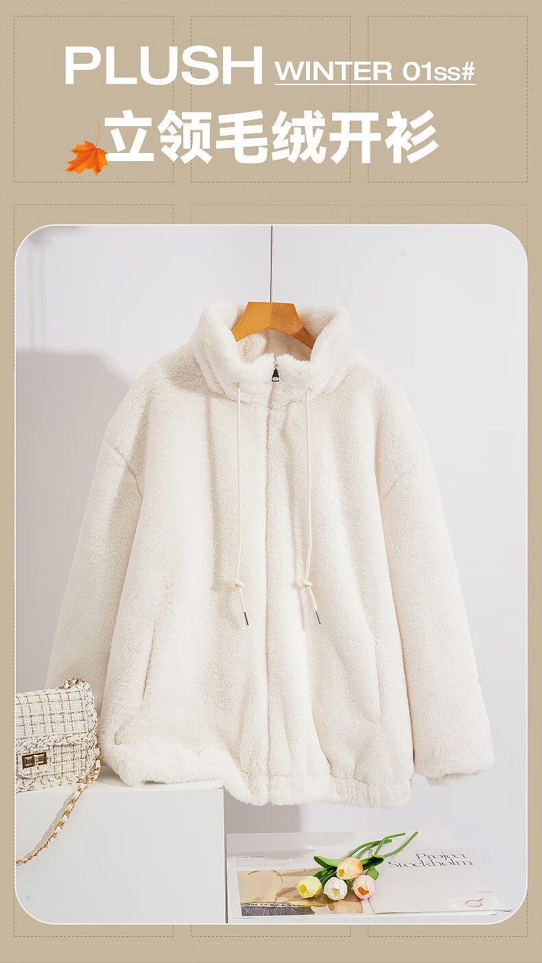 真维斯(Jeanswest)立领毛绒开衫外套女2025新款爆款秋冬季加绒卫衣加厚女装绒感上衣 米色 均码 90-130斤