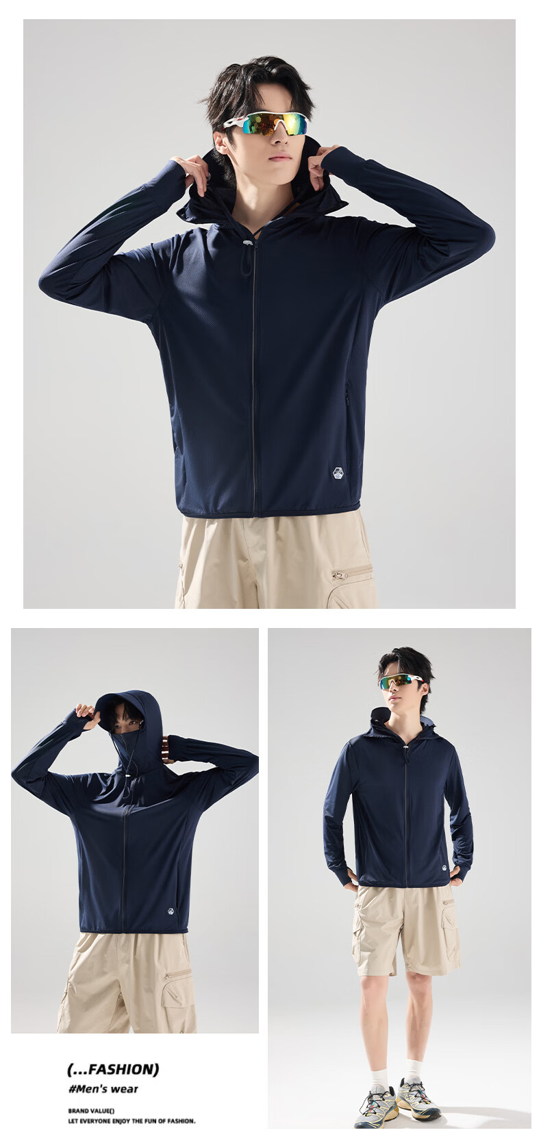 BEUNASLOER夏季新款防晒衣男女冰丝防晒服男防紫外线大帽檐防晒外套 男黑色 M