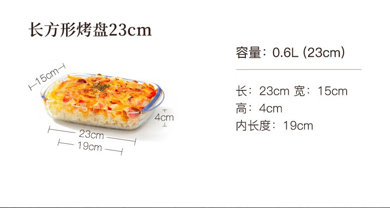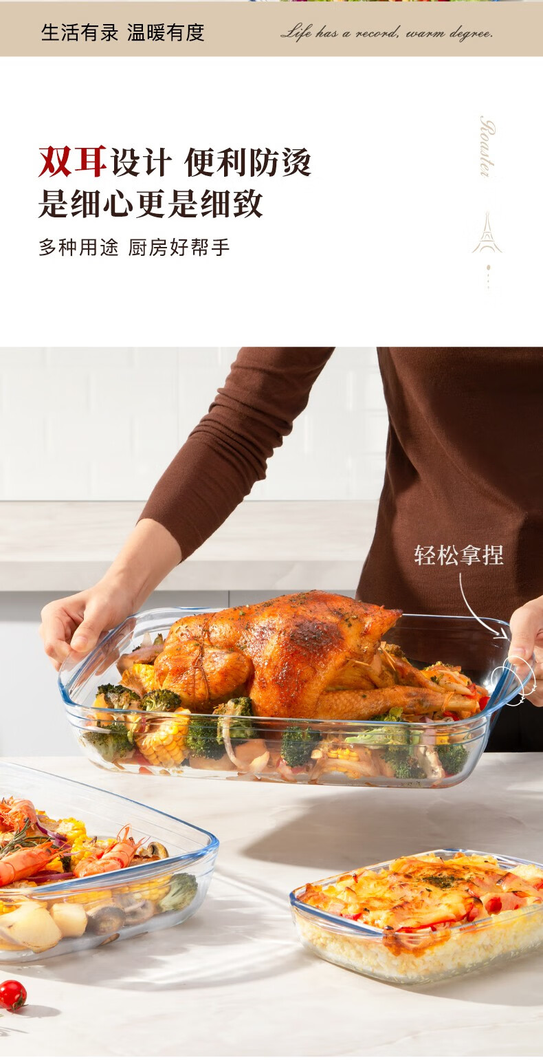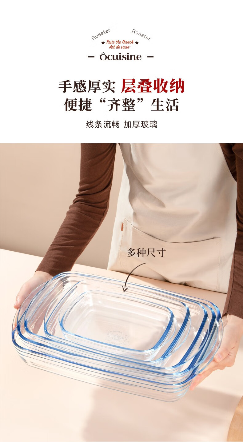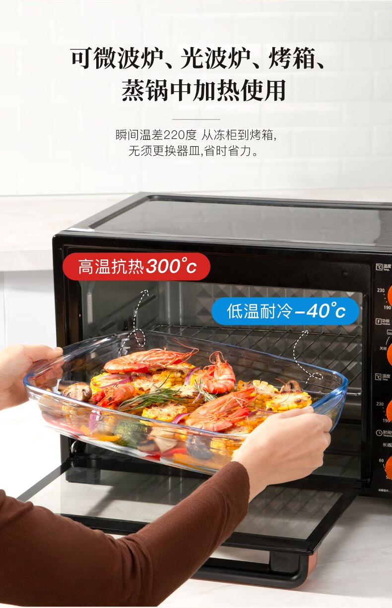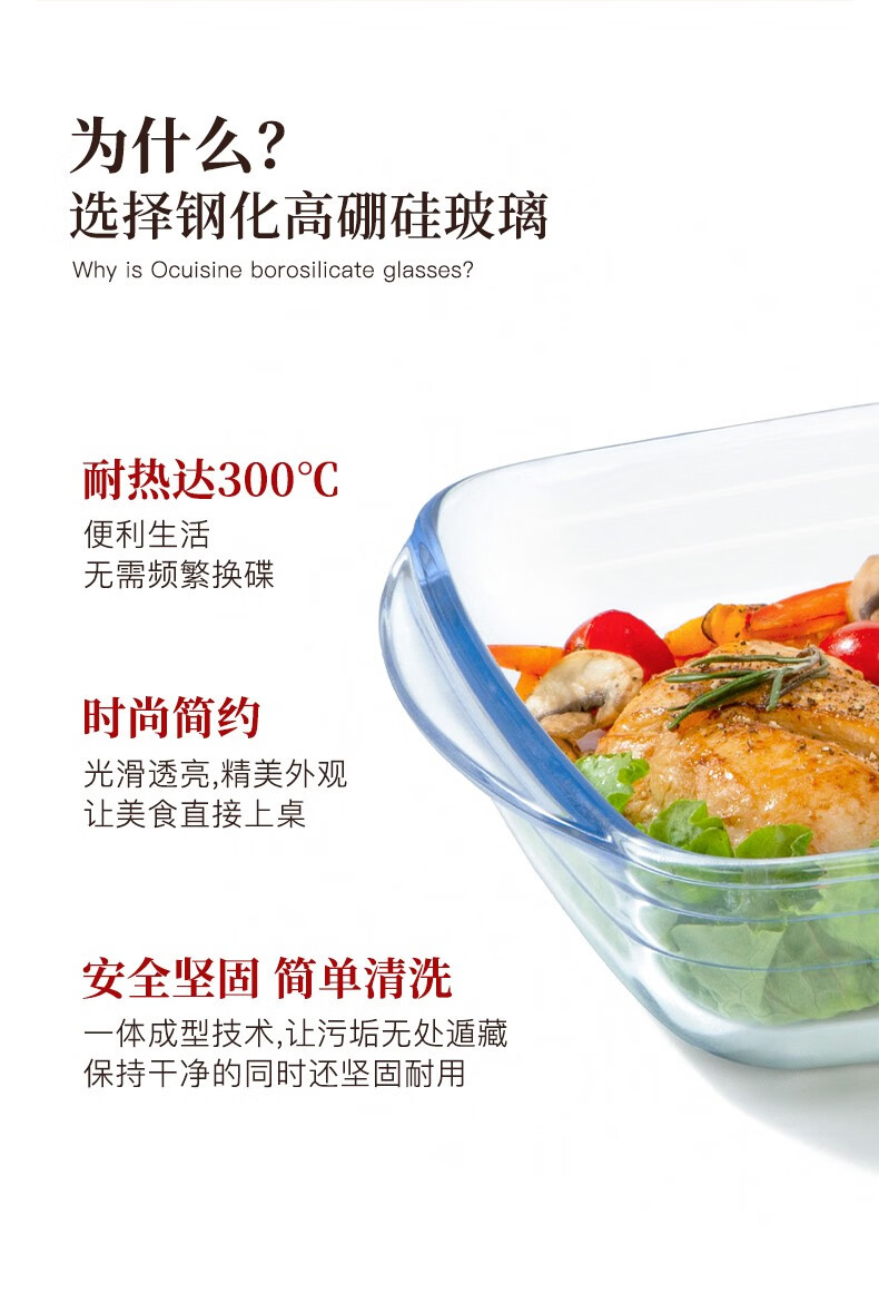 欧贵厨法国进口高硼硅玻璃烤盘烤箱专用托盘蒸盘烘焙微波炉饭盒鱼盘餐具 23cm【1.1L带盖】长方形烤盘