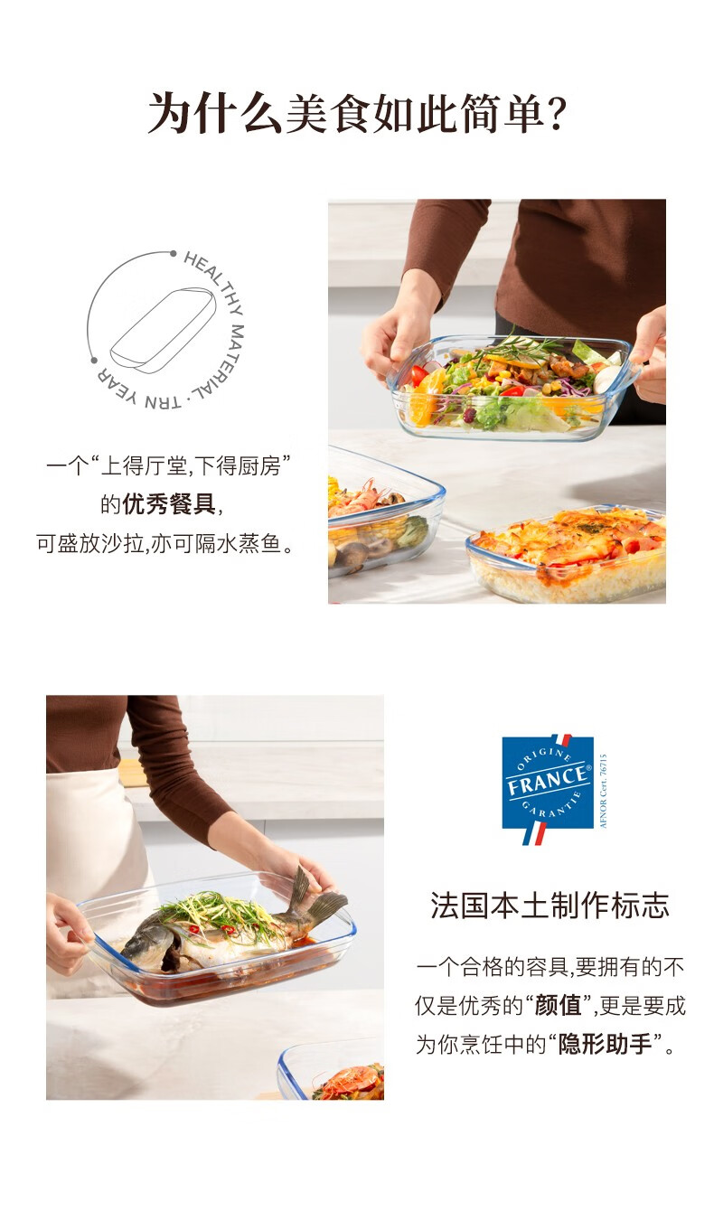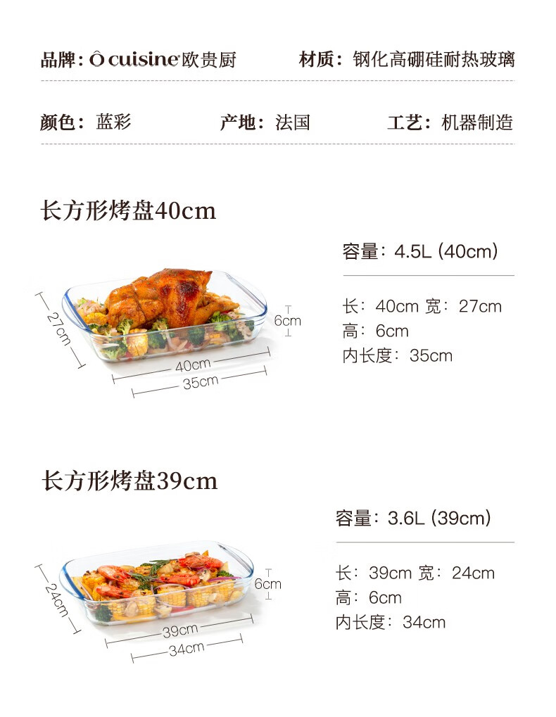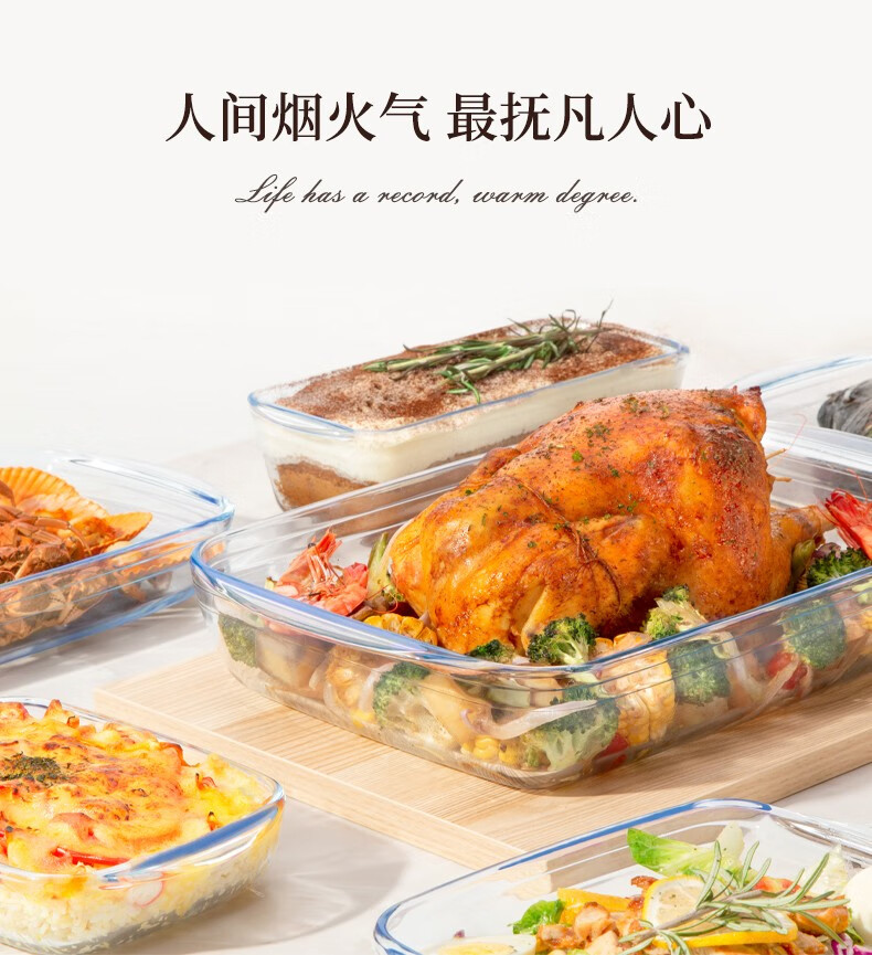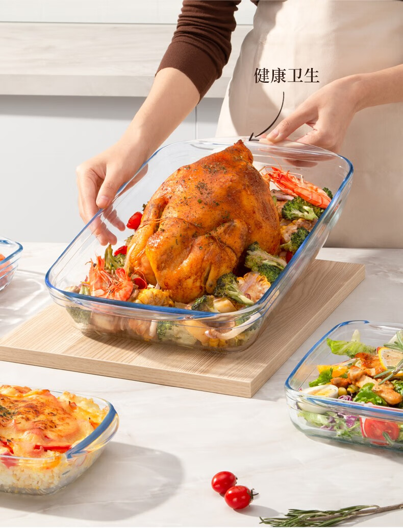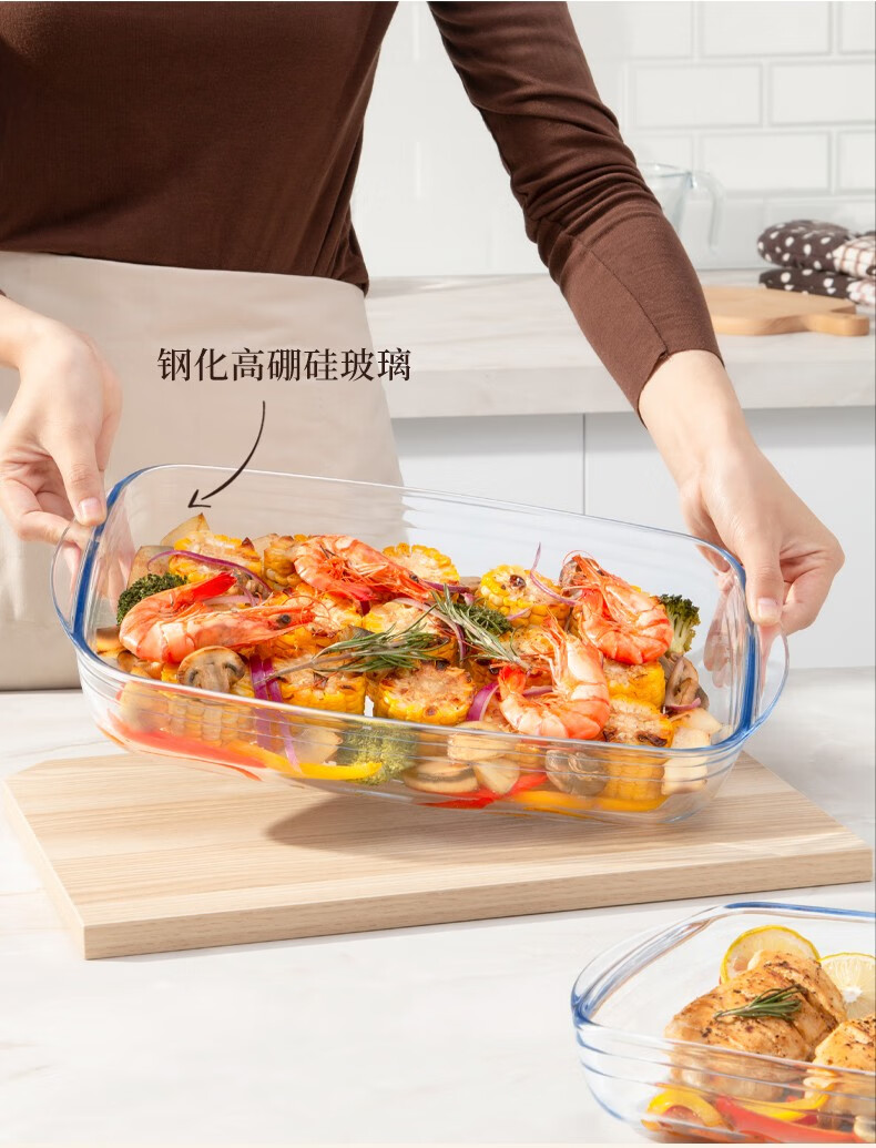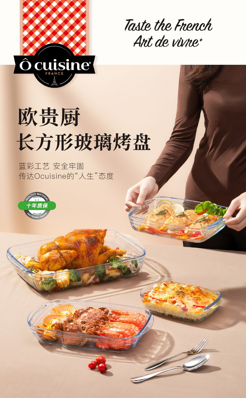 欧贵厨法国进口高硼硅玻璃烤盘烤箱专用托盘蒸盘烘焙微波炉饭盒鱼盘餐具 23cm【1.1L带盖】长方形烤盘