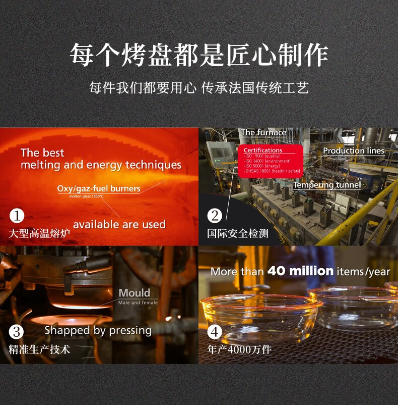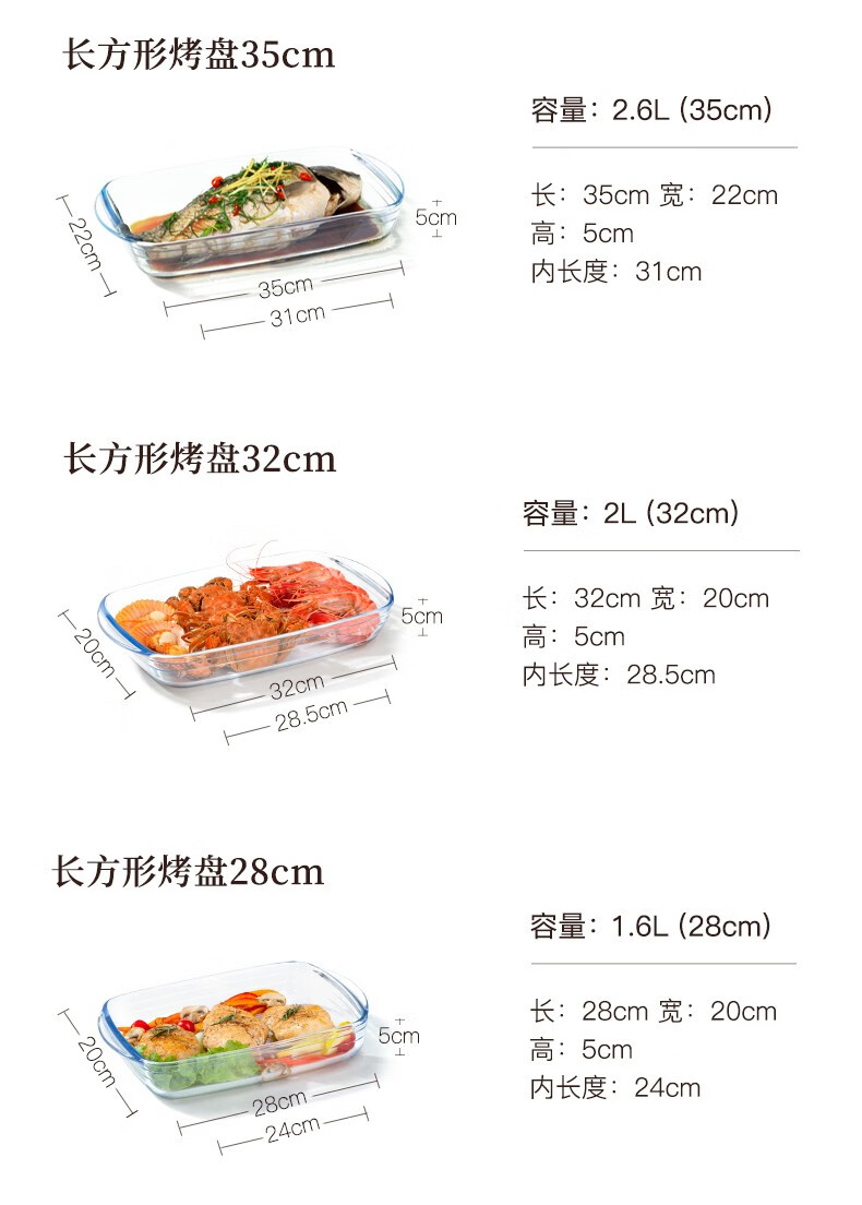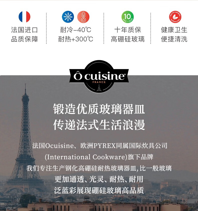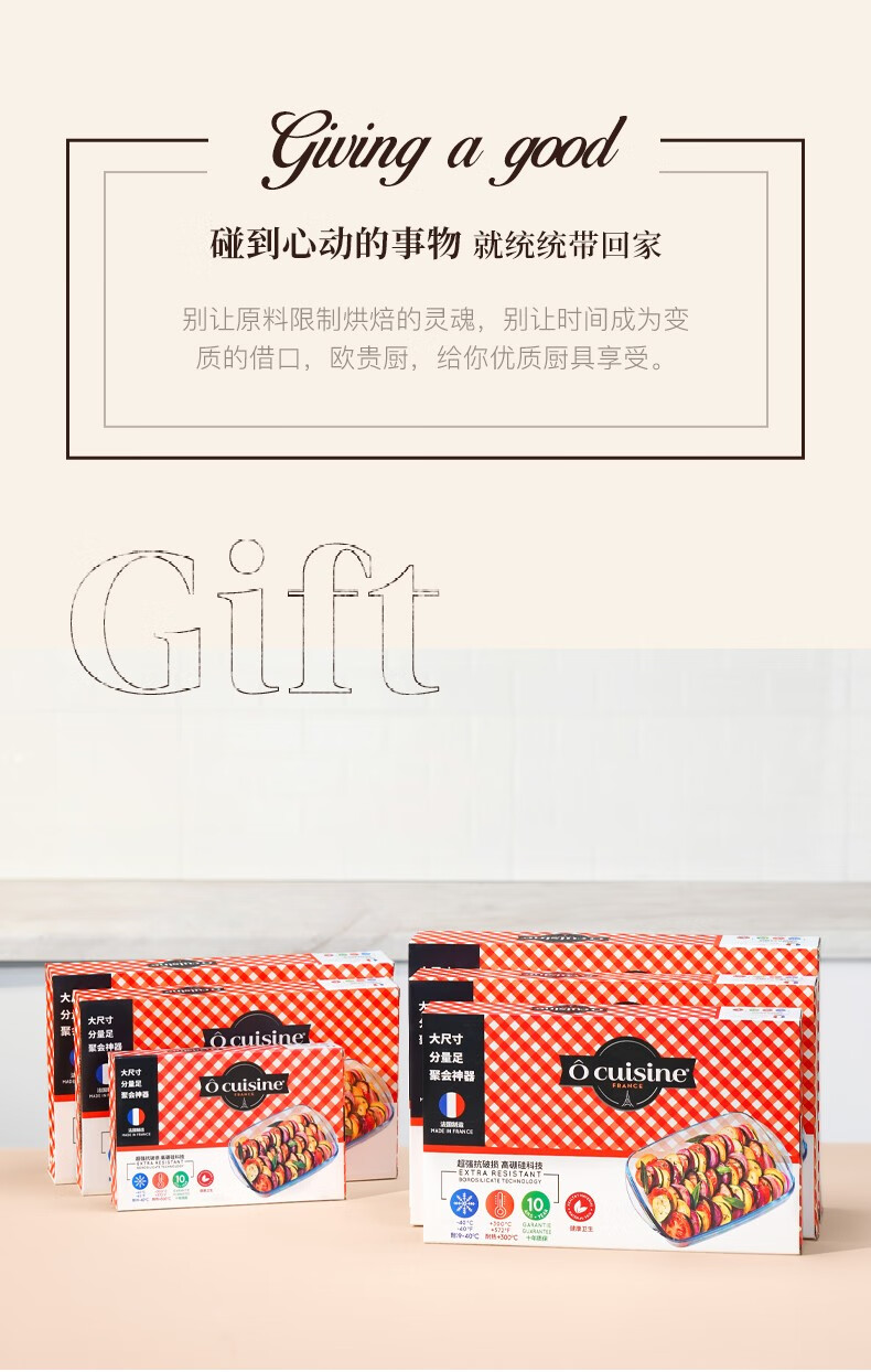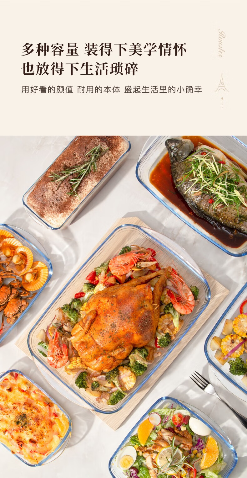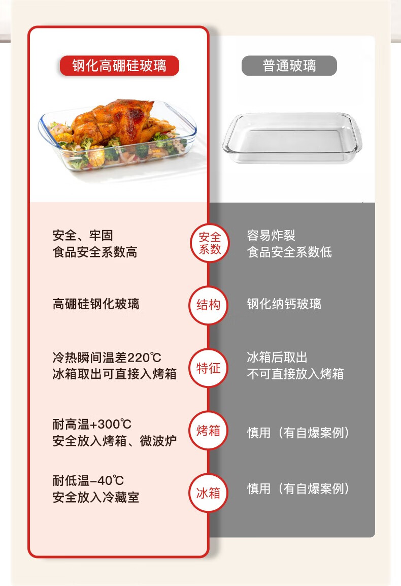 欧贵厨法国进口高硼硅玻璃烤盘烤箱专用托盘蒸盘烘焙微波炉饭盒鱼盘餐具 23cm【1.1L带盖】长方形烤盘