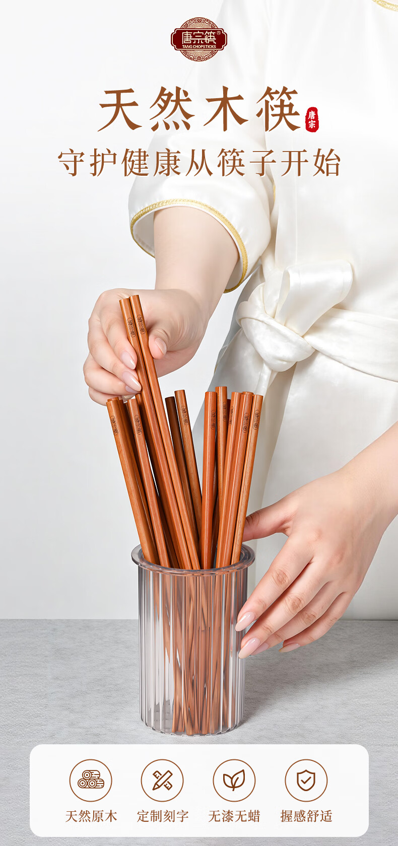 唐宗筷进口花梨木筷子家用高档无漆无蜡食品级实木2026年新款中式餐具 【进口花梨木-天然百年龄】年年有余-10双装