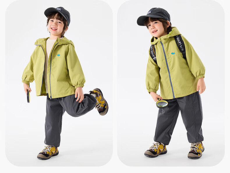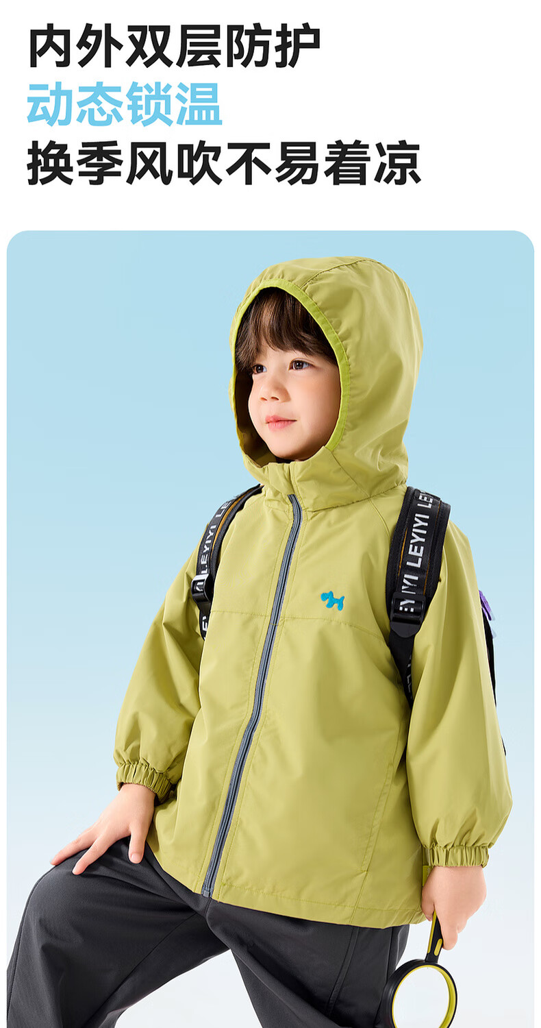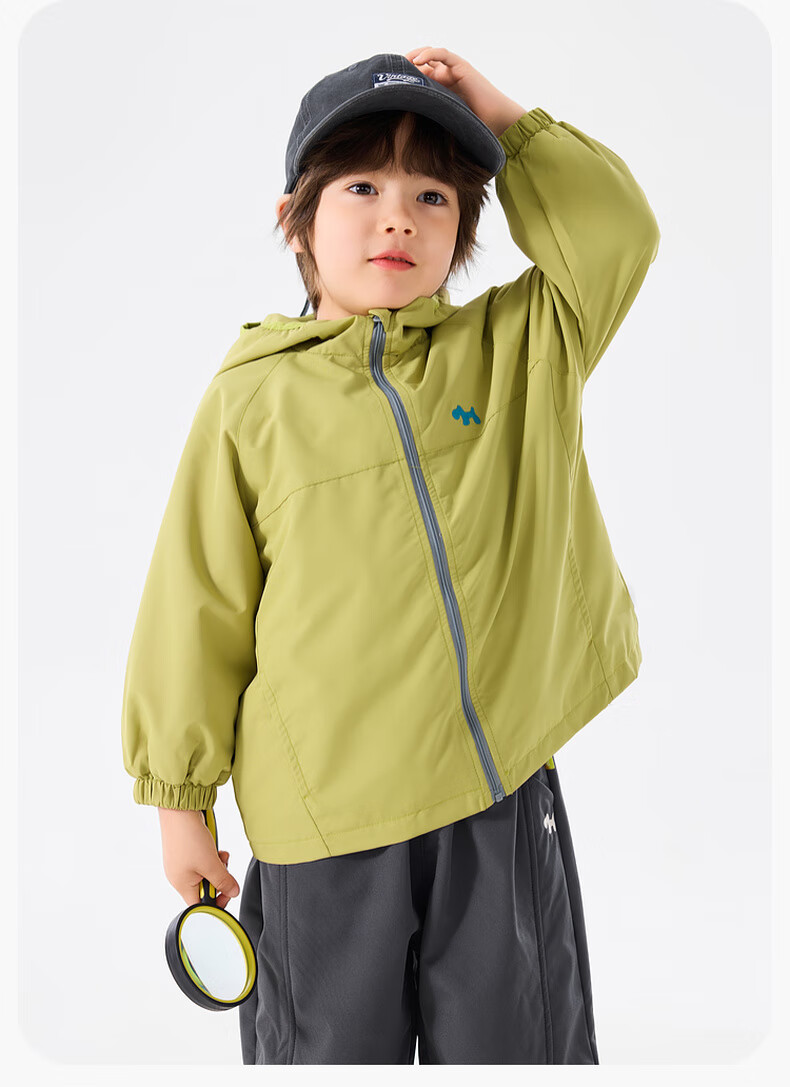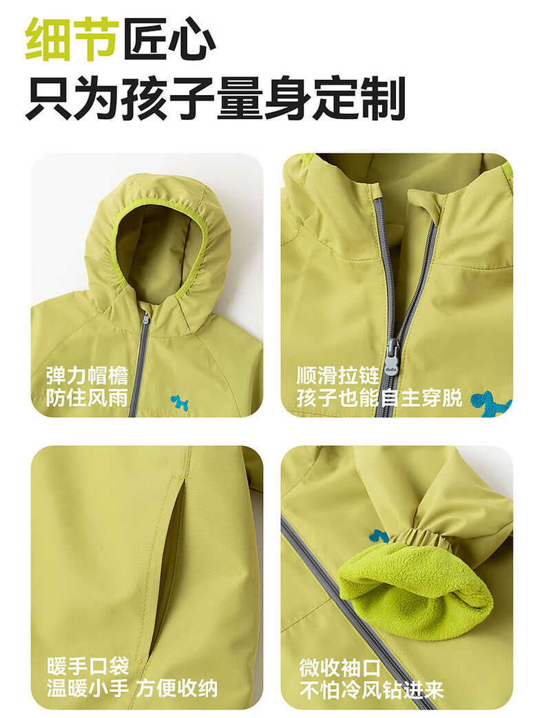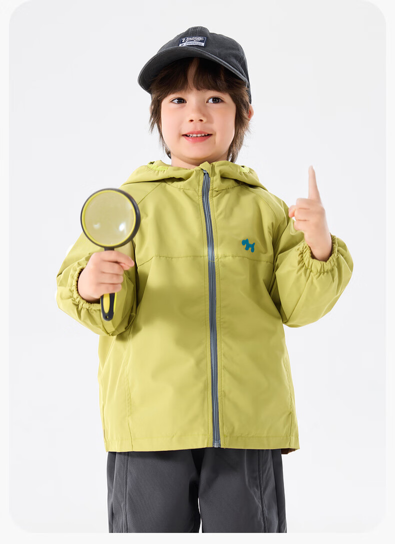 嘟嘟家宝宝外套连帽卡通春秋男童梭织衣服休闲户外春季女童拉链上衣洋气 黄绿色 110