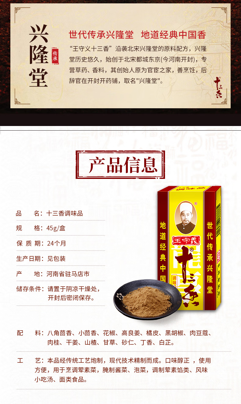 王守义十三香调味料45g/盒实惠装商用大包餐饮做菜调料做饭调味料 45g王守义十三香*1盒