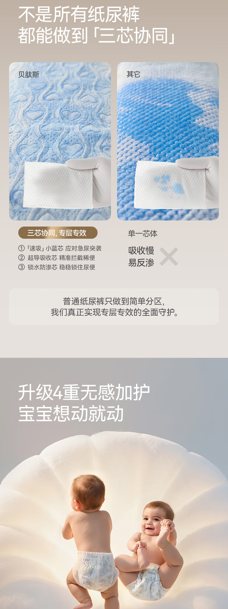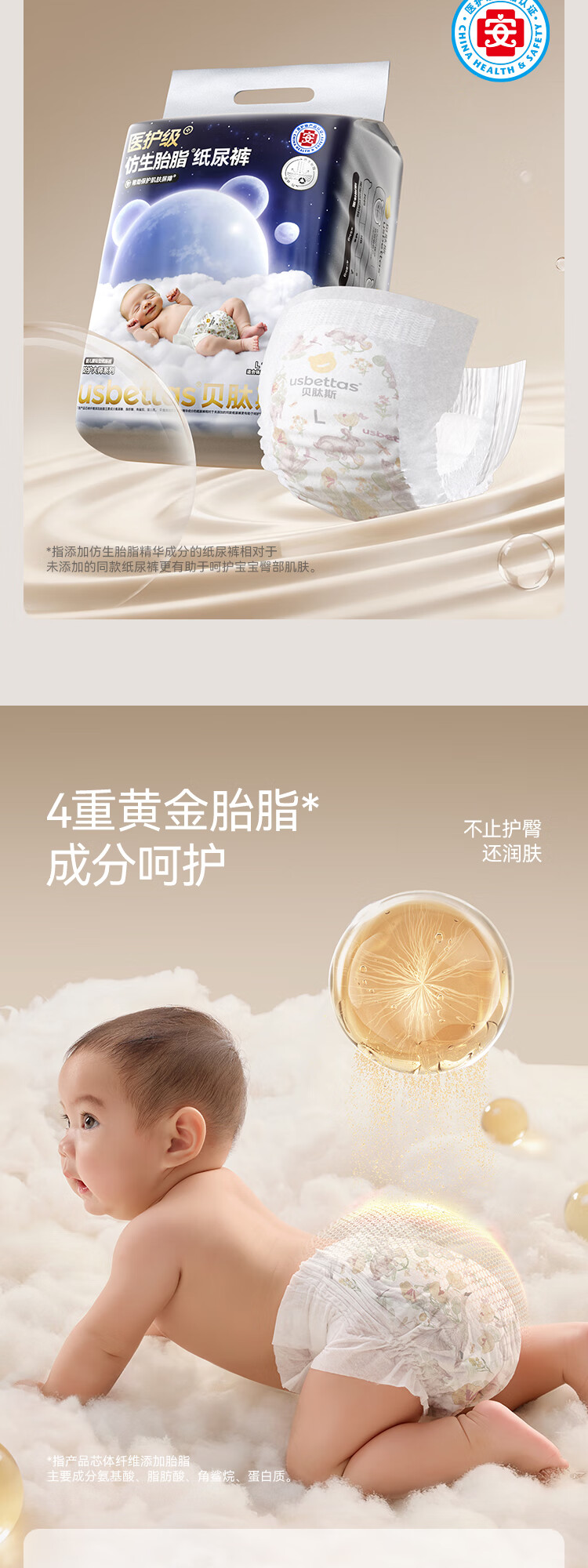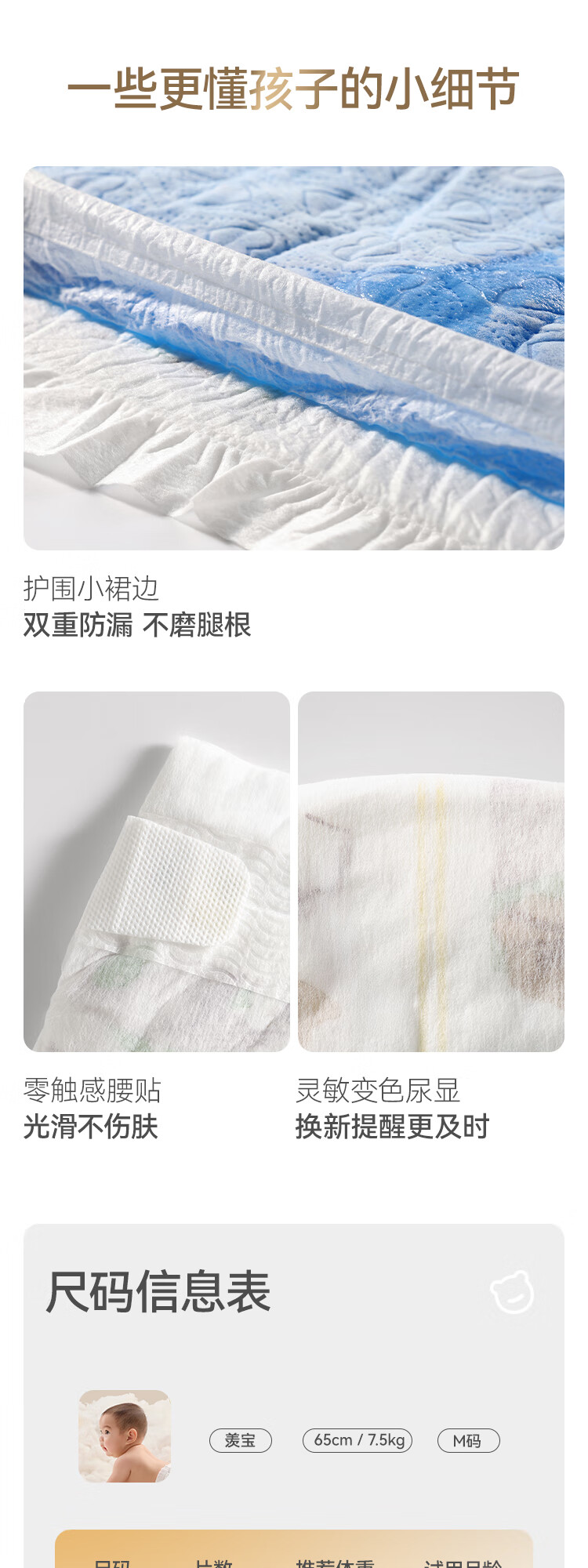贝肽斯仿生胎脂皮纸尿裤试用装男女宝宝尿不湿纸尿裤M码透气大吸量