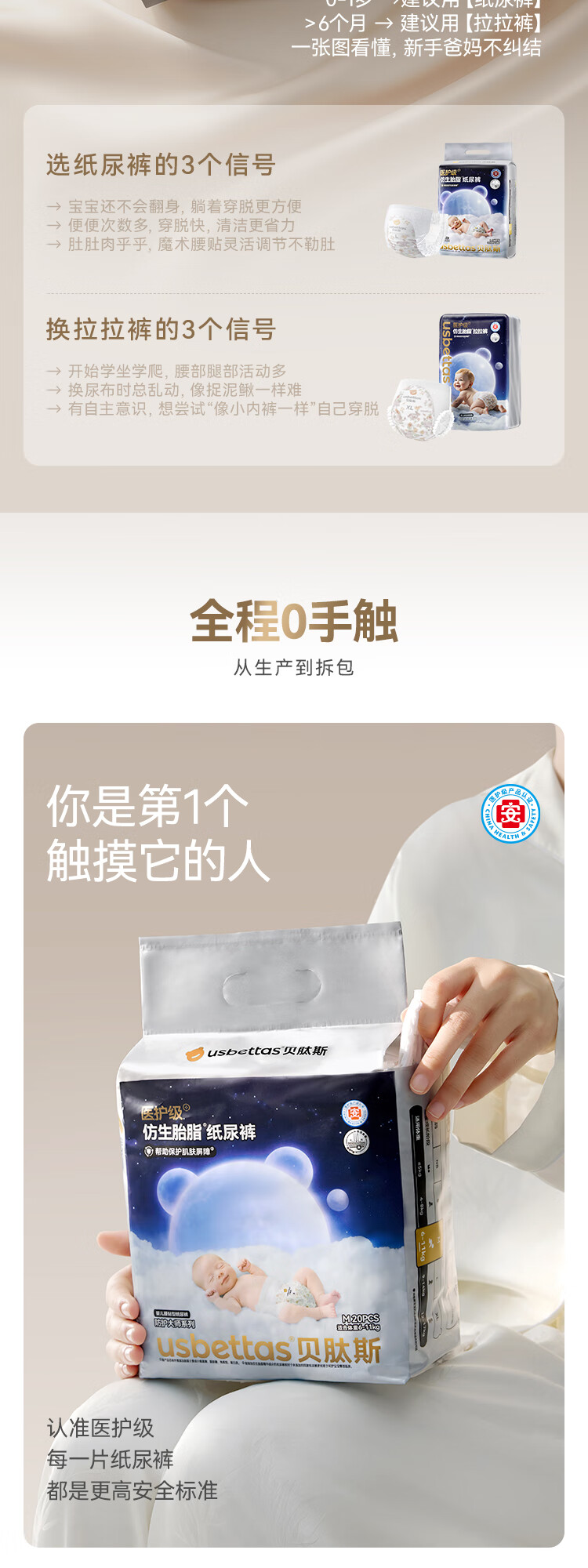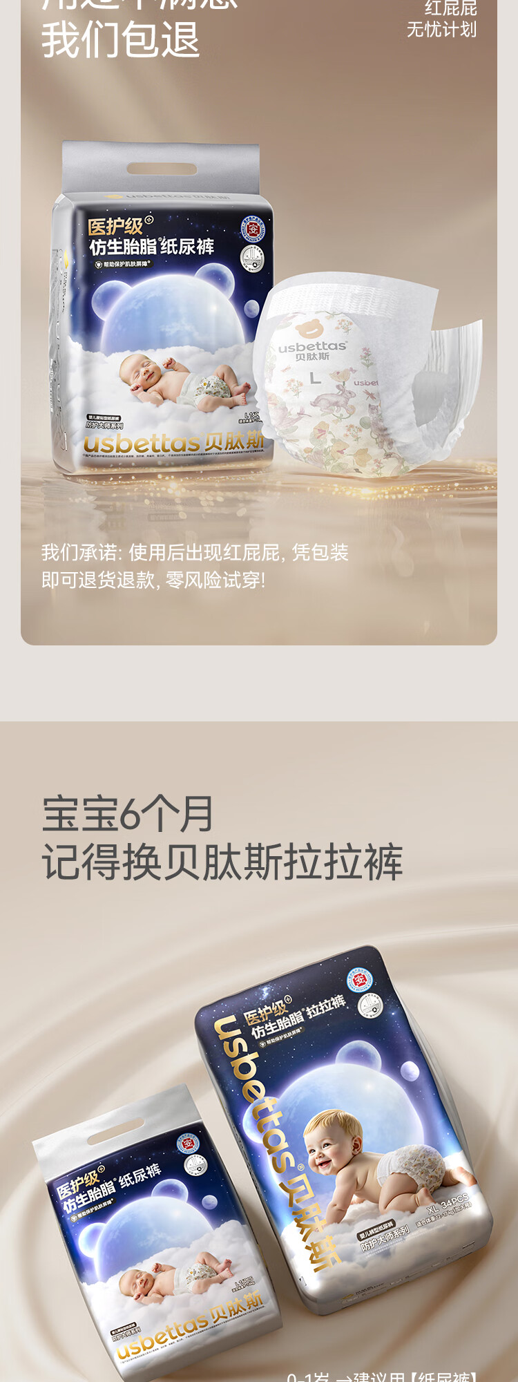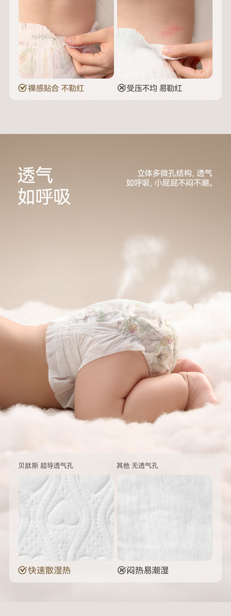 贝肽斯仿生胎脂皮纸尿裤试用装男女宝宝尿不湿纸尿裤M码透气大吸量
