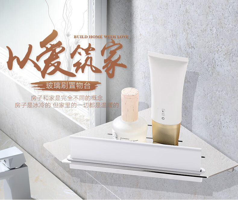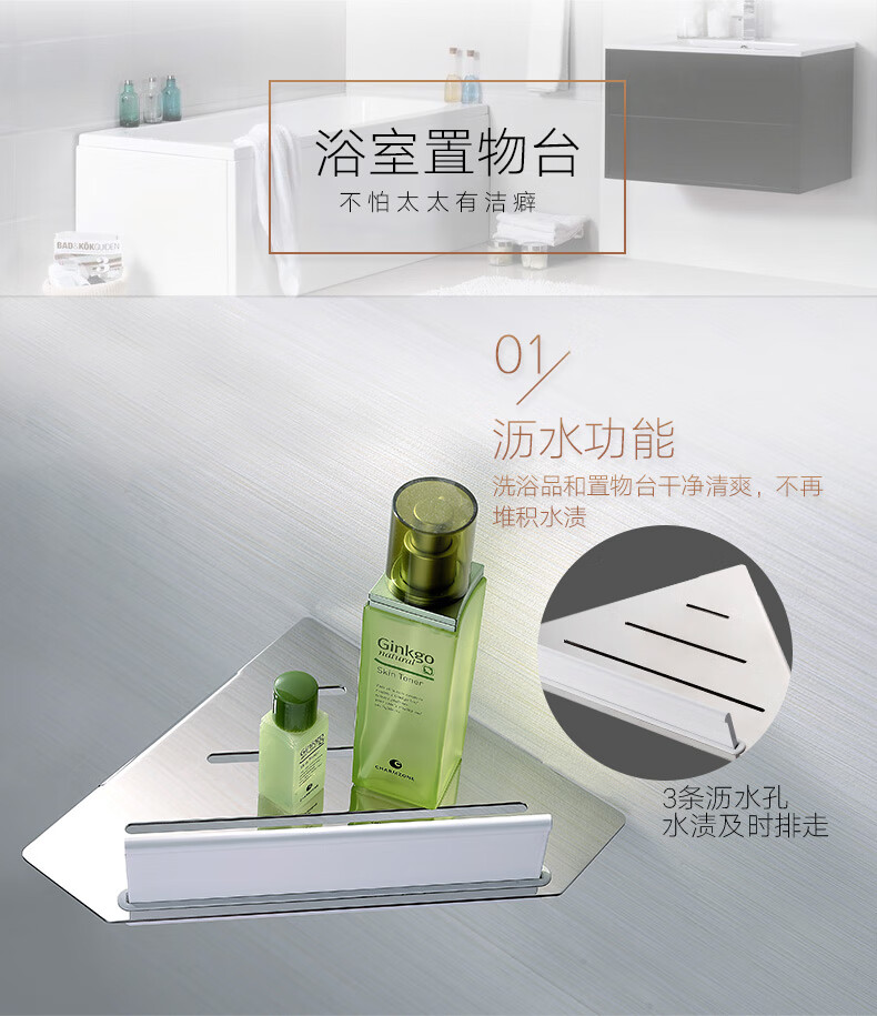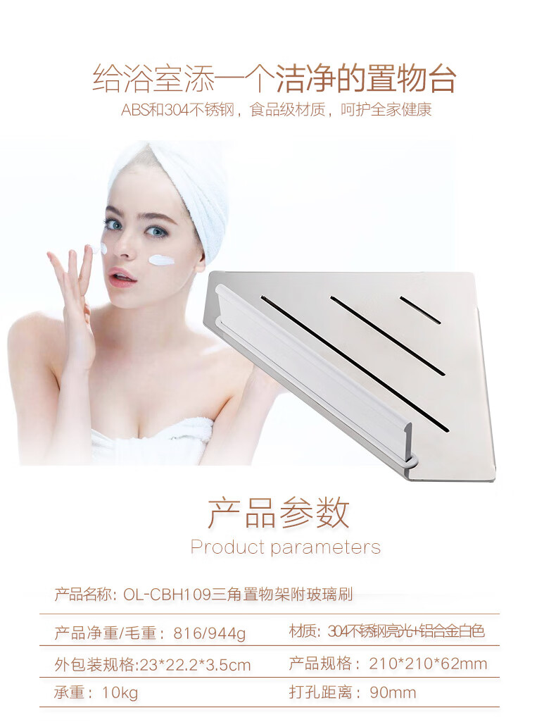 欧琳卫生间置物架浴室三角置物架附玻璃刷厨房挂件卫浴挂件套装CBH109