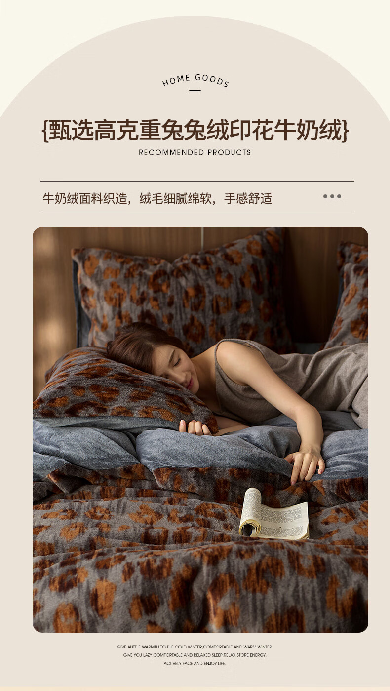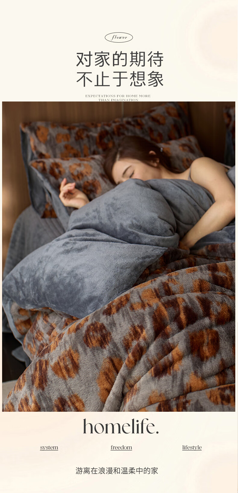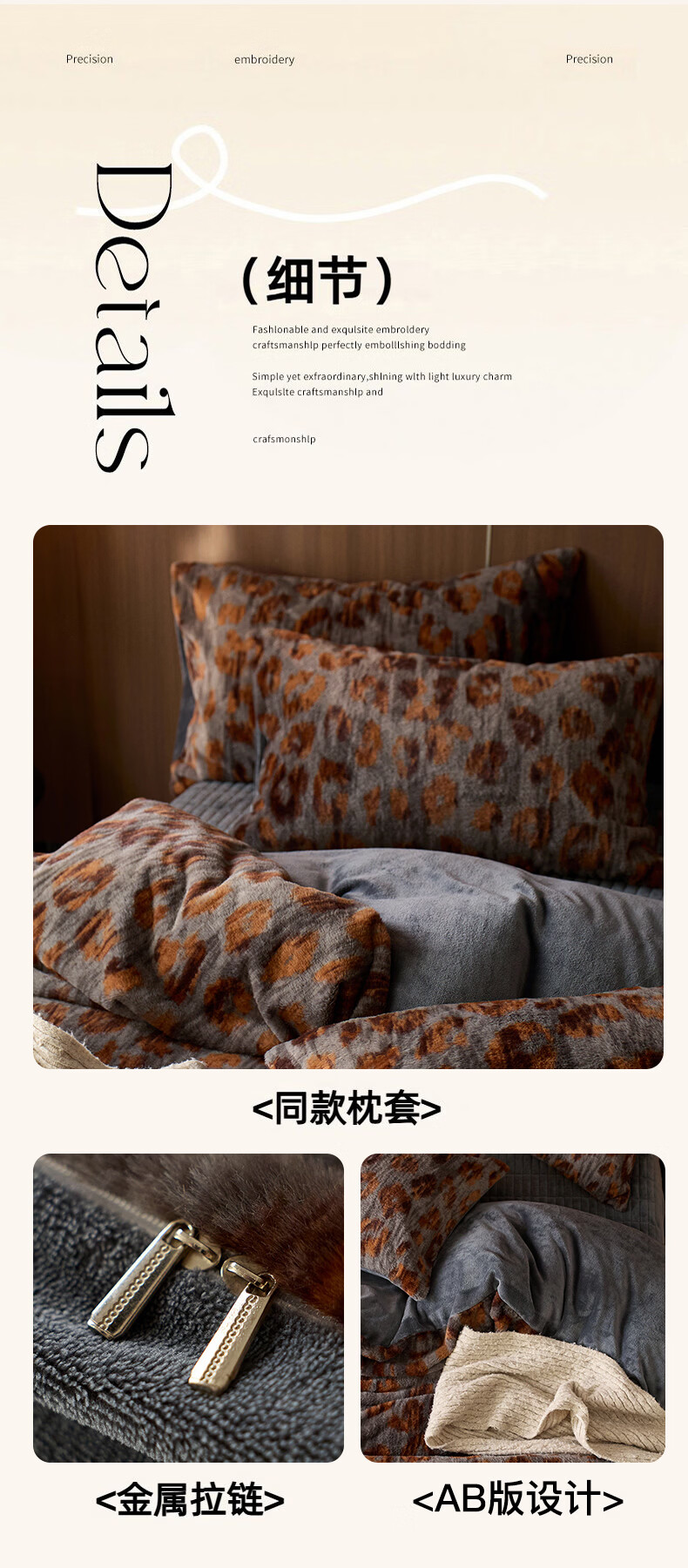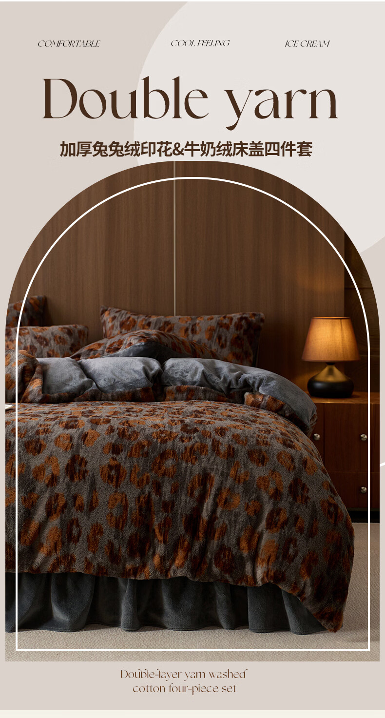 VJE美拉德加厚兔兔绒四件套冬季牛奶绒公主风床单床盖款四件套床品 床盖款-斑马冬日咖 四件套1.5m 床盖款 (被套200*230cm)