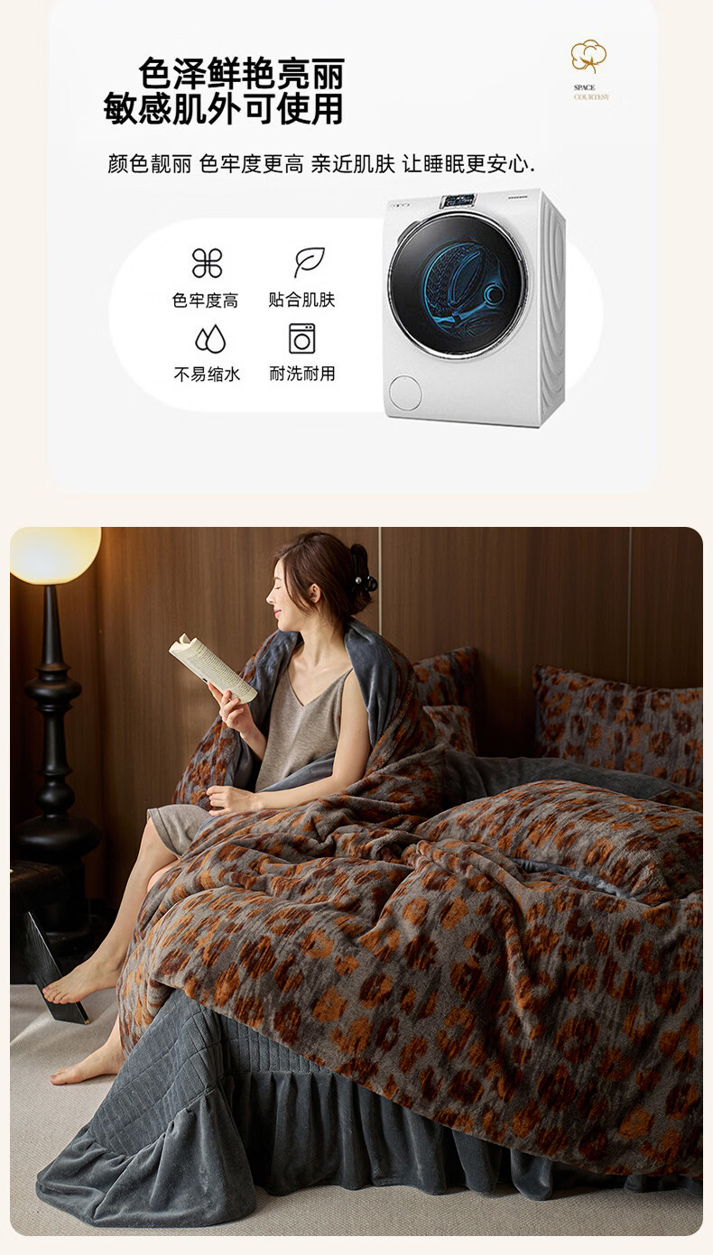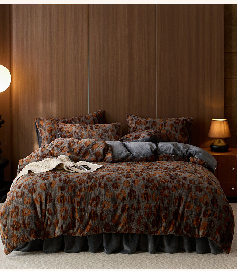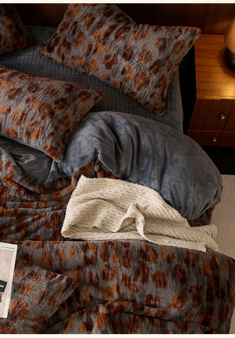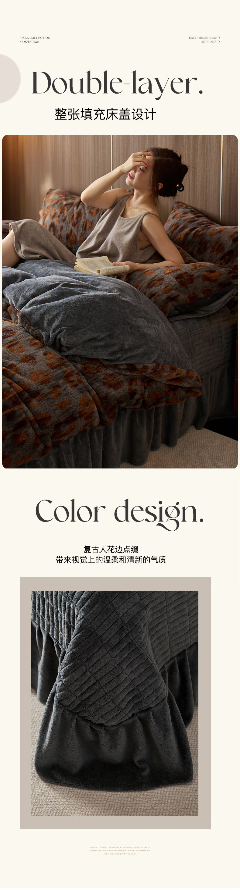 VJE美拉德加厚兔兔绒四件套冬季牛奶绒公主风床单床盖款四件套床品 床盖款-斑马冬日咖 四件套1.5m 床盖款 (被套200*230cm)
