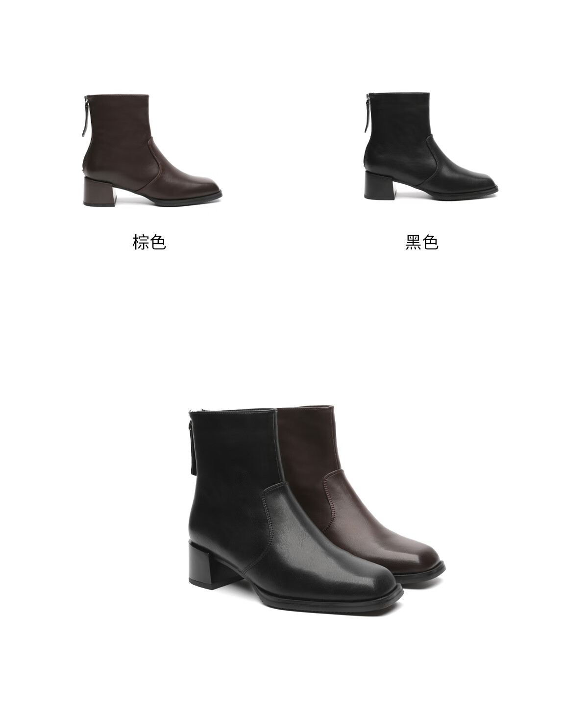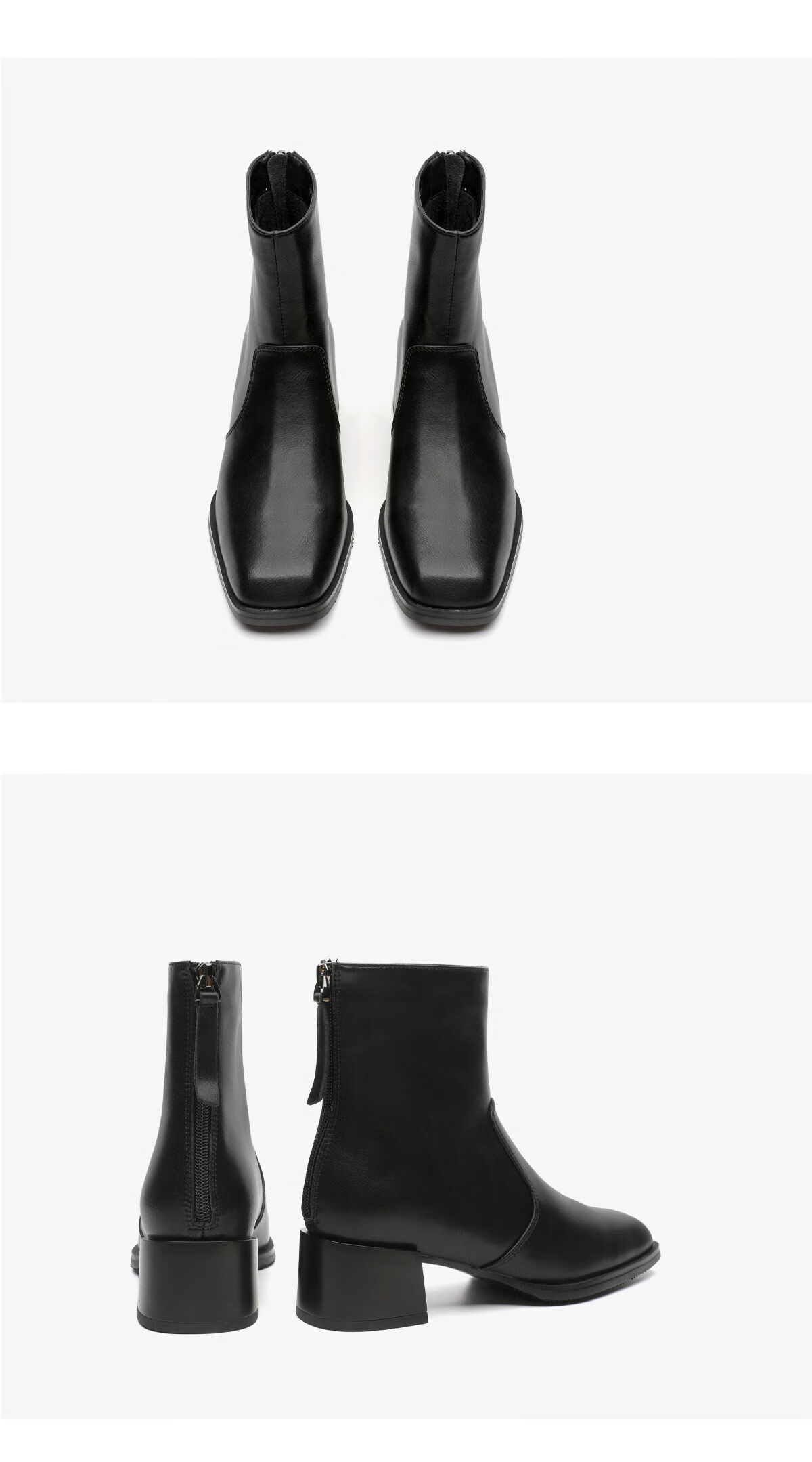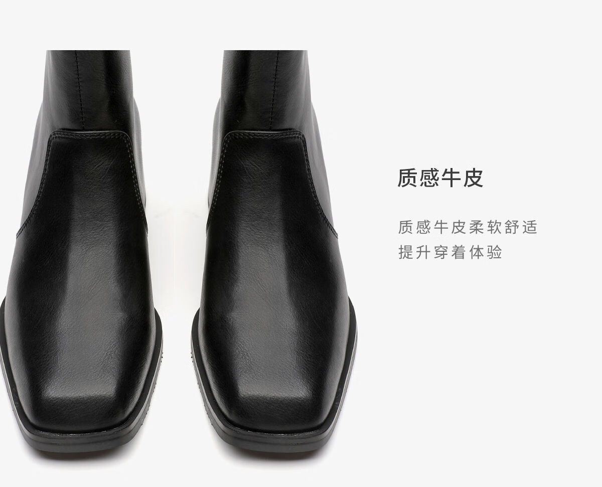 月芽儿2025秋冬新款时装靴女方头后拉链短靴百搭增高瘦瘦靴子 绒里黑色01T 34