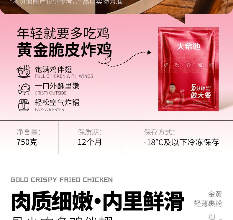 大希地脆皮炸鸡750g 生鲜空气炸锅食材 油炸小食韩式炸鸡翅春节也送货
