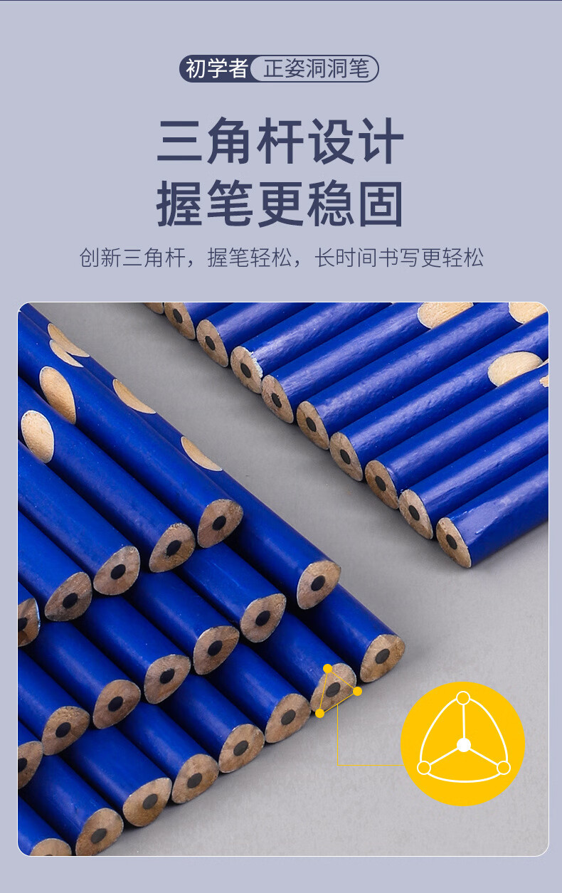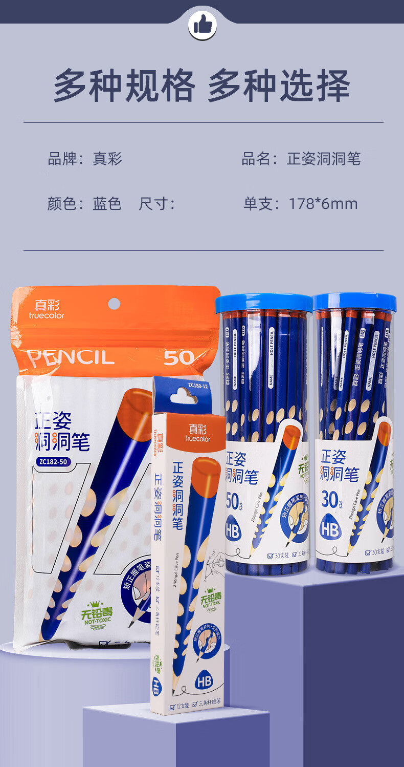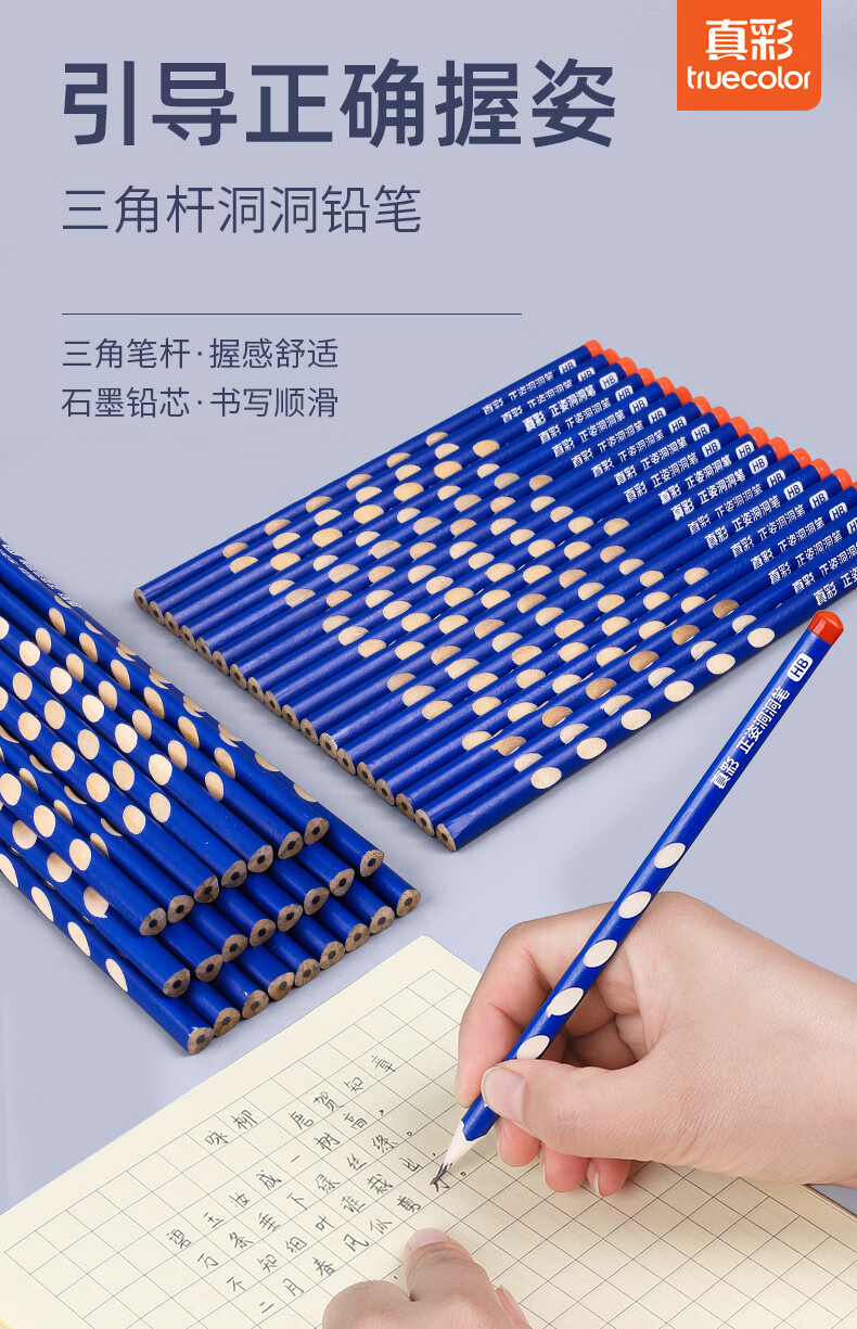 真彩洞洞铅笔小学生专用一年级hb幼儿园初学者用2b铅笔考试专用二三年级学生铅笔加粗洞洞笔练字矫正 50支袋装洞洞铅笔 HB