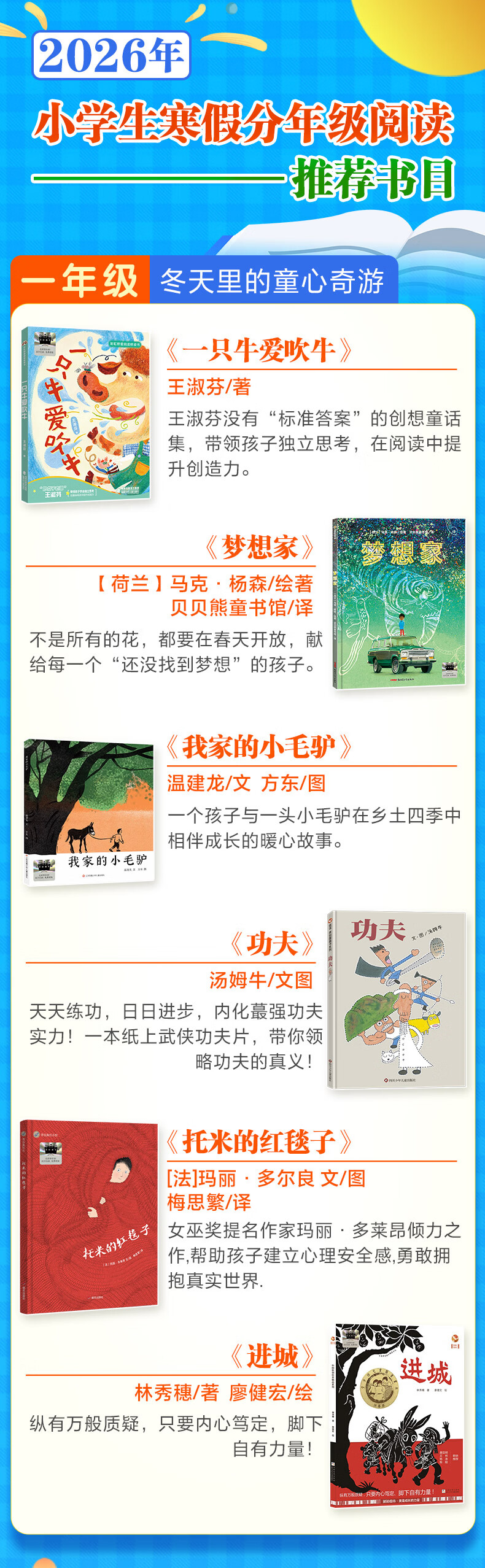【书目任选】2026年祖庆说百班千人一年级 幼儿园升一 全国小学生寒暑假阅读课外书 百班千人书目 一只牛爱吹牛梦想家我家的小毛驴功夫托米的红毯子进城 【26年寒假】一只牛爱吹牛