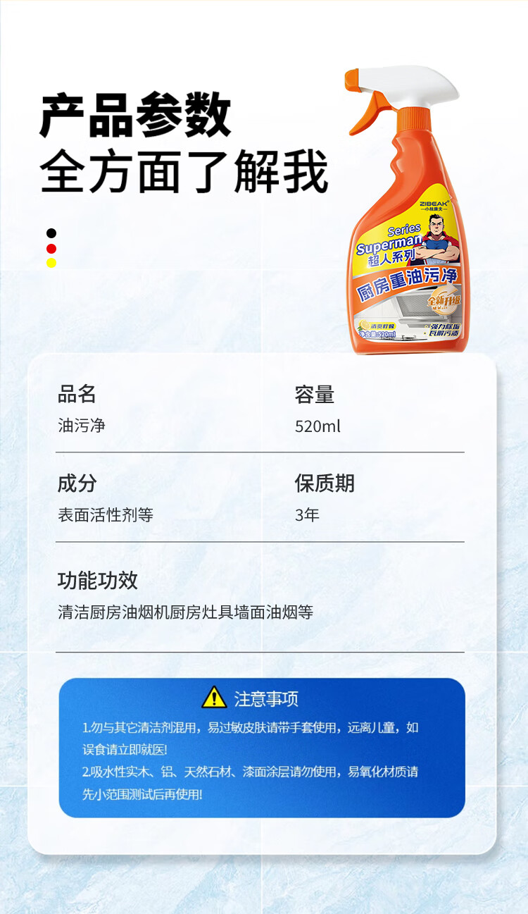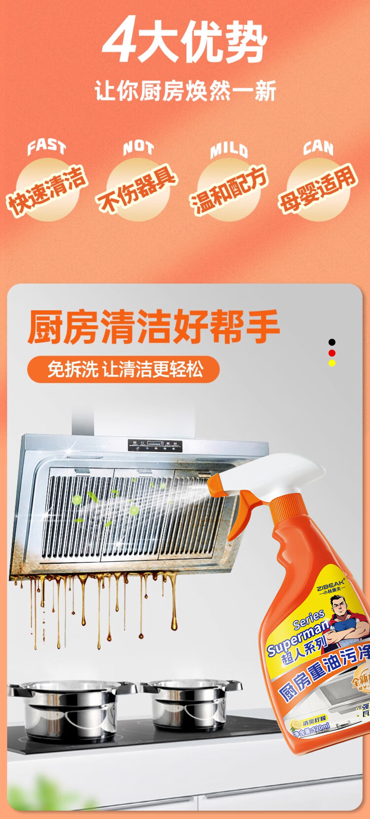ZiBeak油污净厨房重油污清洁剂厨房去抽油烟机专用强力溶解灶台清洗剂净
