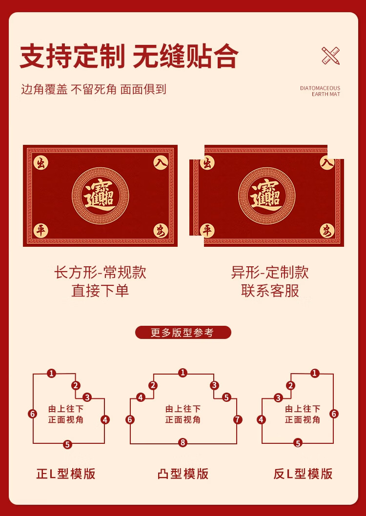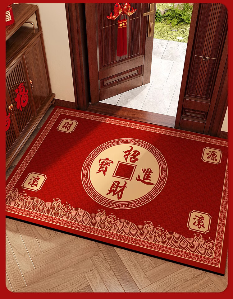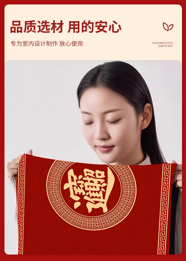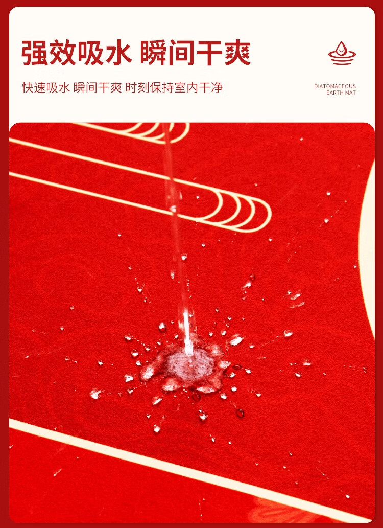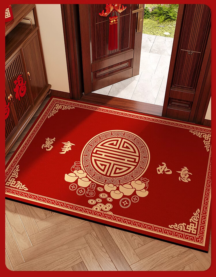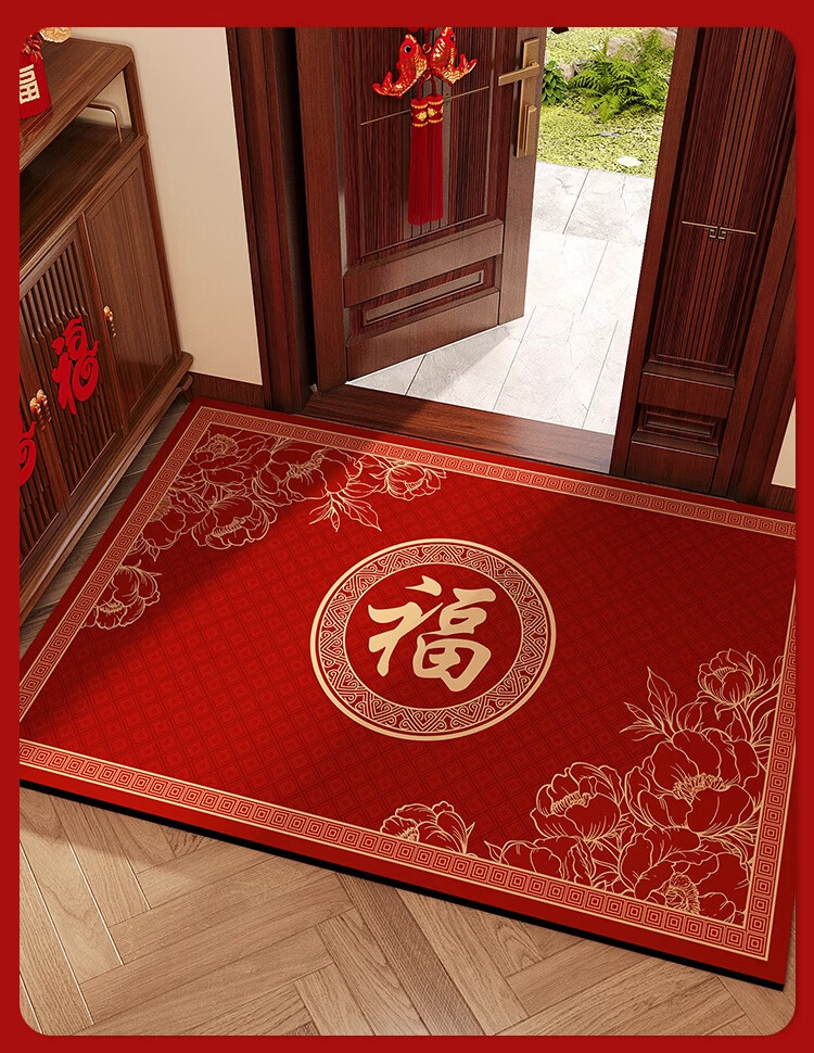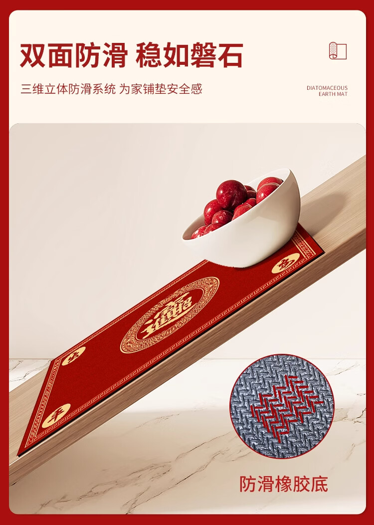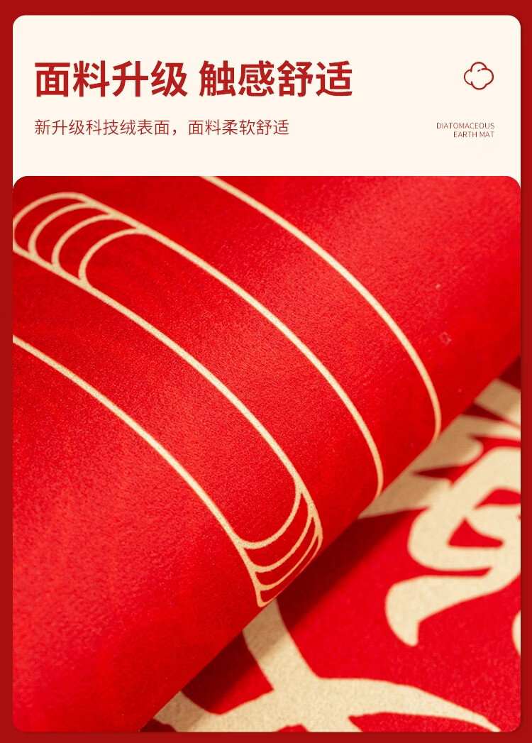 KAYE喜庆红色入户门地垫硅藻泥家用门垫卫浴玄关进门脚垫吸水防滑垫子 GZN-Y倾颜-福寿安康 40X60cm