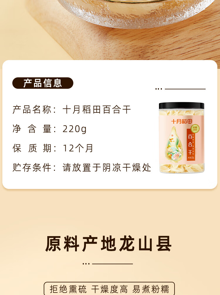 十月稻田 百合干 220g/罐 龙山产苦百合 银耳莲子桂圆枸杞羹煲汤食材