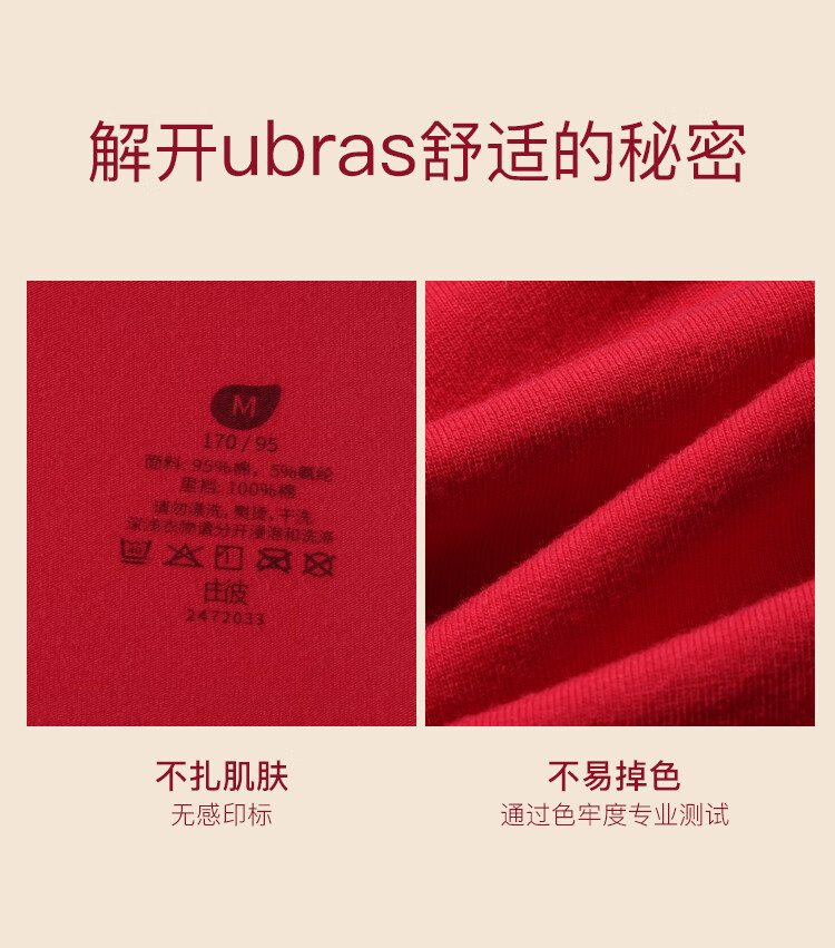 ubras26迎新本命年红内裤40S纯棉15A抗菌裆男士内裤结婚礼盒情侣 XL